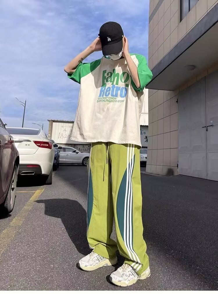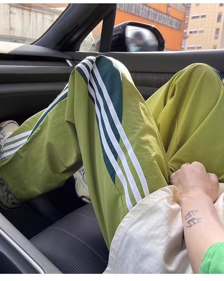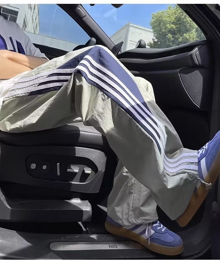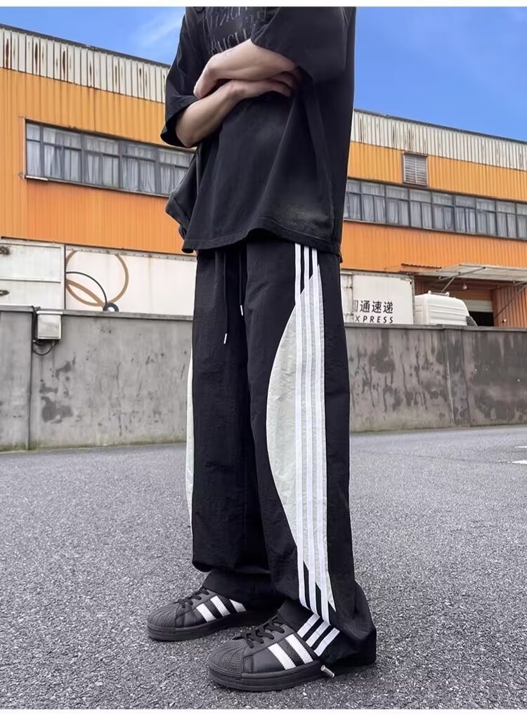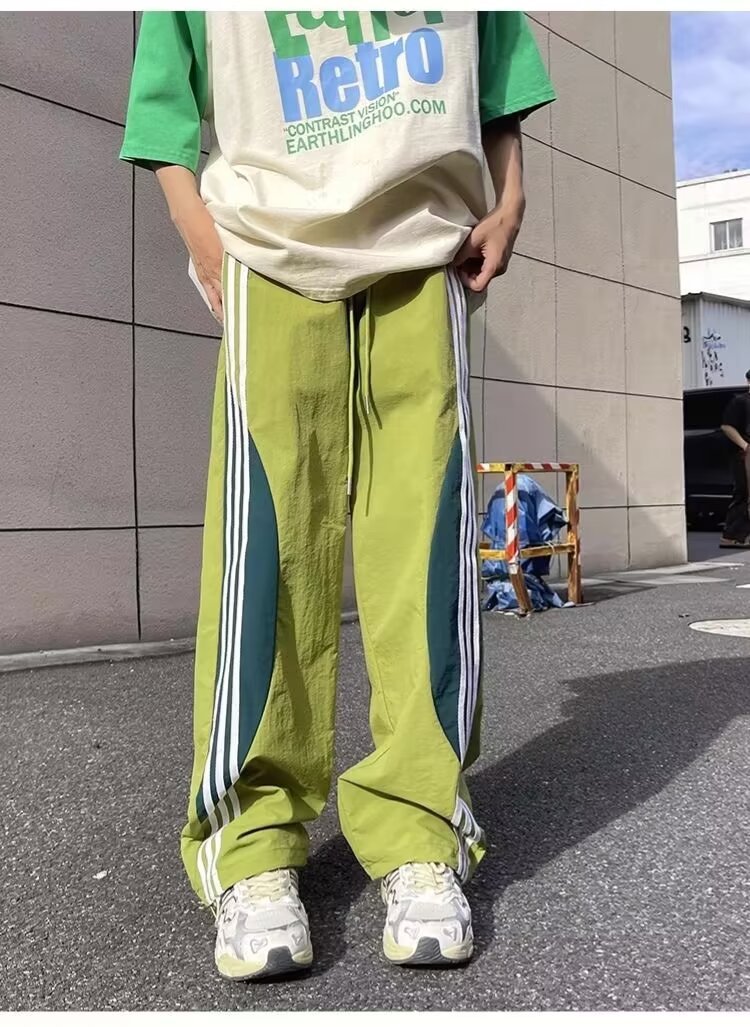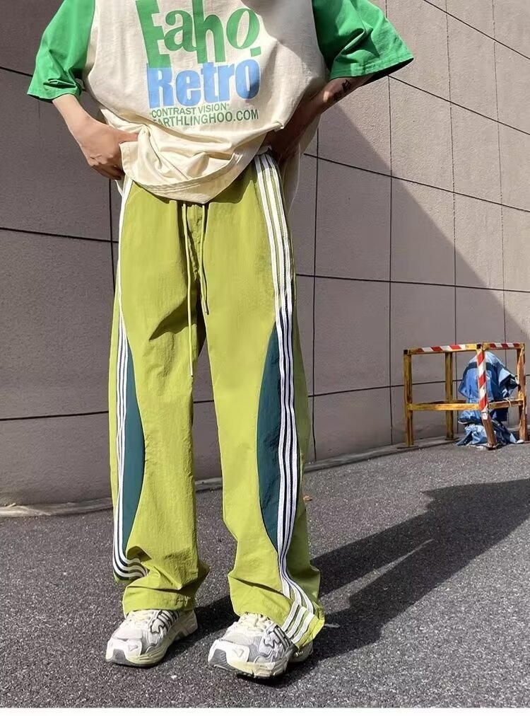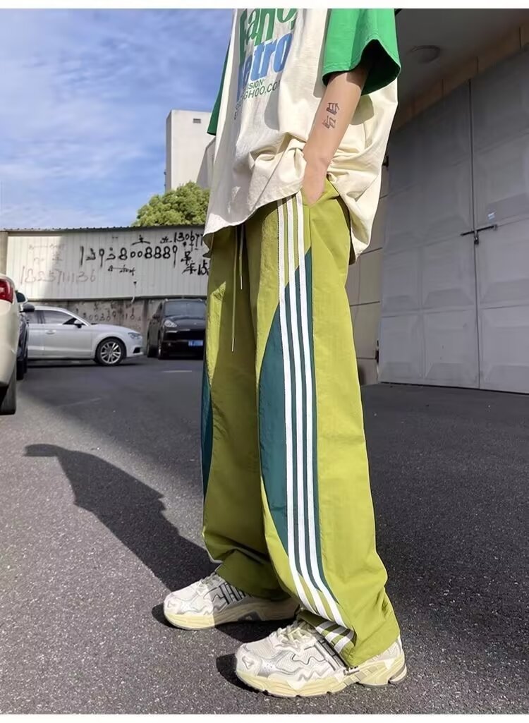 아메리칸 도파민 스트라이프 캐주얼 팬츠 남성 트렌디 3스트라이프 루즈 스트레이트 하이 스트리트 핸섬 스포츠 낙하산 바지