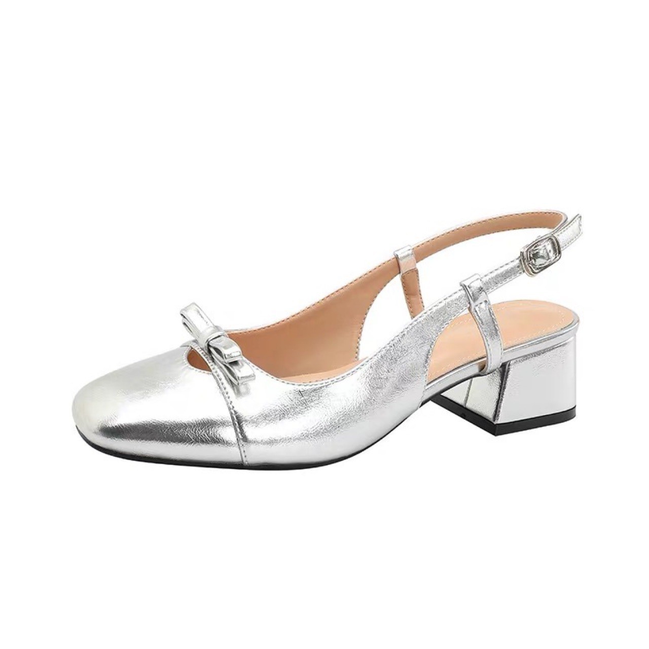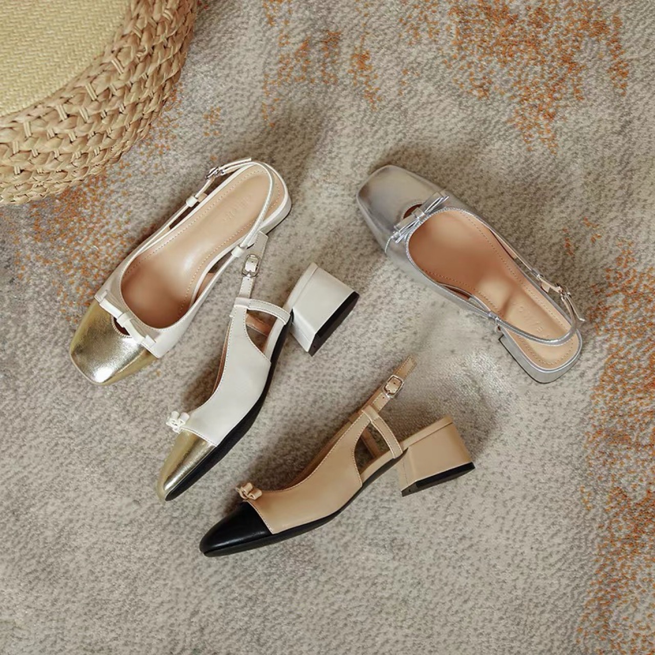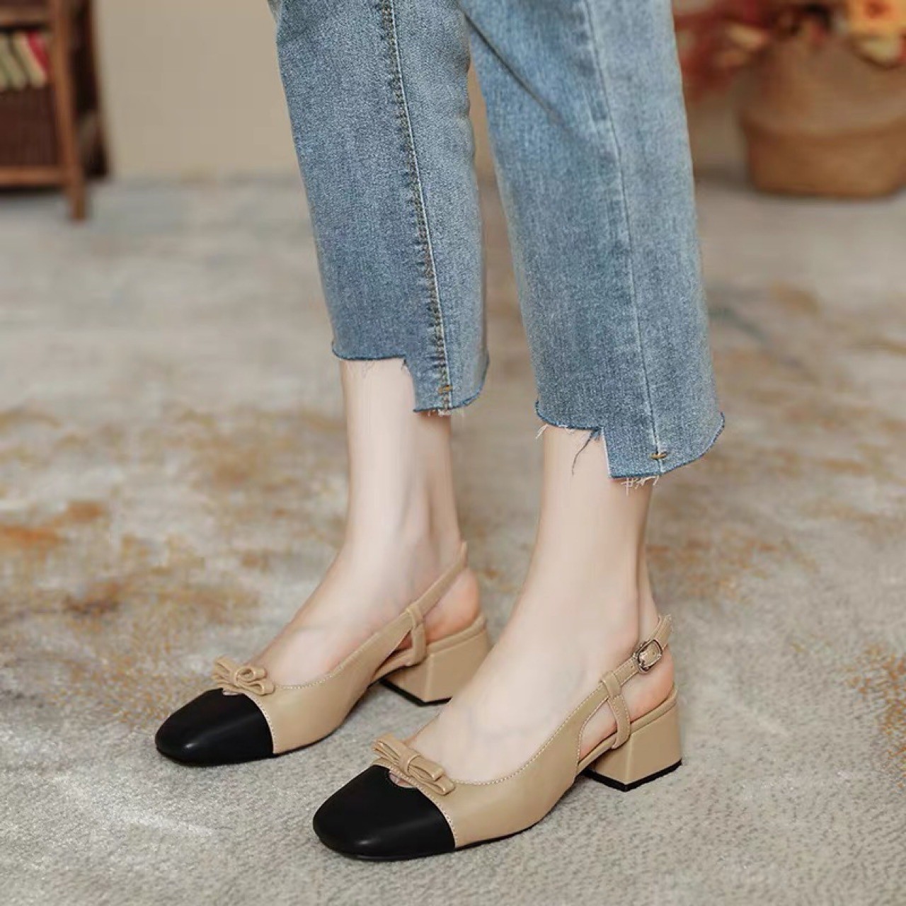 여름 신작 여성용 양가죽 버전 작은 향기로운 스타일 스퀘어 토 보우 원 스트랩 컬러 블록 두꺼운 힐 메리 제인 토 샌들
