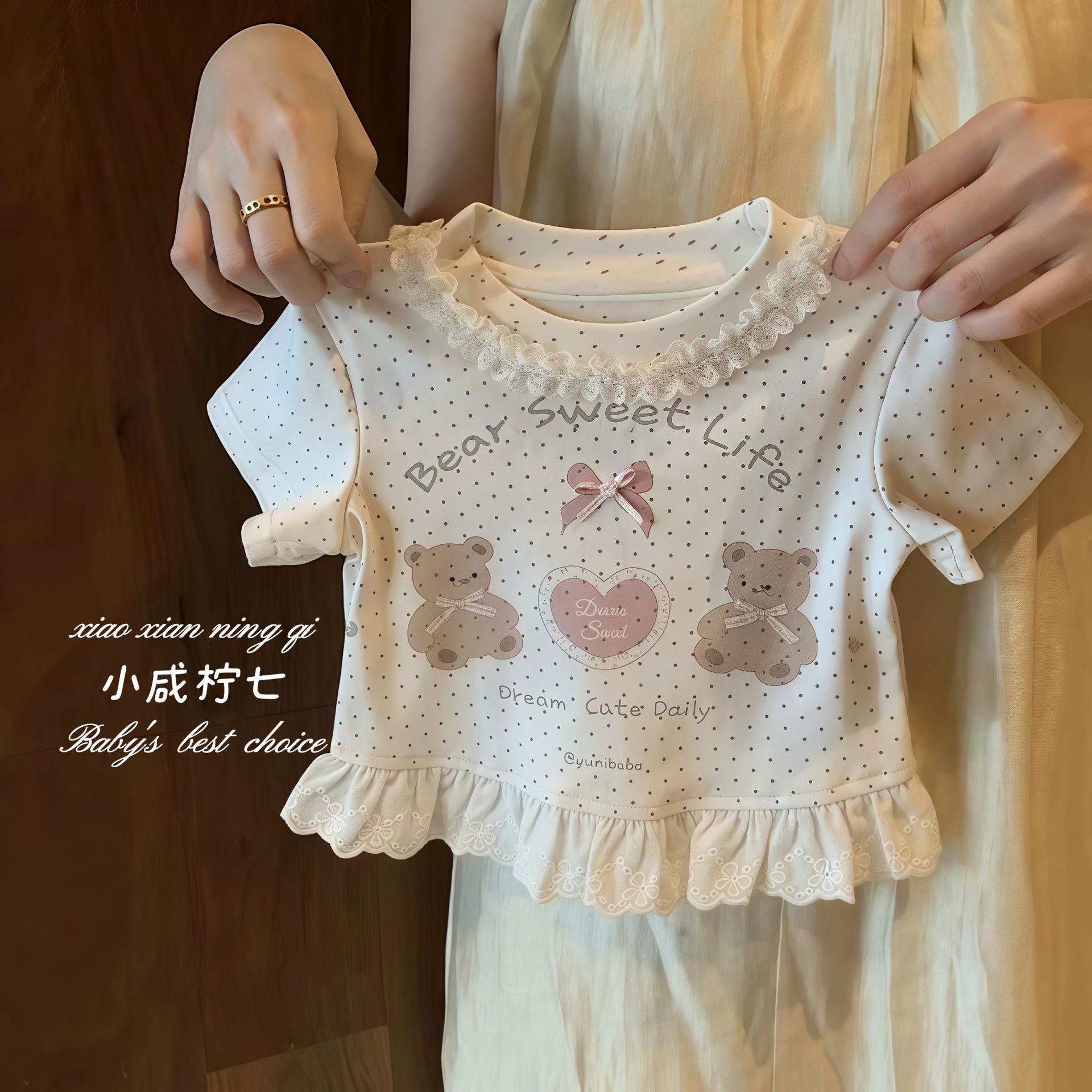 [Little Salty Lemon Seven] 여아 스위트 슈트 유치원 여름 여아 패션 반팔 탑 모기 방지 바지 트렌디