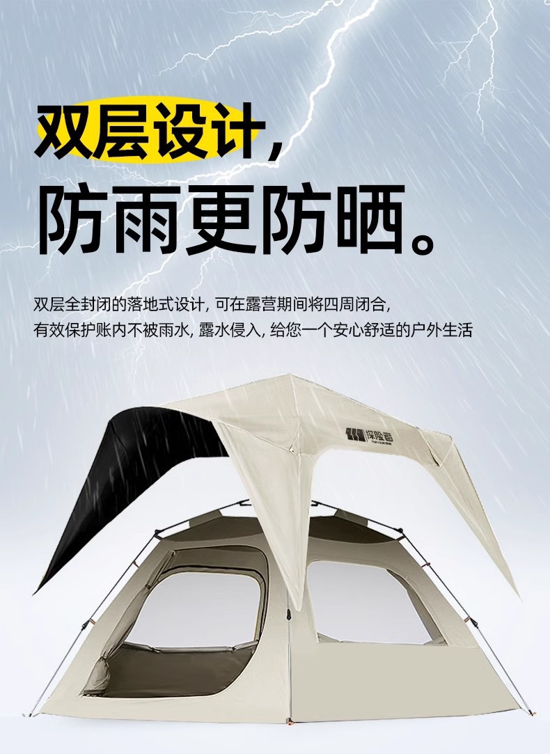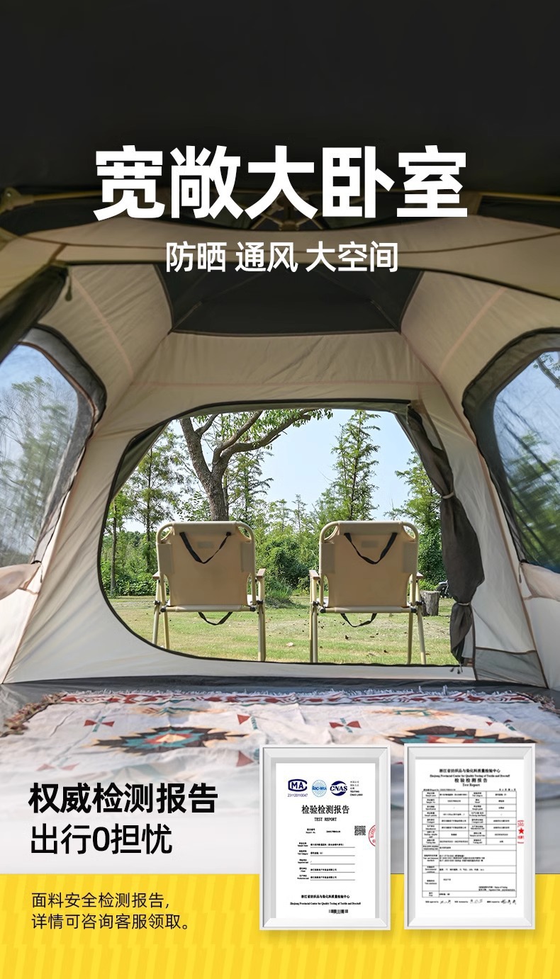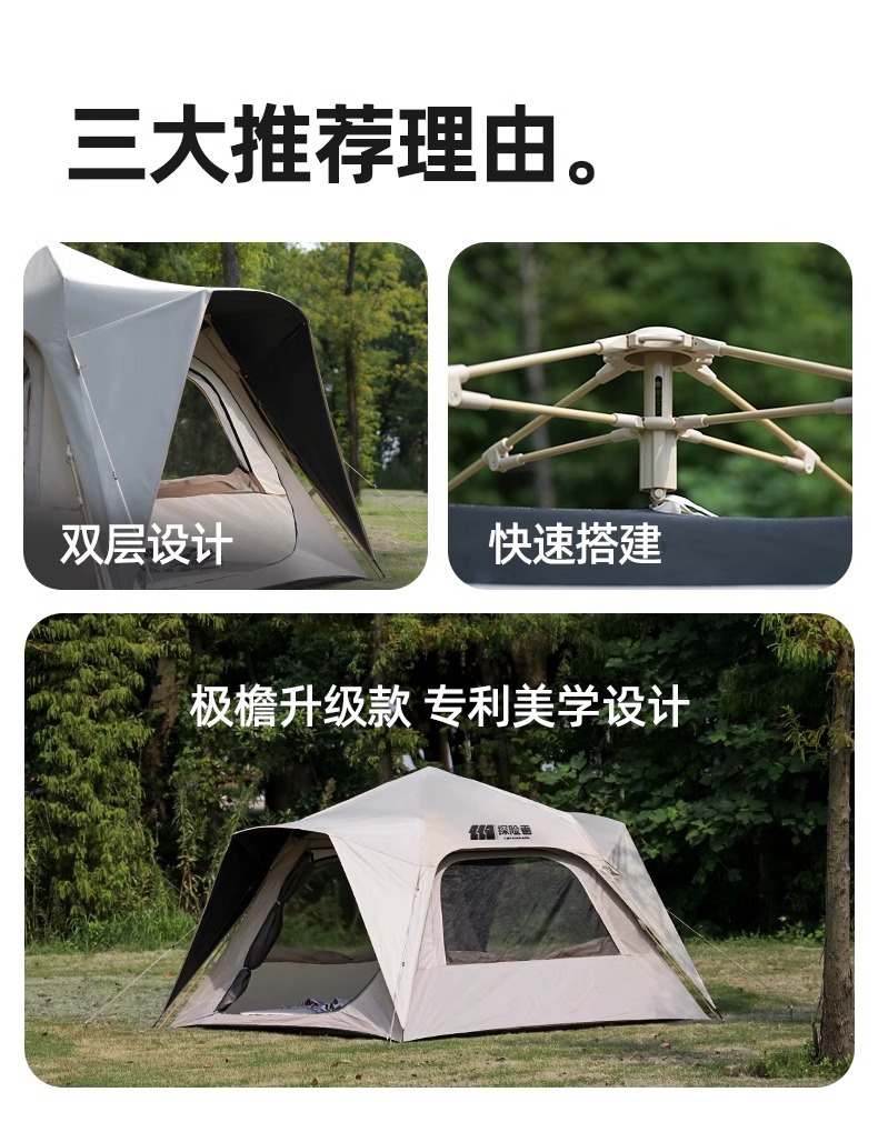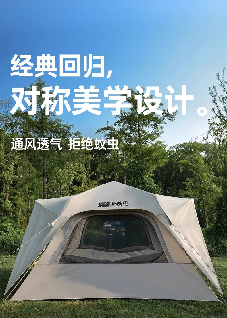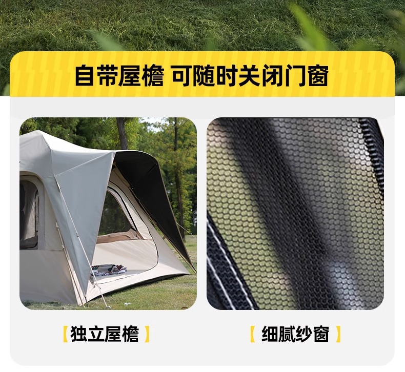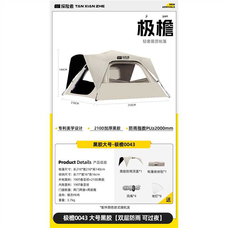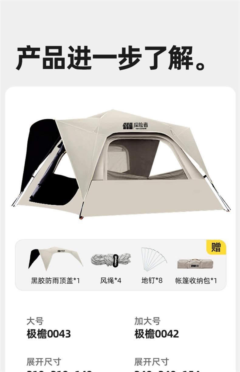 탐험가 텐트 야외 캠핑 밤새 폭우 방지 접이식 자동 비닐 캠핑 장비 2024 새로운 스타일 매우 넓은 챙스토어 가기