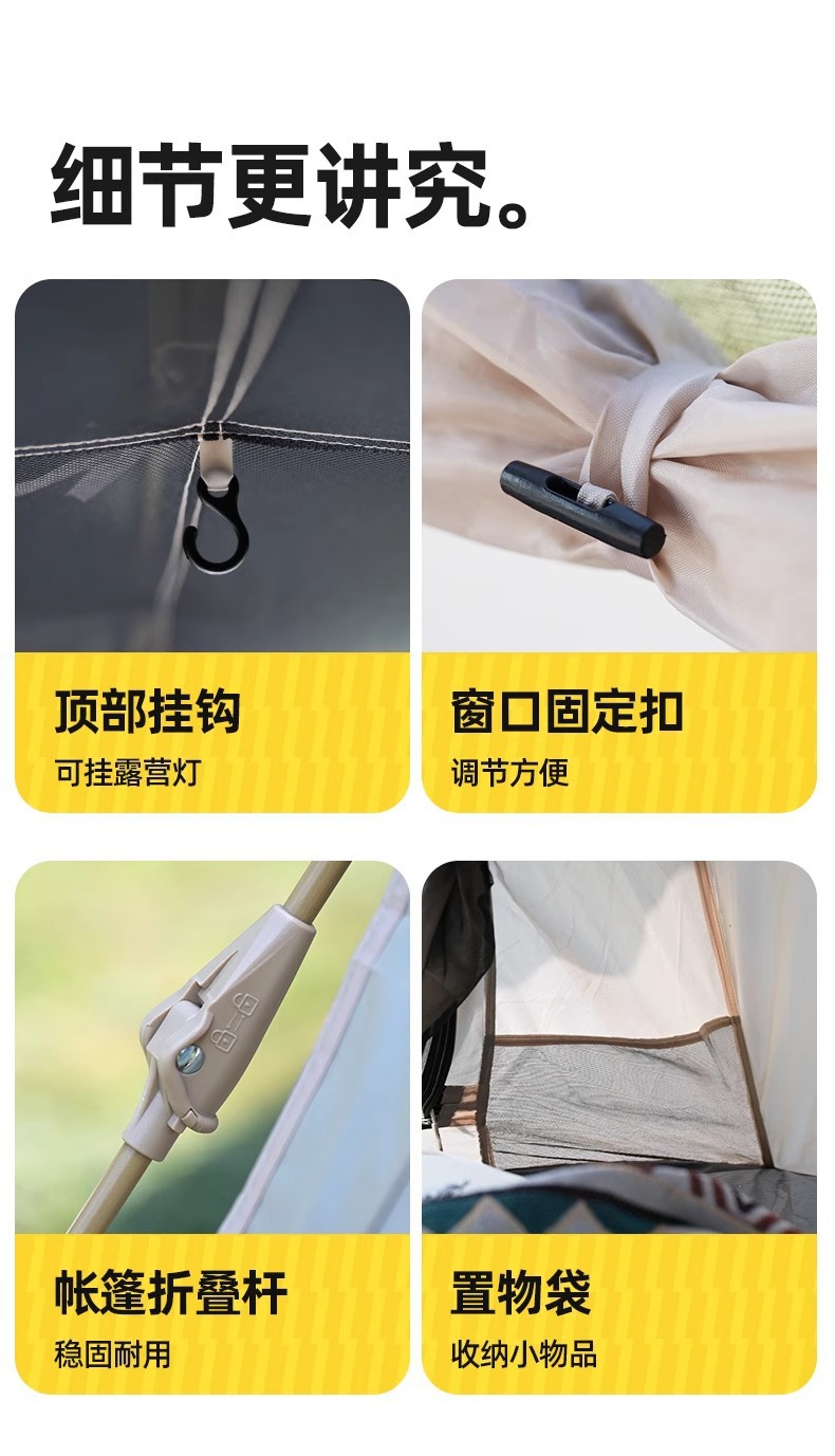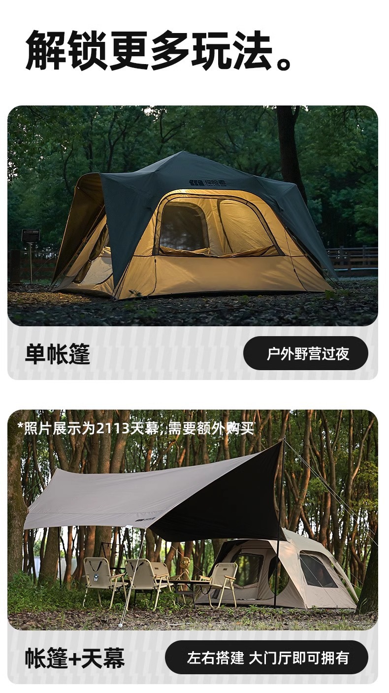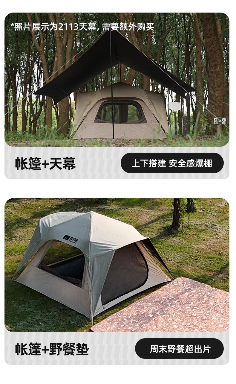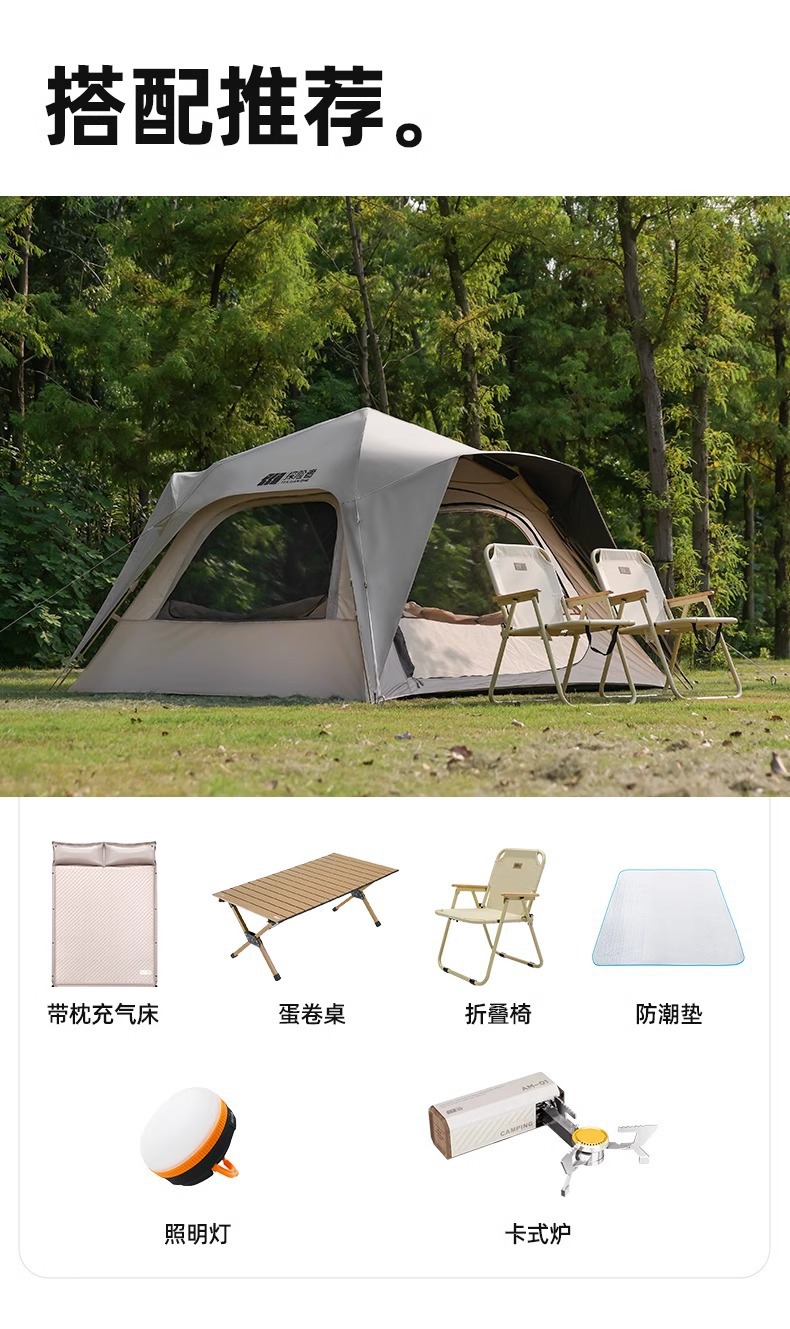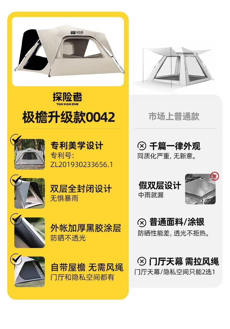 탐험가 텐트 야외 캠핑 밤새 폭우 방지 접이식 자동 비닐 캠핑 장비 2024 새로운 스타일 매우 넓은 챙스토어 가기