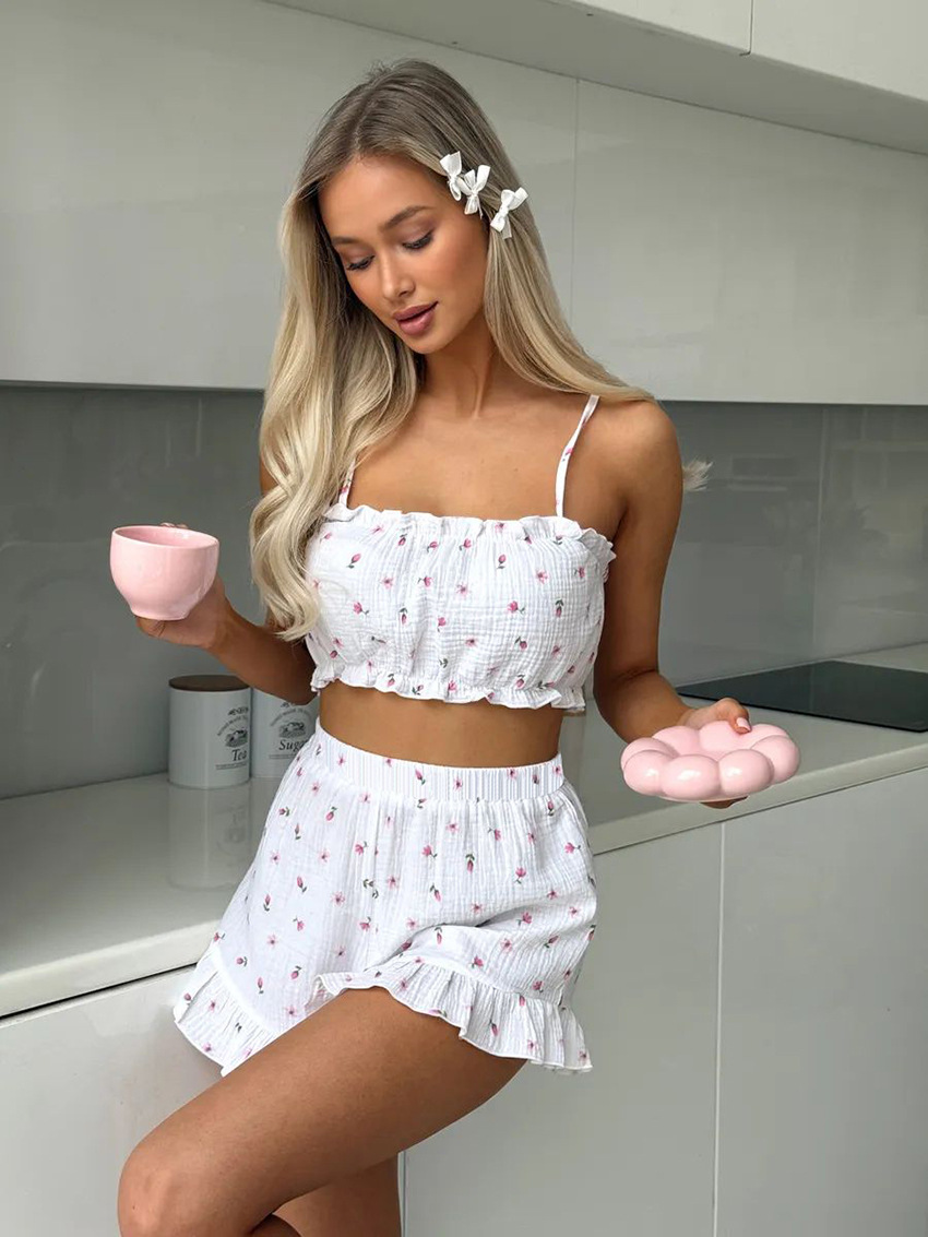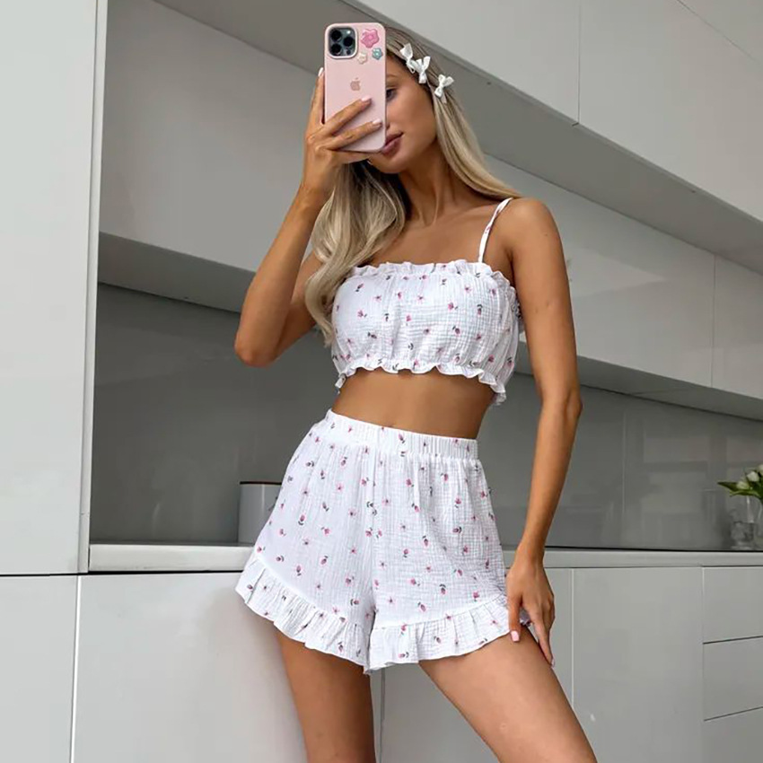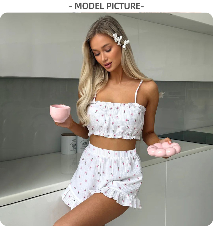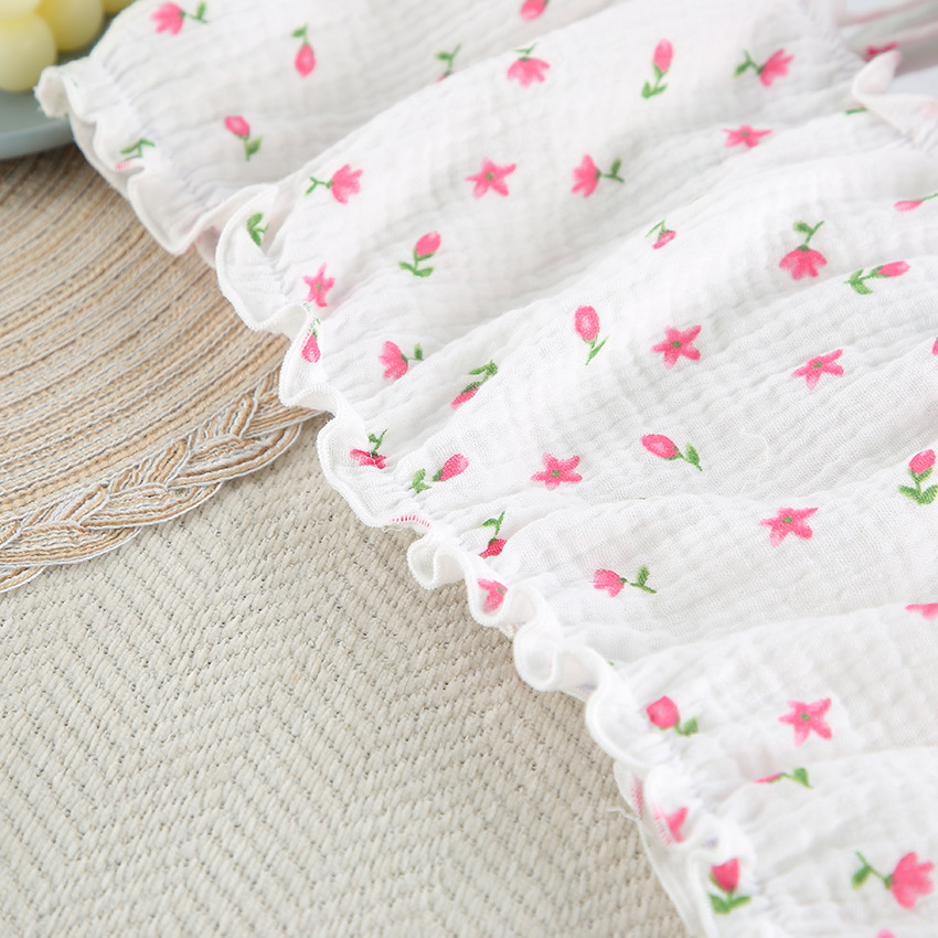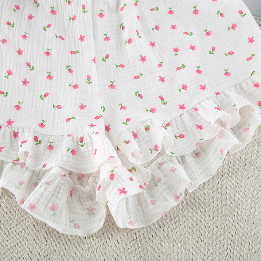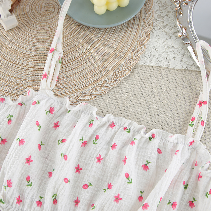 2026 러브 프린트 코튼 실크 통기성 편안한 면 슬립 잠옷 여성 여름 얇은 스타일 유럽 및 미국 여성 홈웨어