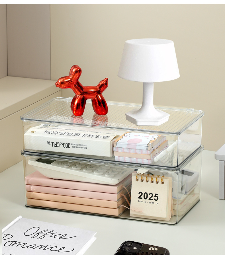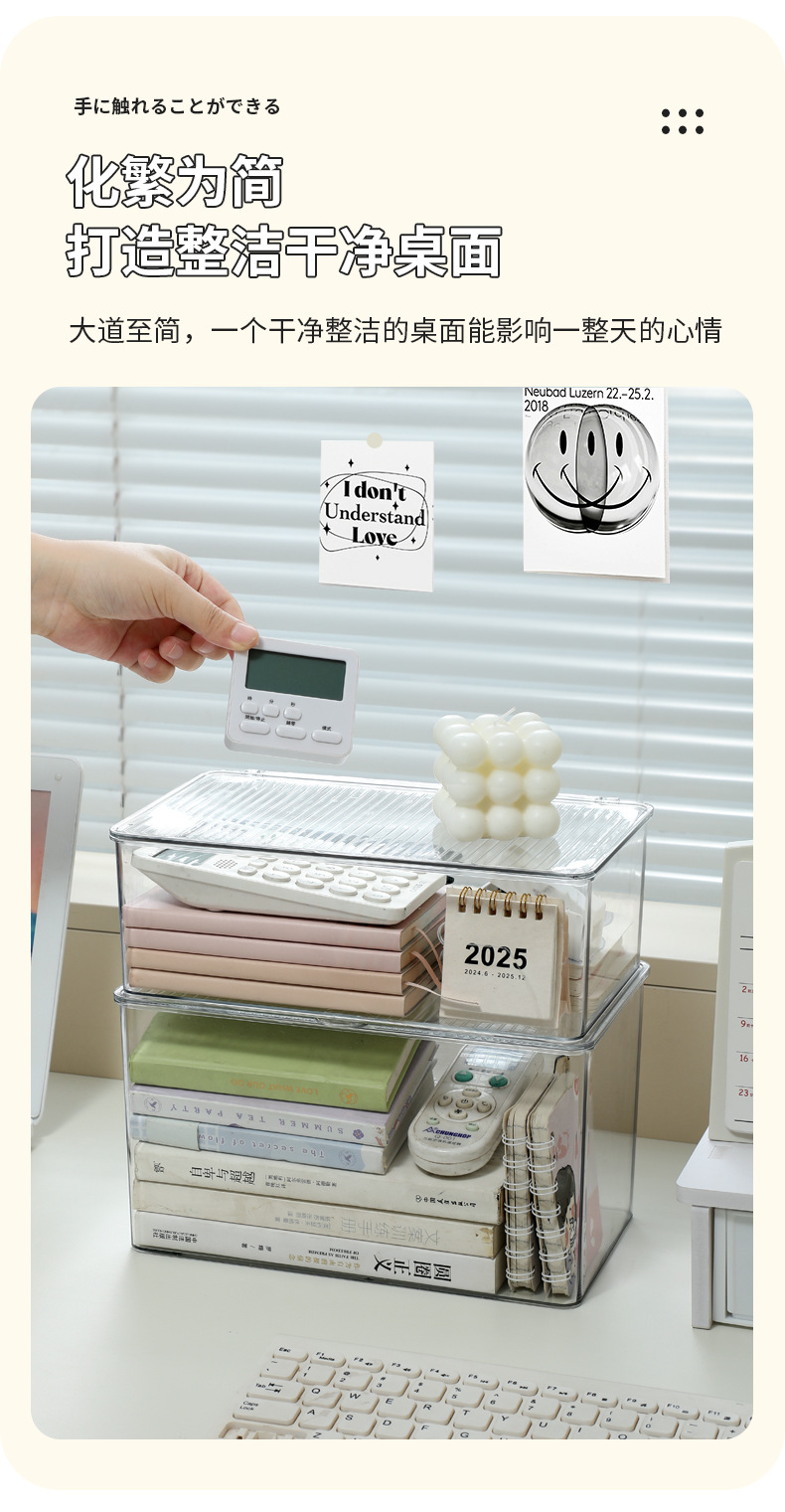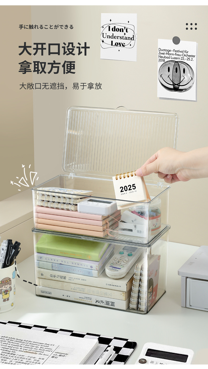 뚜껑이 있는 데스크탑 보관함, 아크릴 상자, 화장품 보관함, 사무실 책상, 방진 대용량 보관함