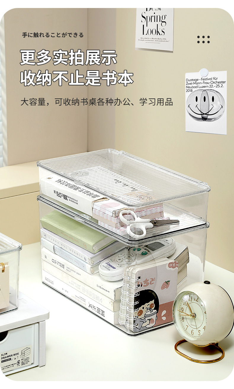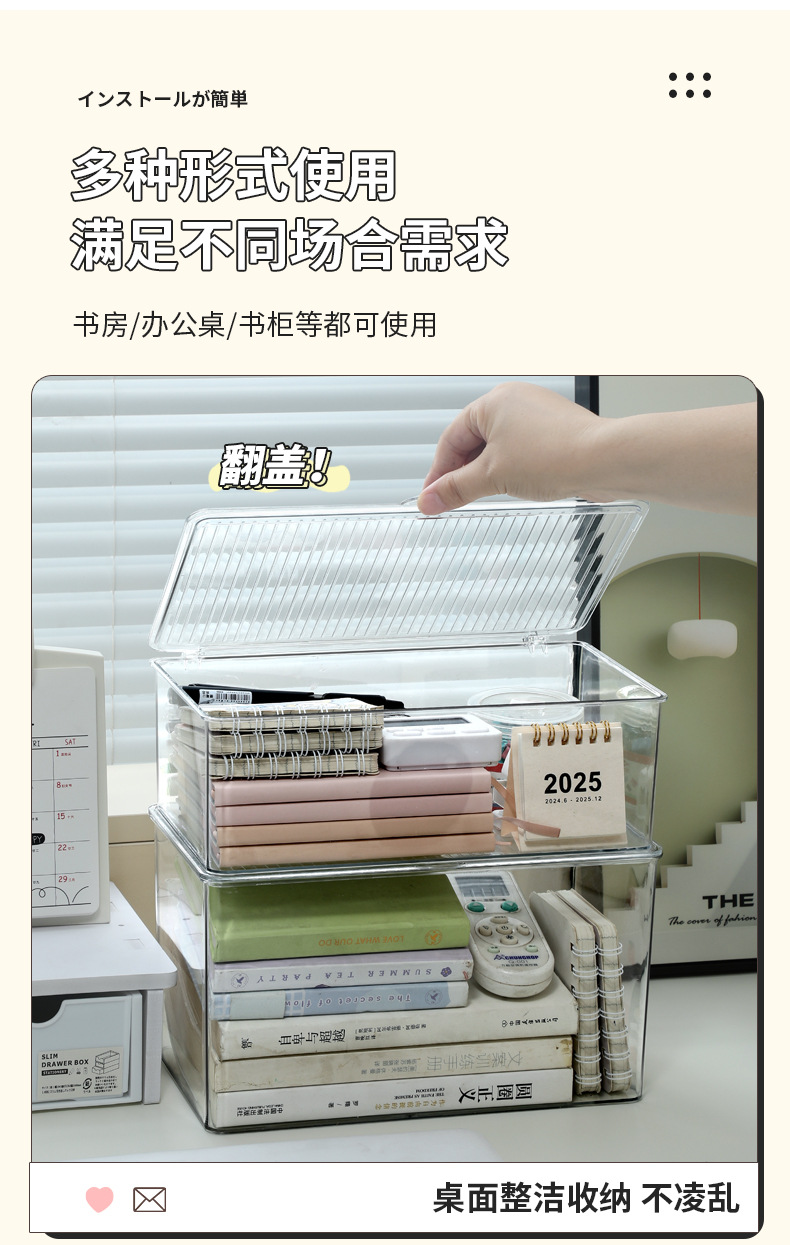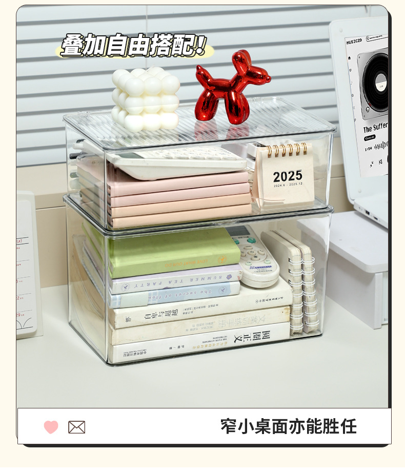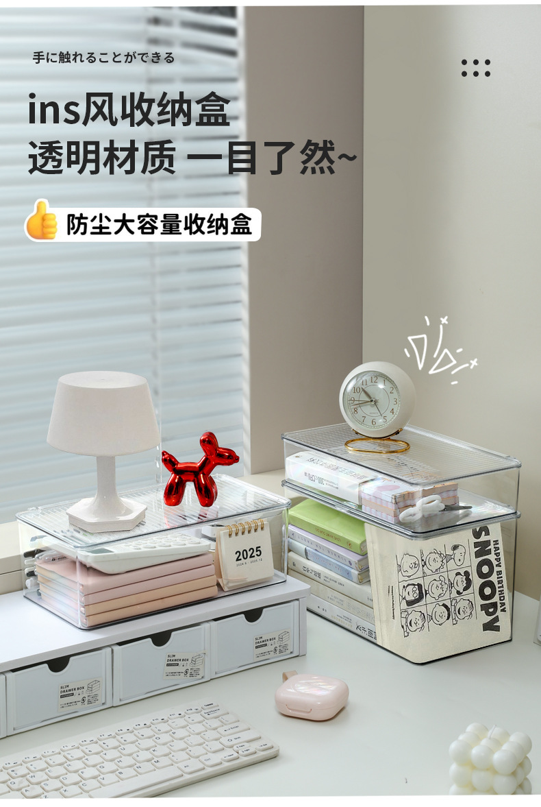 뚜껑이 있는 데스크탑 보관함, 아크릴 상자, 화장품 보관함, 사무실 책상, 방진 대용량 보관함