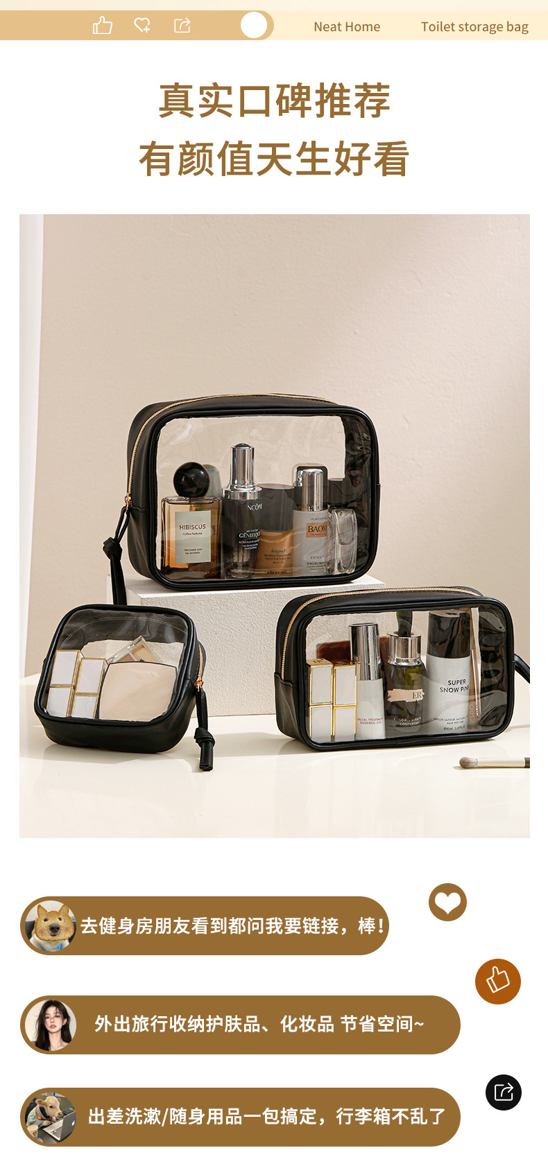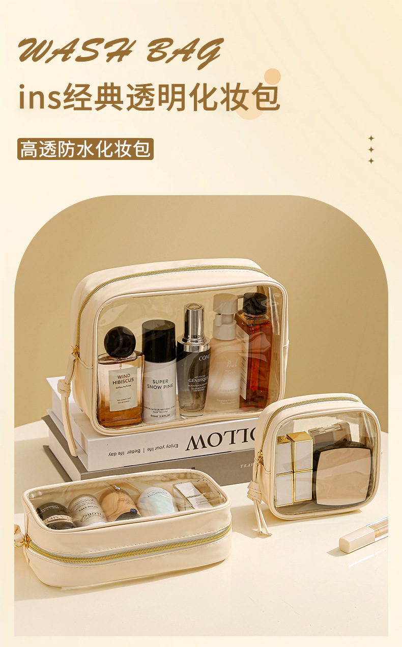새로운 여행 휴대용 투명 휴대용 메이크업 보관 가방 다목적 대용량 PVC 방수 세면 용품 가방