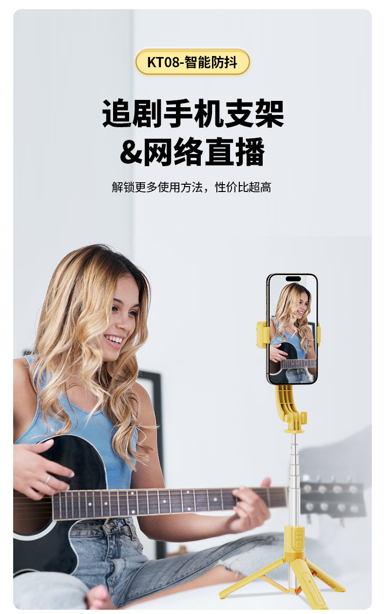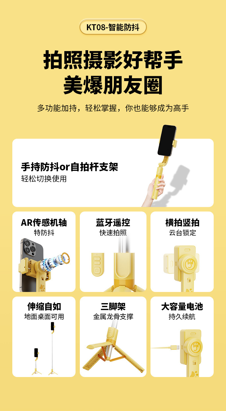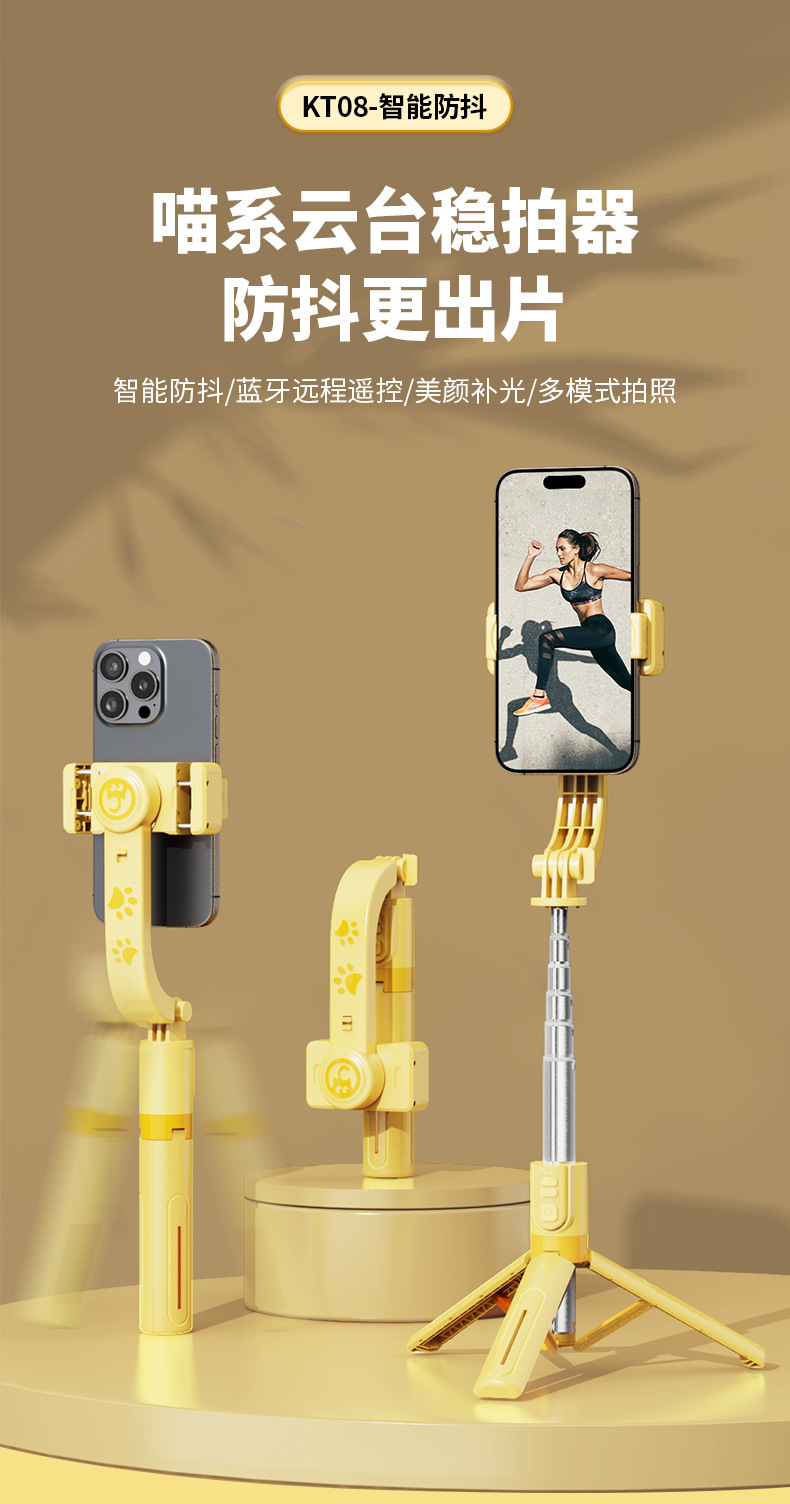 새로운 KT08 손떨림 방지 셀카봉 범용 휴대폰 단일 축 안정기 휴대폰 홀더 라이브 사진 촬영 VLOG 안정적인 촬영스토어 가기
