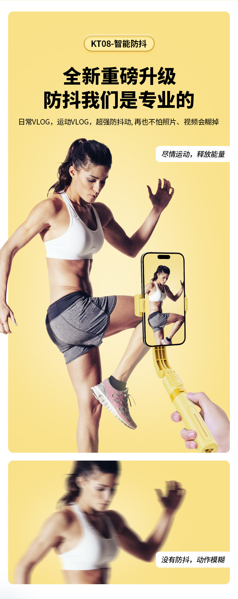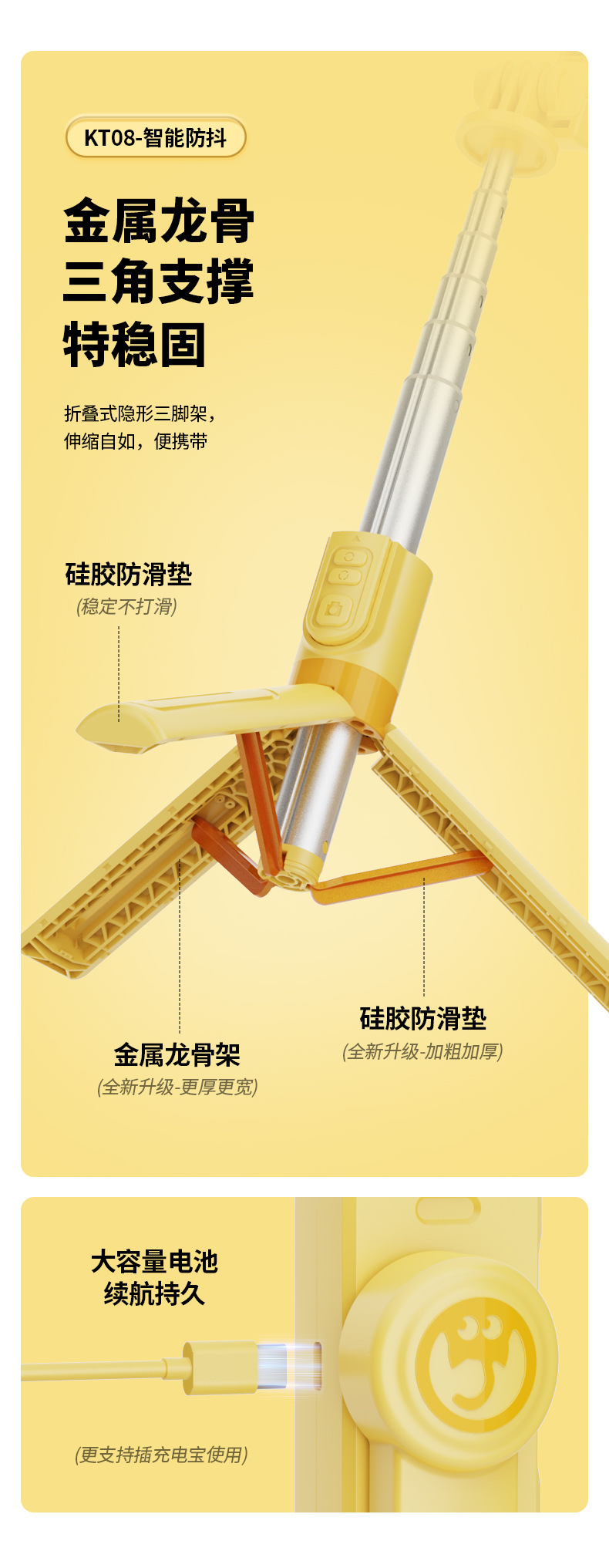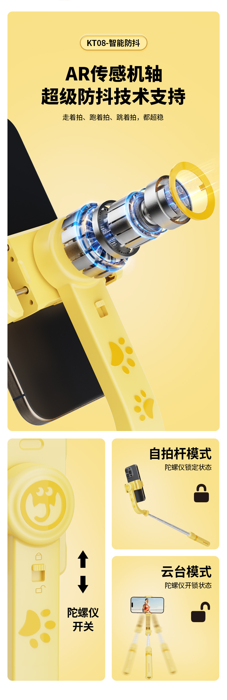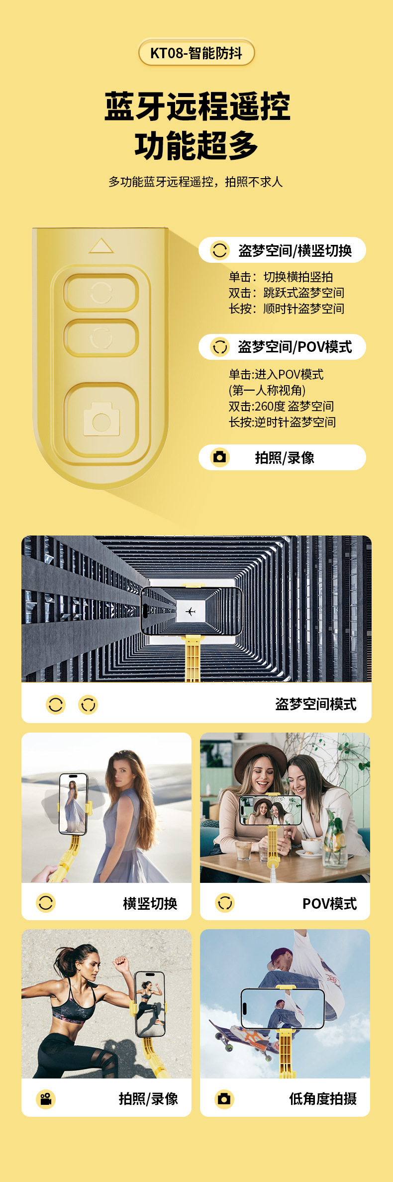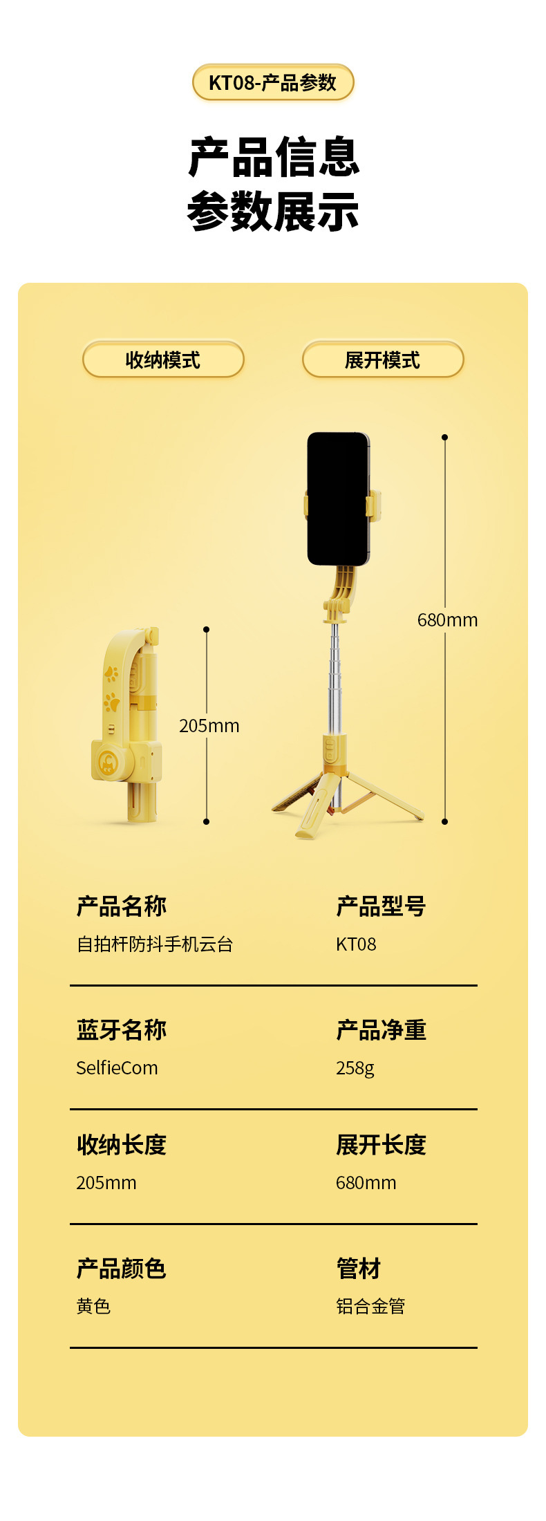 • KT08 (68cm + 흔들림 방지 안정화 + 리모콘 회전 제어 + 원버튼 가로 및 세로 촬영 + 인셉션)