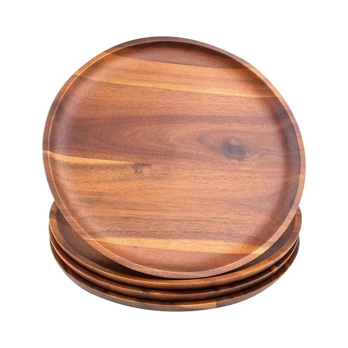 국경 간 아카시아 나무 디너 플레이트 가정용 식기 단단한 나무 트레이 조리 식품 빵 플레이트 서양 레스토랑 샐러드 플레이트 아마존스토어 가기