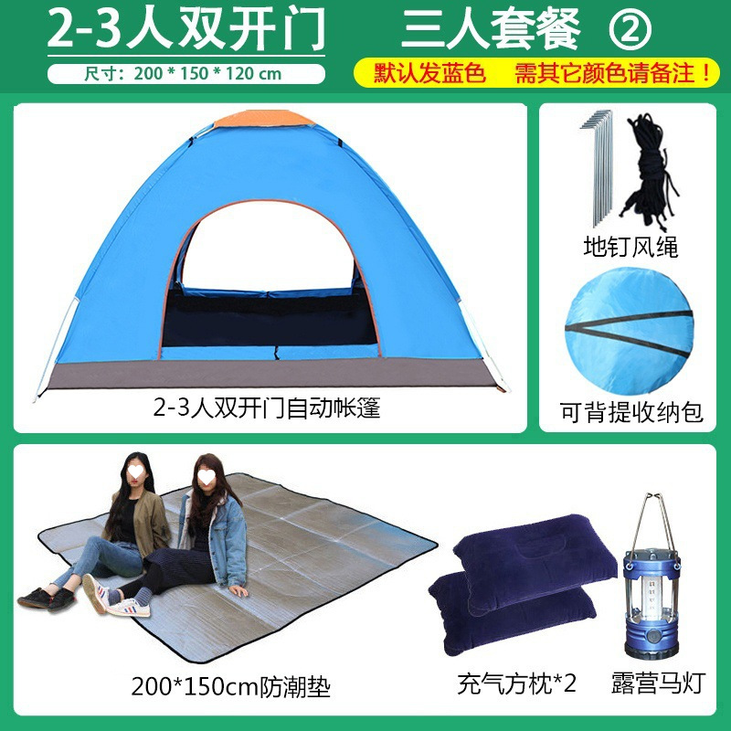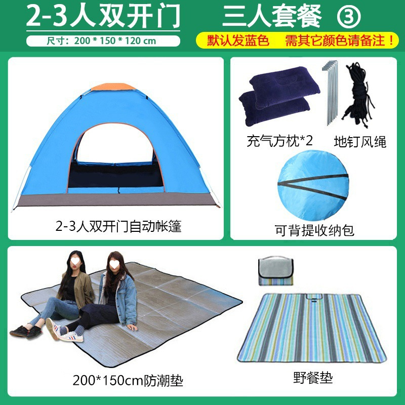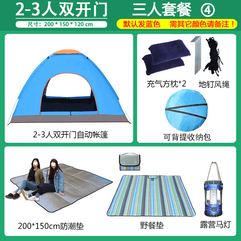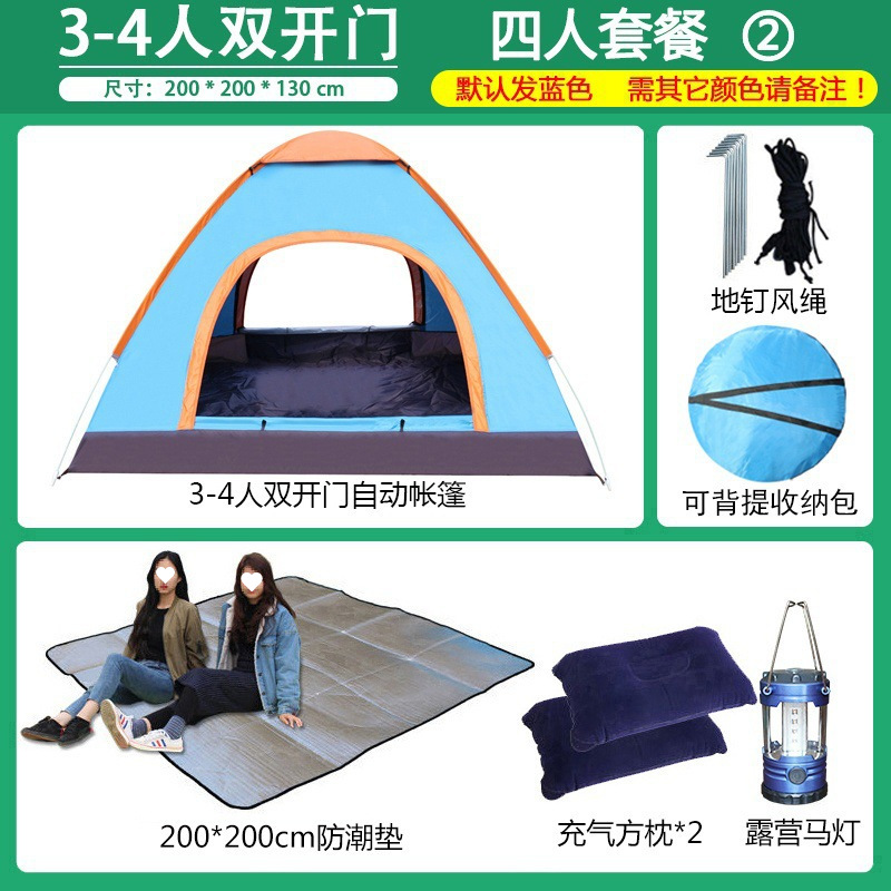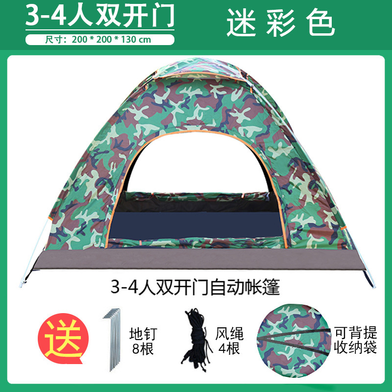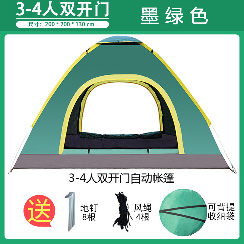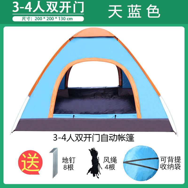 3~4인용 야외 텐트, 완전 자동 캠핑 텐트, 2인용 야외용, 두꺼워진 방수 및 자외선 차단, 초경량 및 빠른 설치