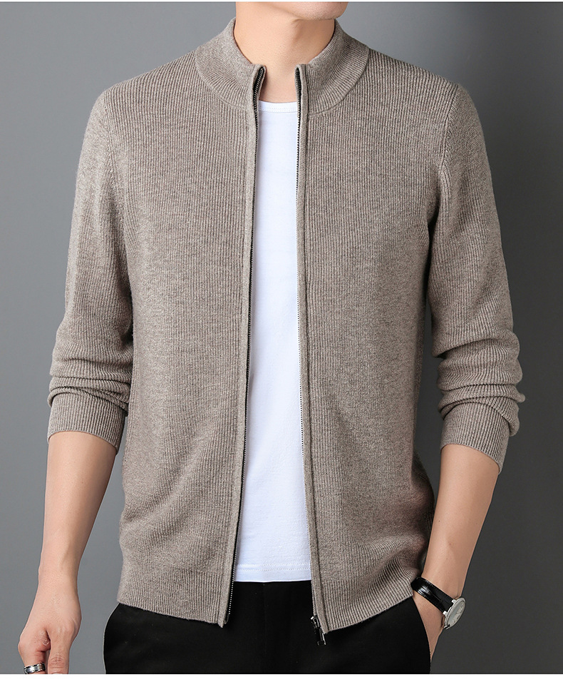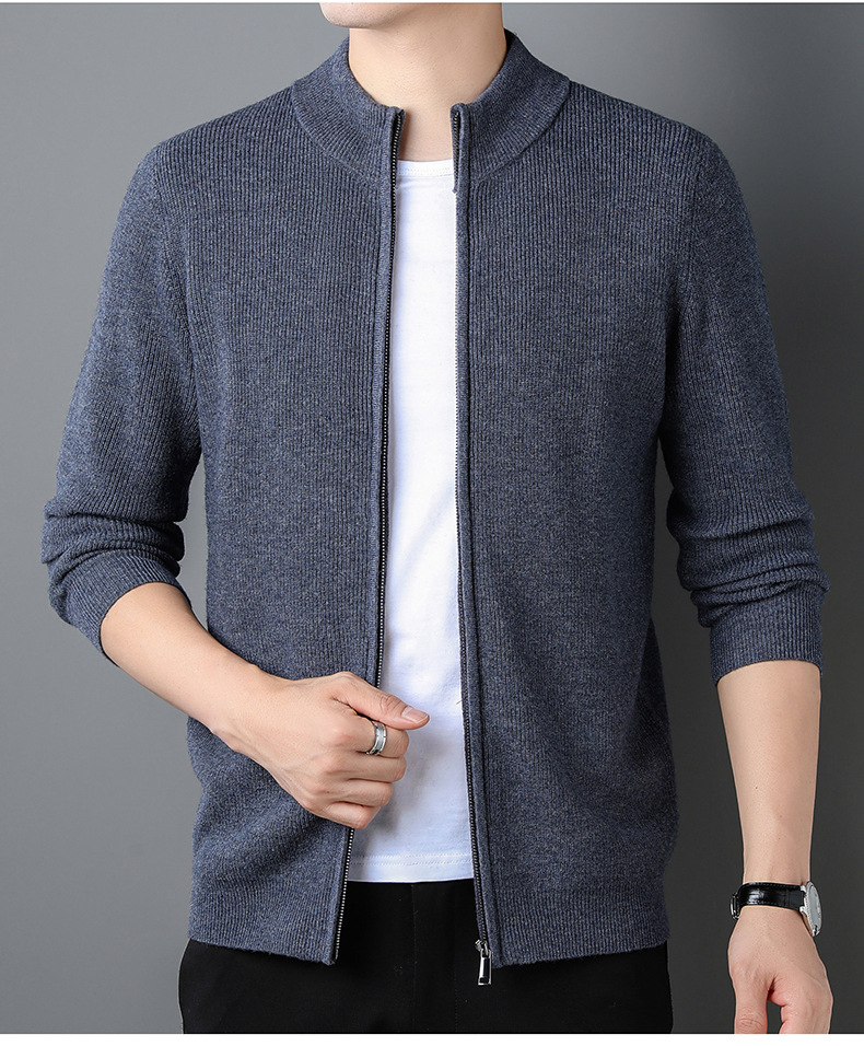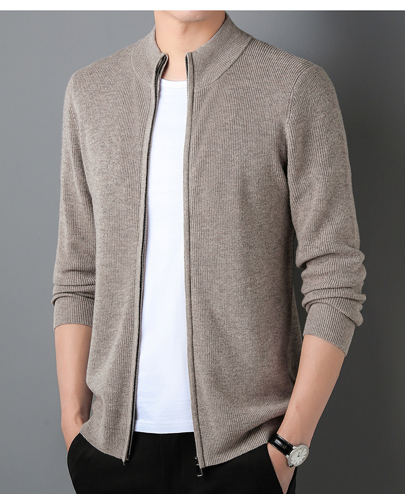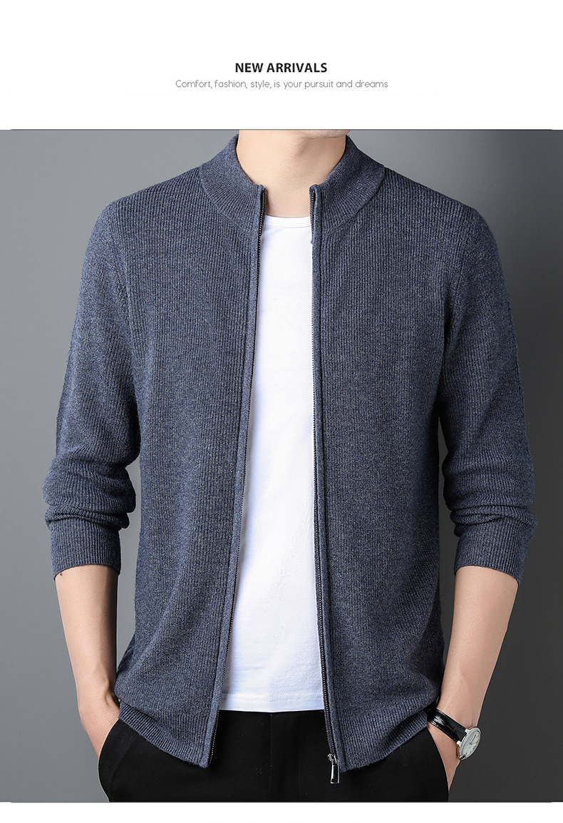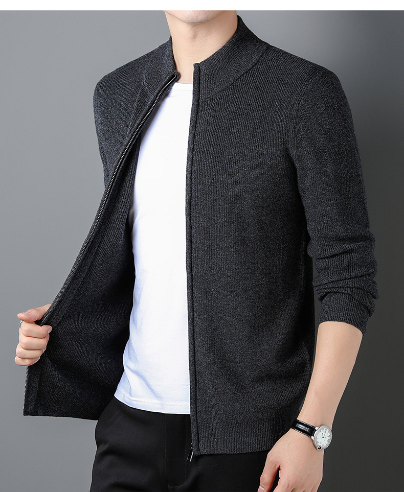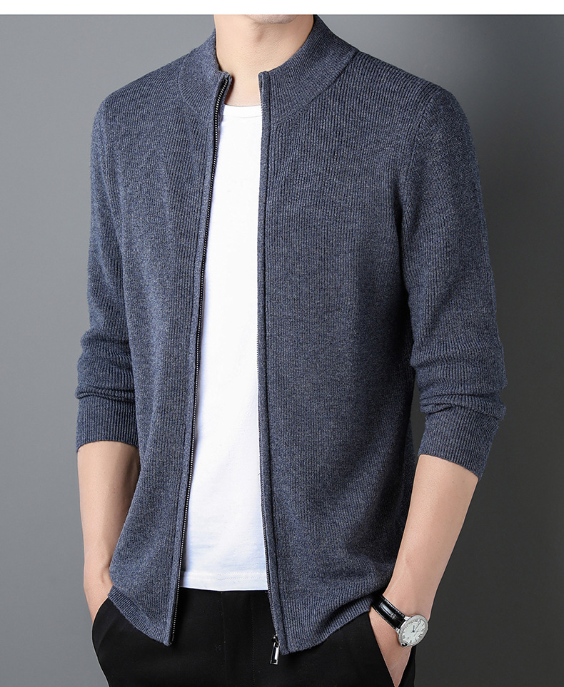 대외 무역 남성 코트 전체 양모 새로운 줄무늬 스탠드 칼라 스웨터 긴 소매 지퍼 니트 트렌디 카디건 도매스토어 가기