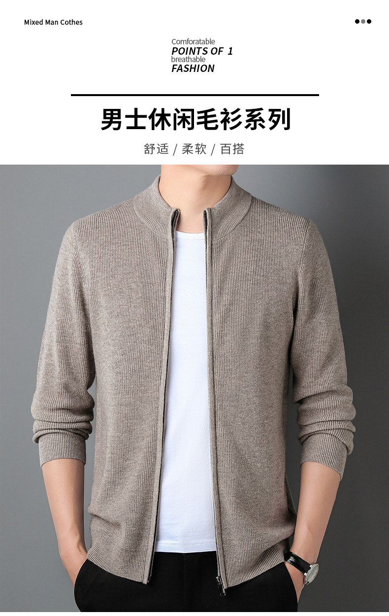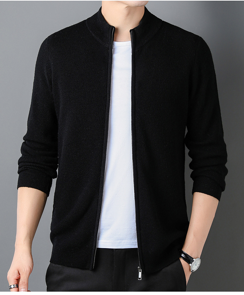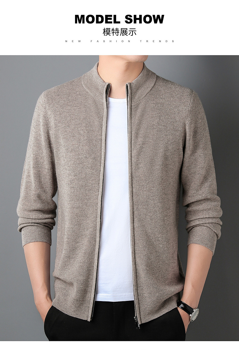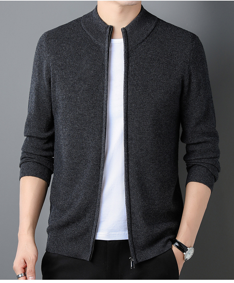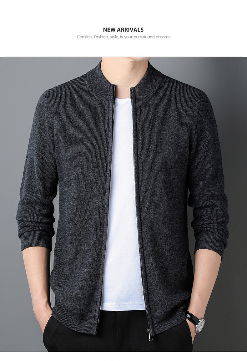 대외 무역 남성 코트 전체 양모 새로운 줄무늬 스탠드 칼라 스웨터 긴 소매 지퍼 니트 트렌디 카디건 도매스토어 가기
