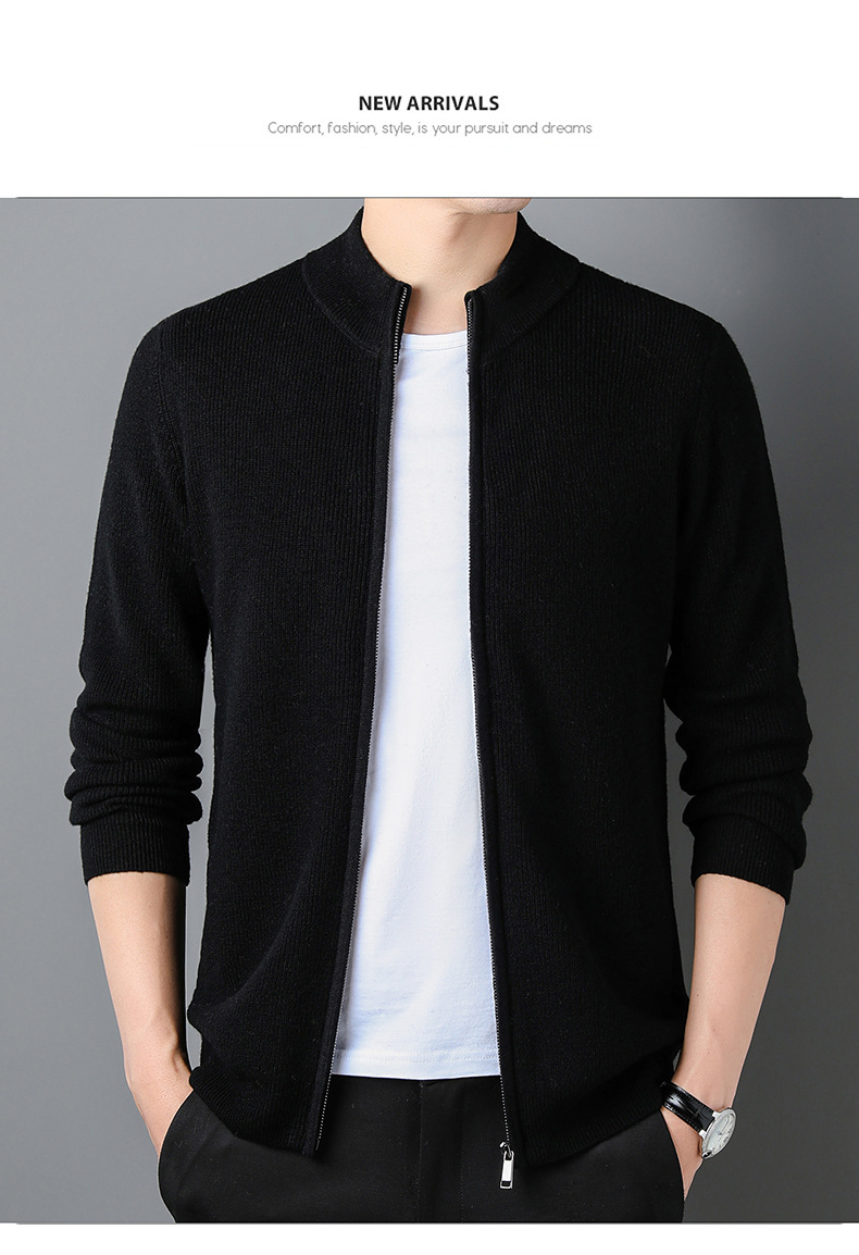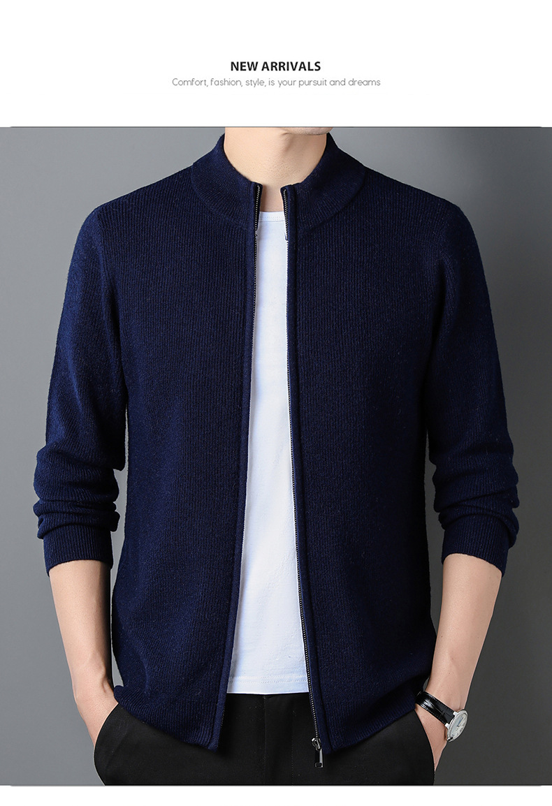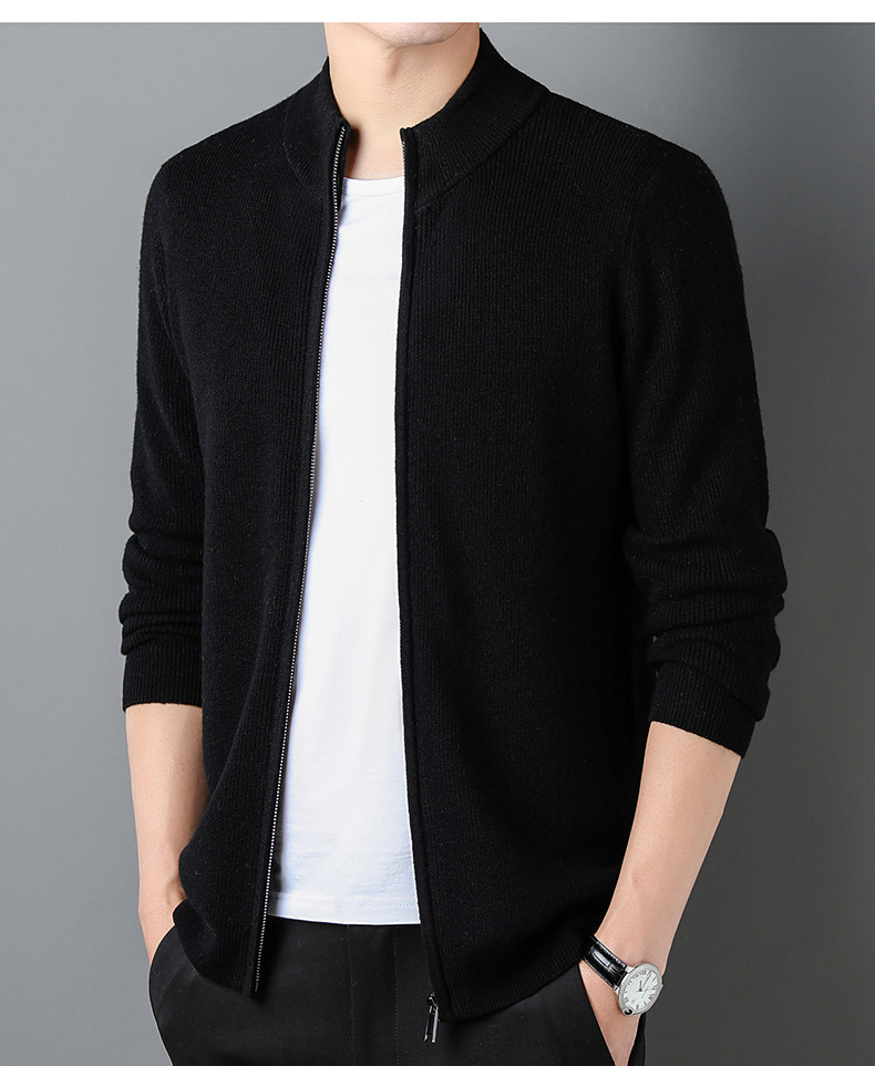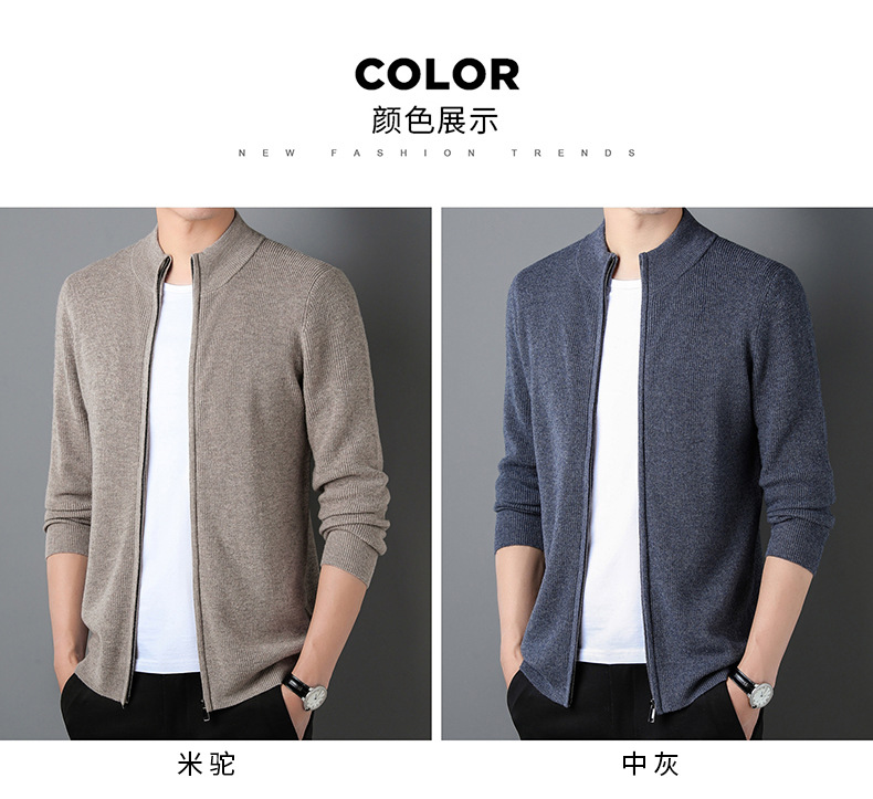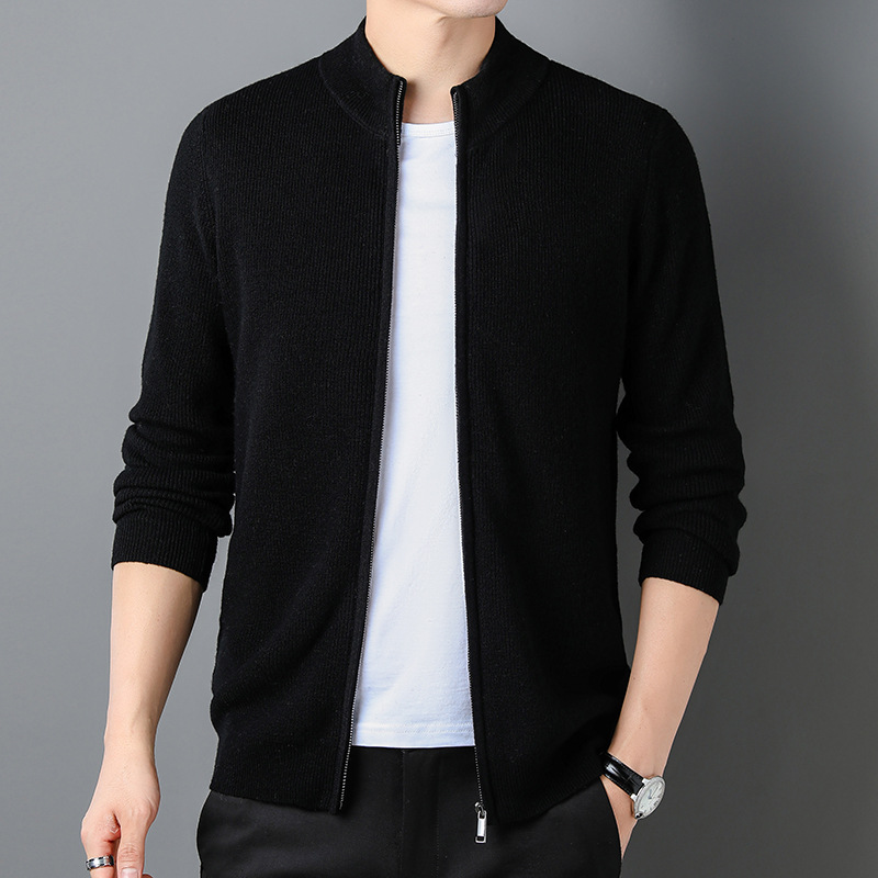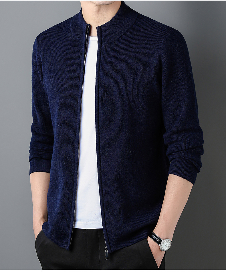 대외 무역 남성 코트 전체 양모 새로운 줄무늬 스탠드 칼라 스웨터 긴 소매 지퍼 니트 트렌디 카디건 도매스토어 가기