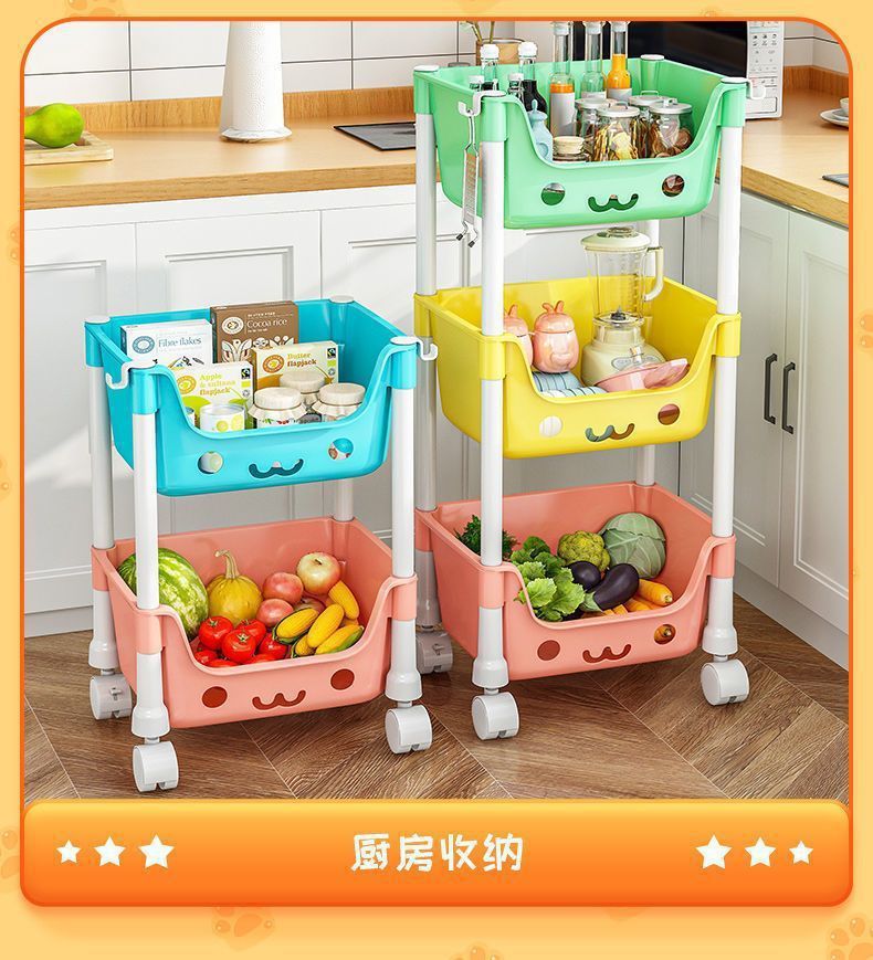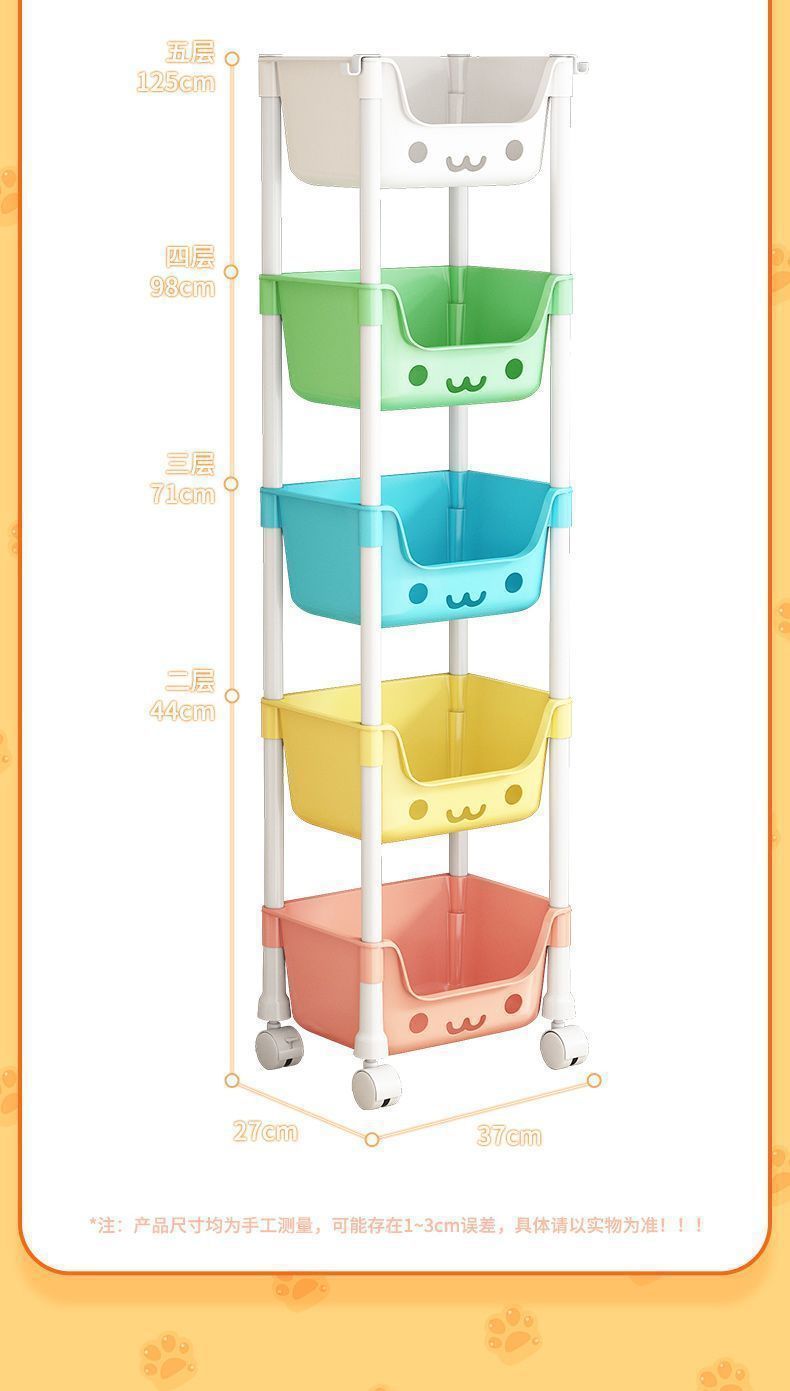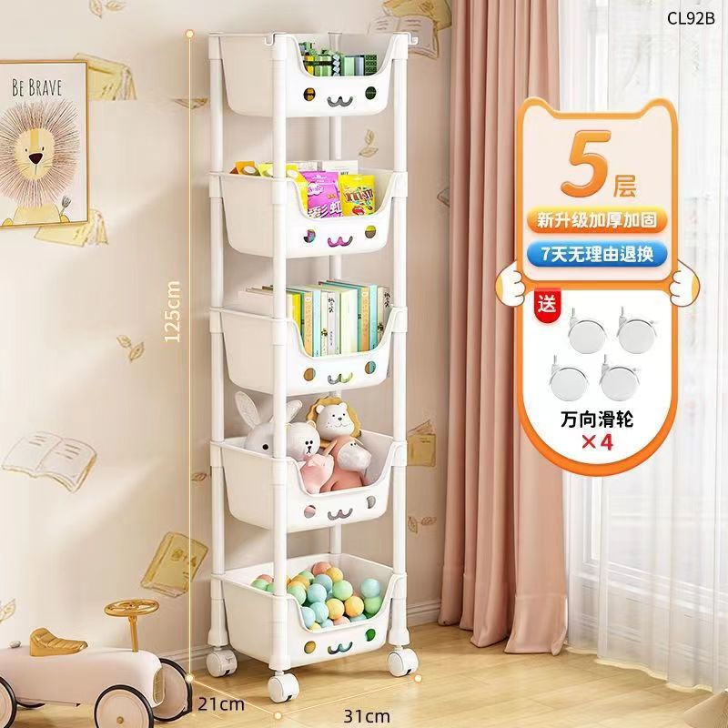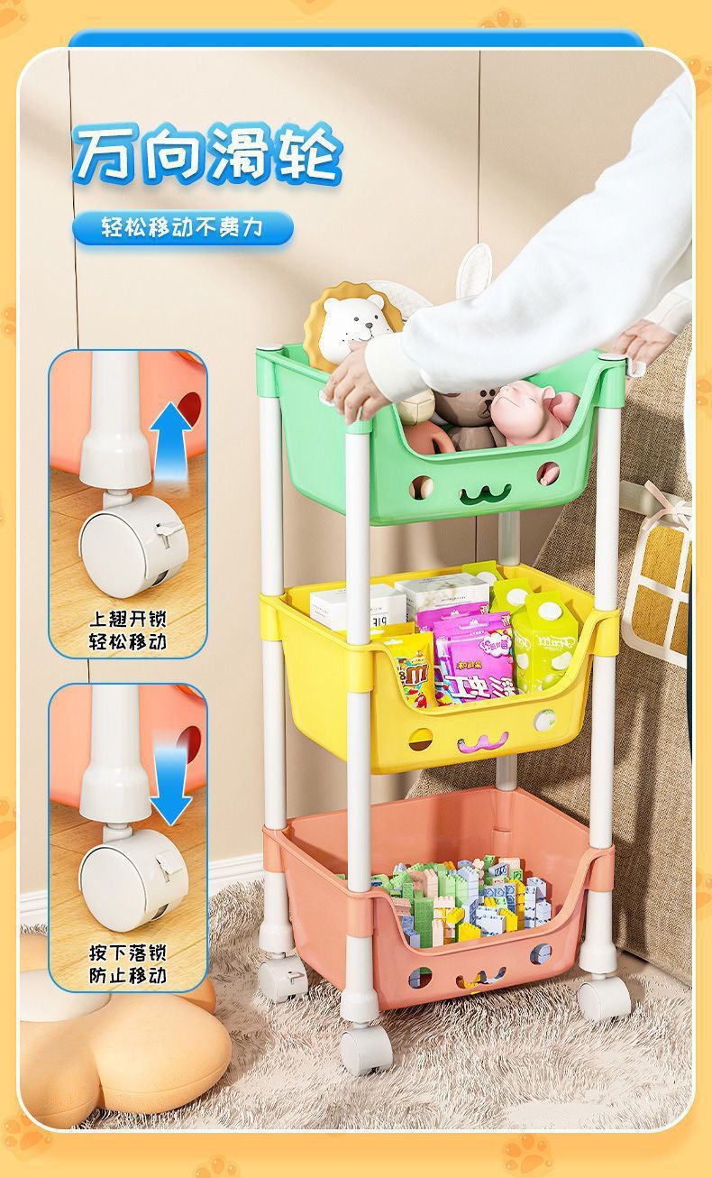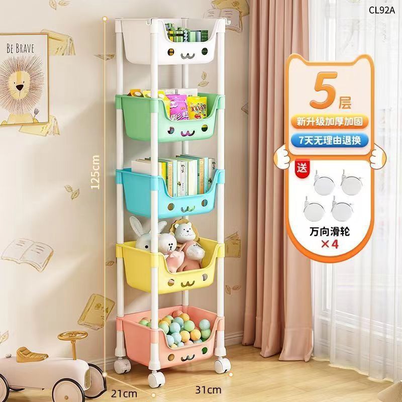 트롤리 보관 랙 바닥에서 천장까지 가정용 간식 어린이 장난감 보관 랙 다층 플라스틱 이동식 보관 랙