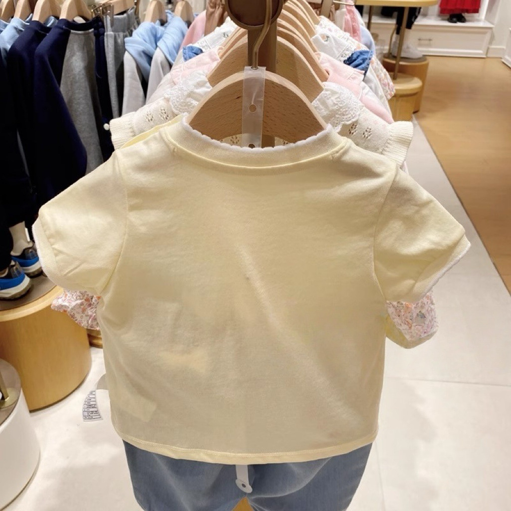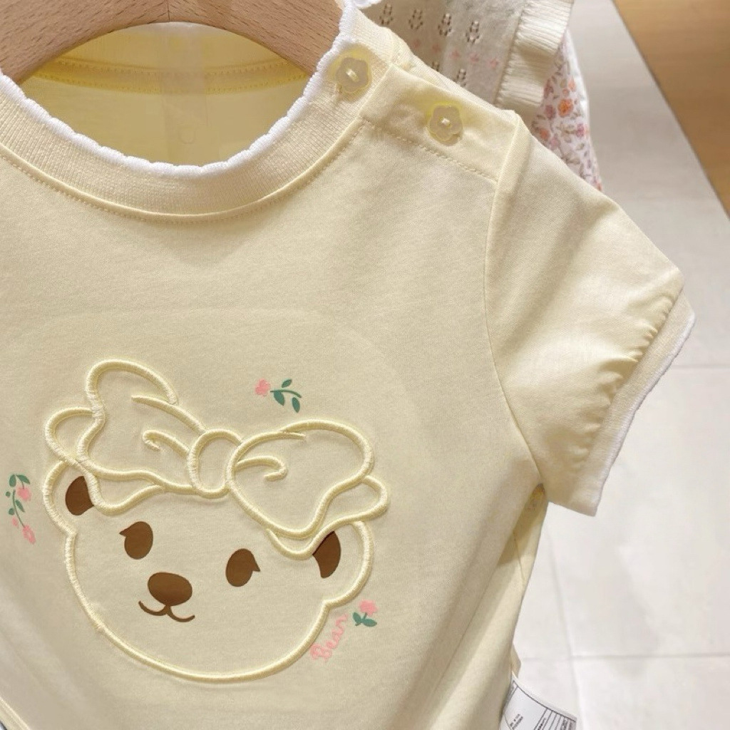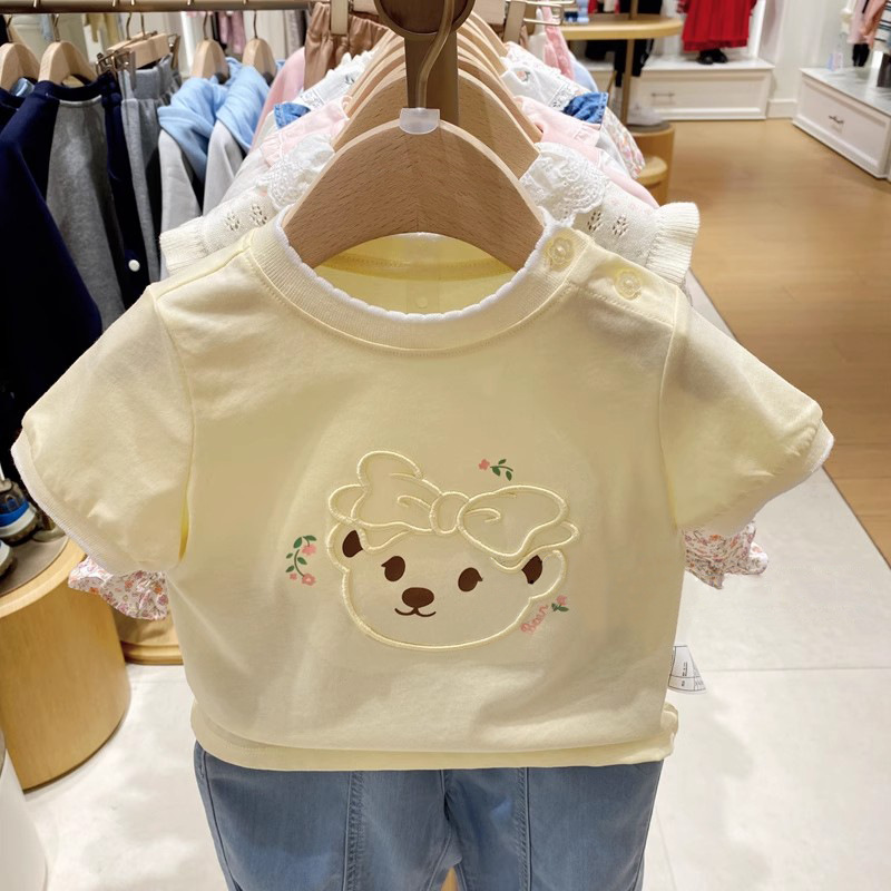 2025 여름 베어 걸스 라운드 넥 반팔 티셔츠 캐주얼 코튼 탑 중대형 어린이스토어 가기
