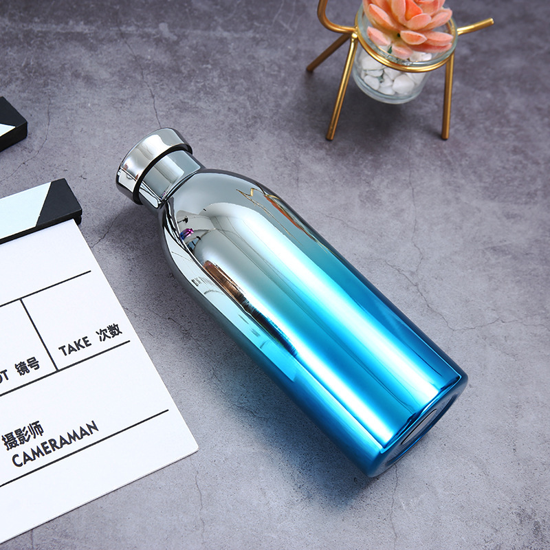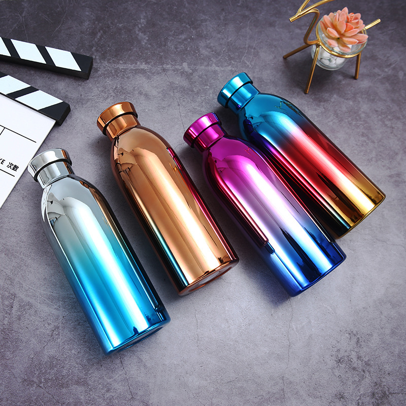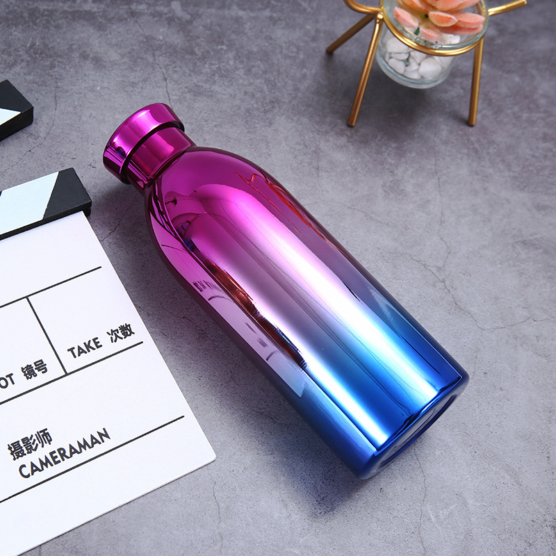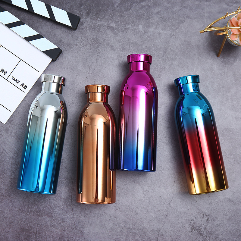 국경 간 이중층 진공 미국식 소형 입 병 304 스테인레스 스틸 야외 스포츠 물병 그라디언트 색상 등산 보온병 컵