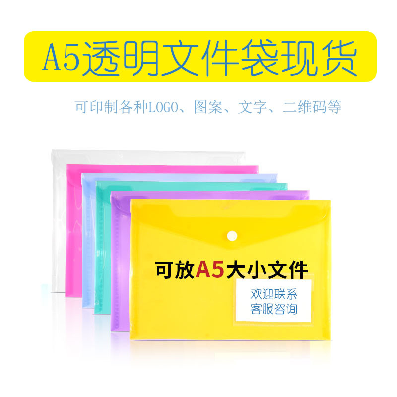 공장 직접 판매 투명 A5 스냅 파일 가방 파일 가방 명함 포켓이있는 학생 보관 가방 PP 지폐 보관스토어 가기