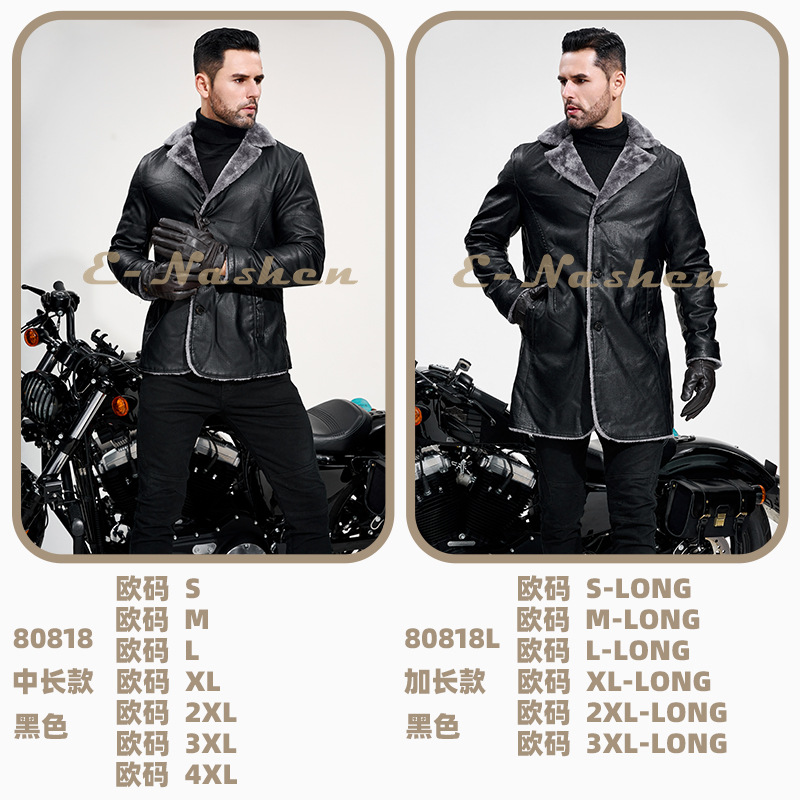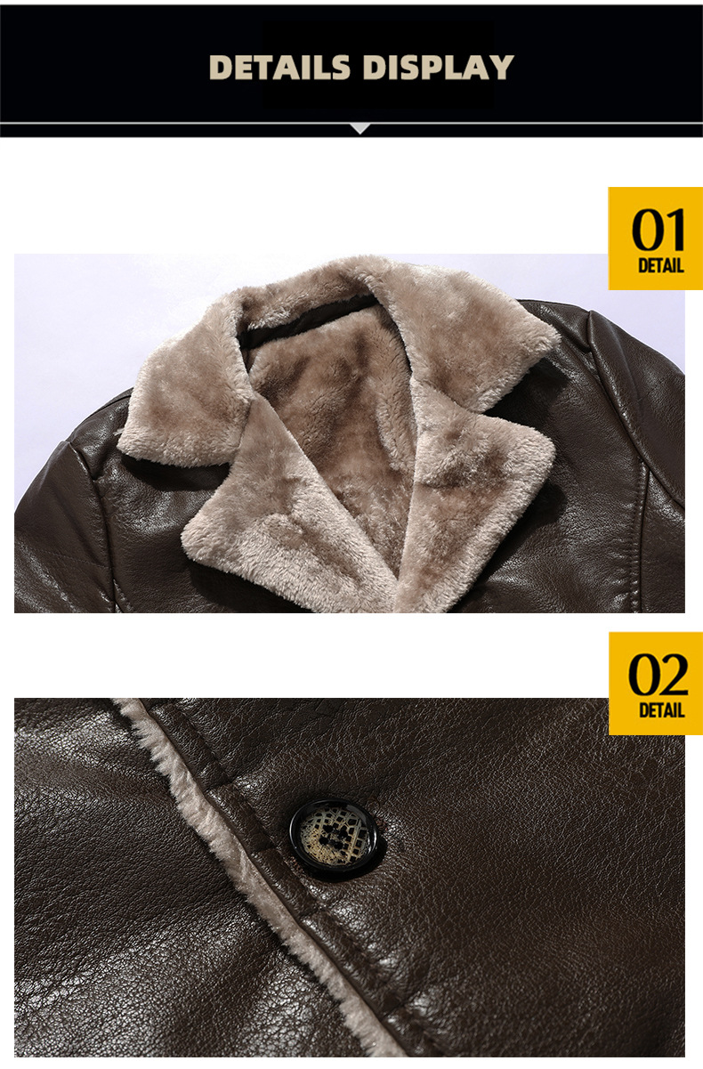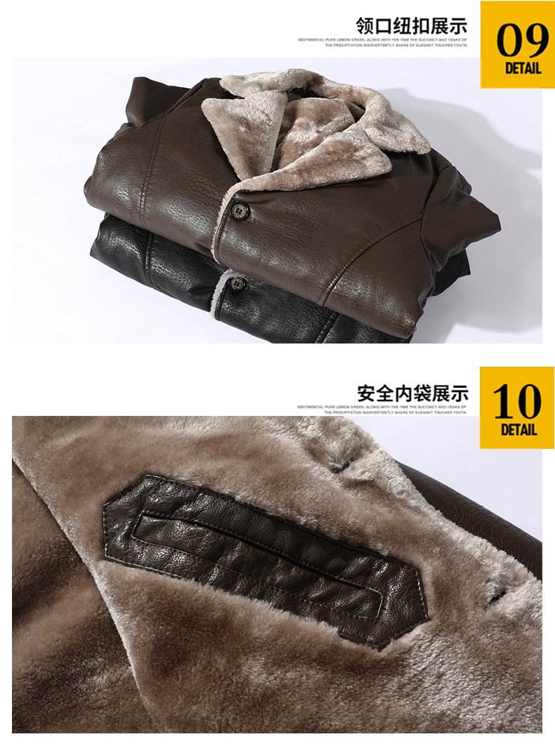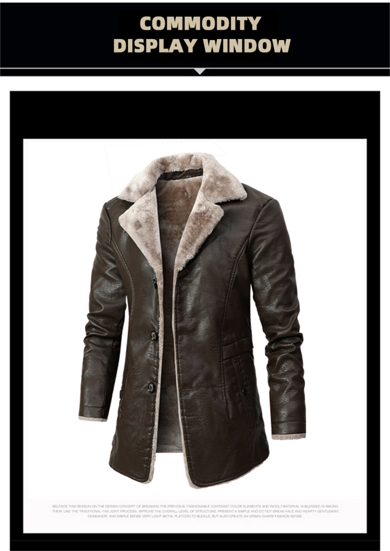 중년 및 노년층을 위한 남성용 중간 길이 가죽 코트, 가을 겨울 비즈니스 유럽 사이즈 플러스 벨벳 대형 라펠 슈트 남성용 모피 플러시 코트스토어 가기