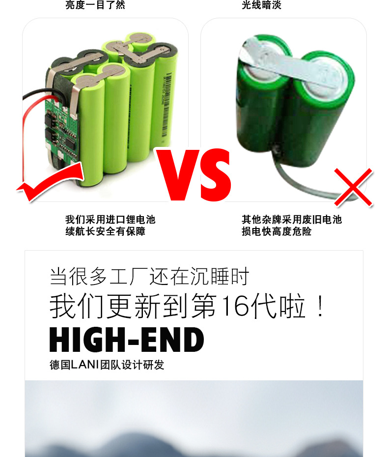 • 매우 밝은 50000W 아이보리 화이트 충전식 램프(시간 15H)에는 충전기 + 2m개가 함께 제공됩니다.