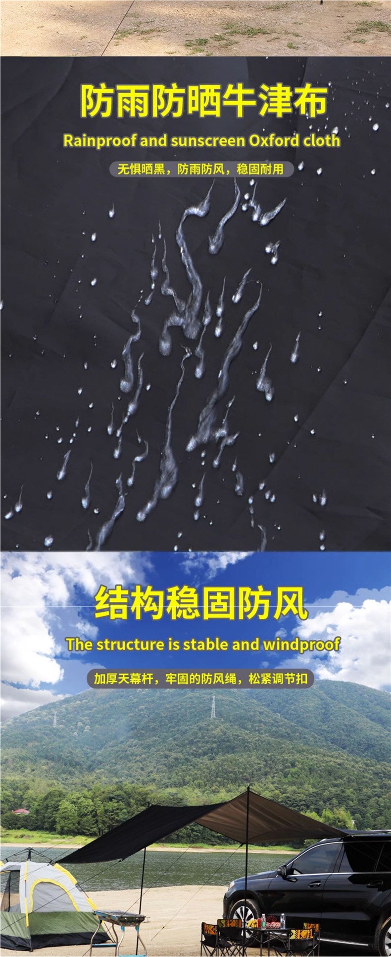 차량 옆 캠핑 캐노피, 자율주행 여행, 야외 텐트, 차량 옆면 및 뒷면, 자외선 차단, 차양, 방수
