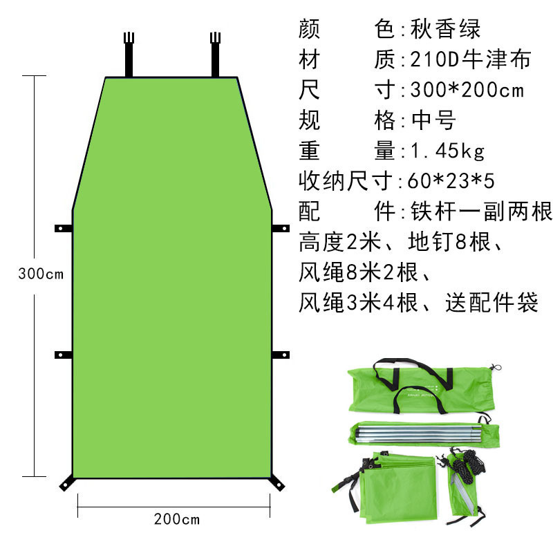 • 가을 녹색 자동차 사이드 텐트 [액세서리 풀 세트 포함] 중간 크기 300*200cm