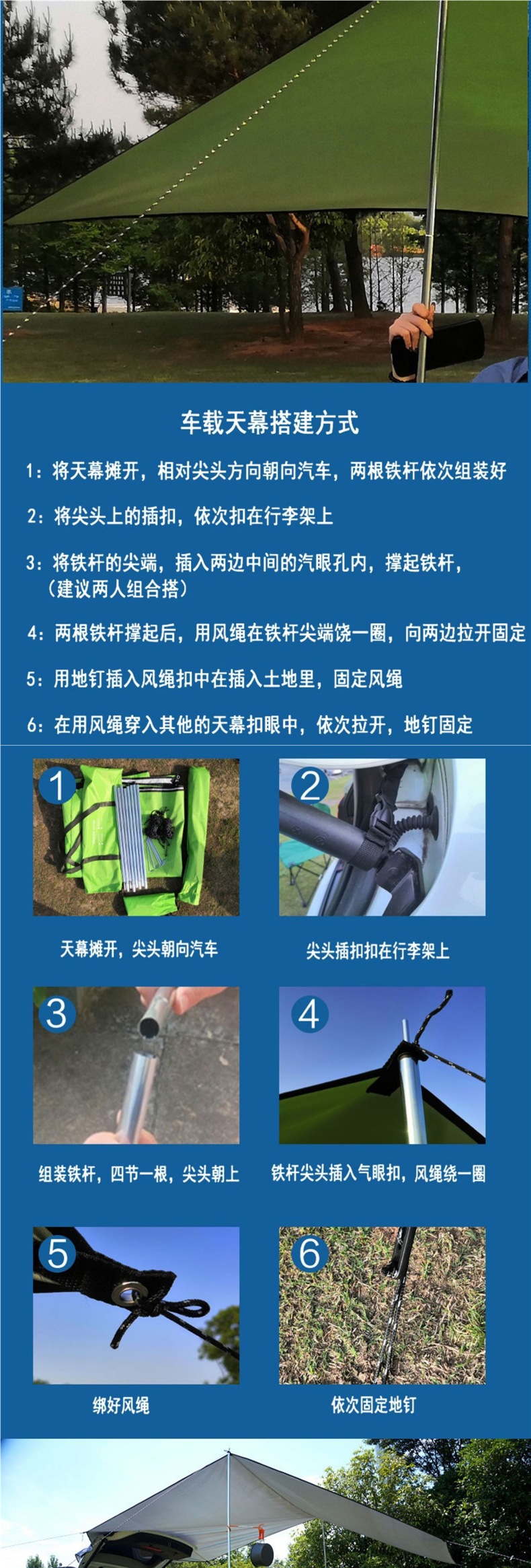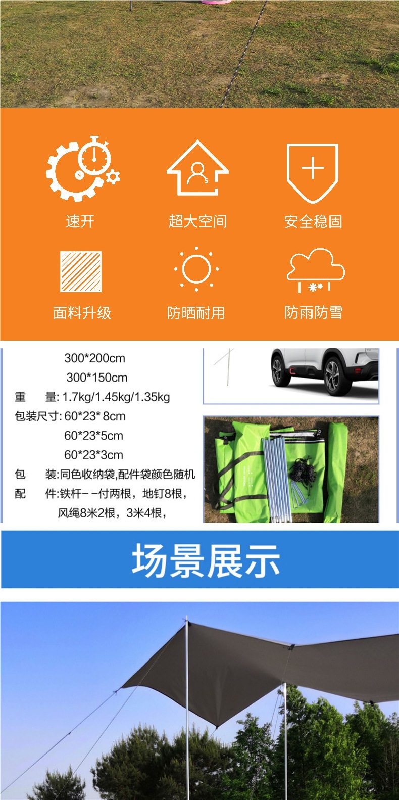 • 사파이어 블루 자동차 사이드 텐트 [액세서리 풀 세트 포함] 중간 크기 300*200cm