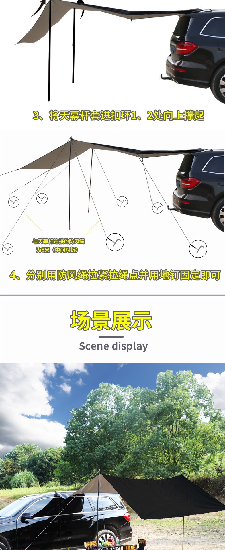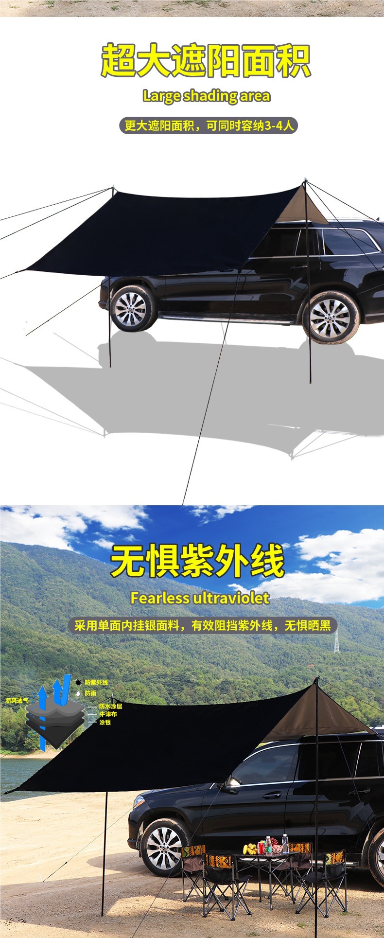차량 옆 캠핑 캐노피, 자율주행 여행, 야외 텐트, 차량 옆면 및 뒷면, 자외선 차단, 차양, 방수스토어 가기