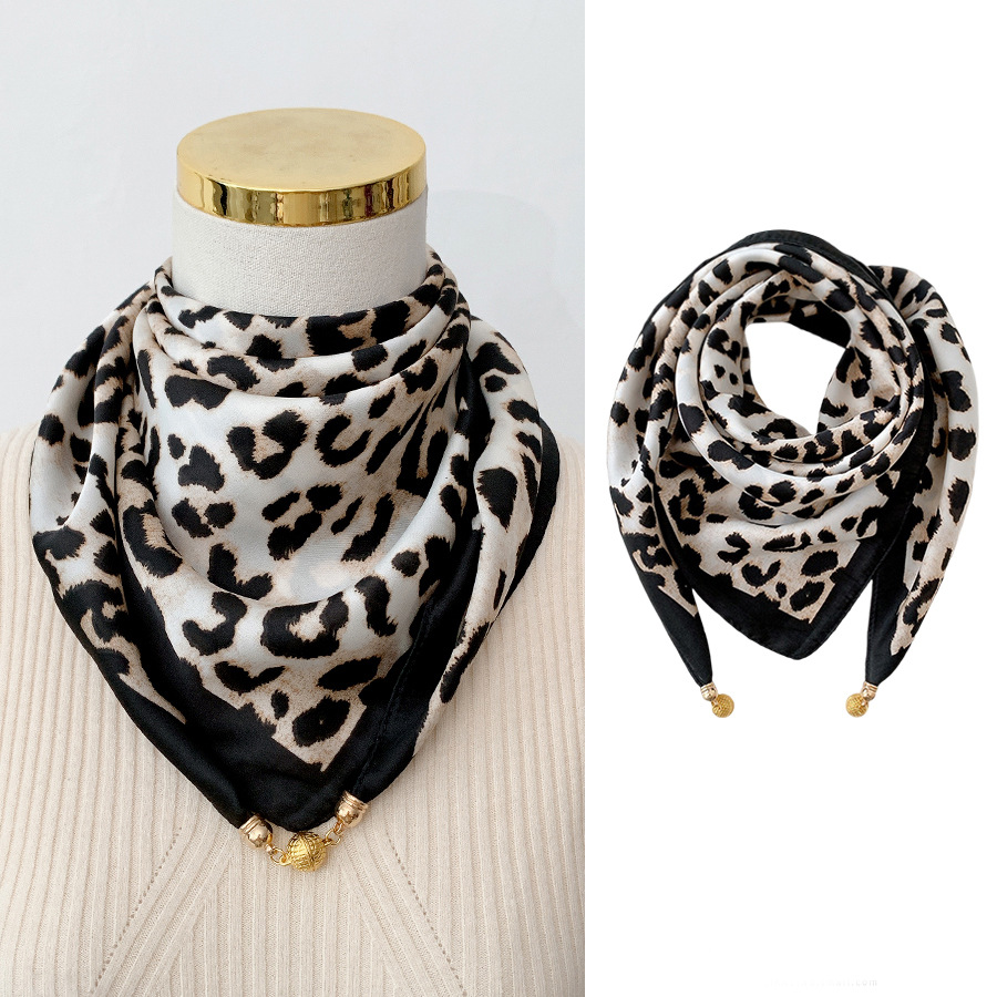 • 블랙-스타 레오파드 프린트(65 모조 실크 마그네틱 버클 스퀘어 스카프)