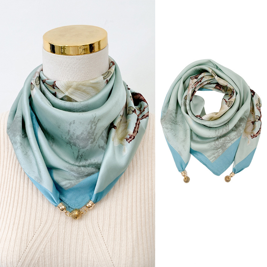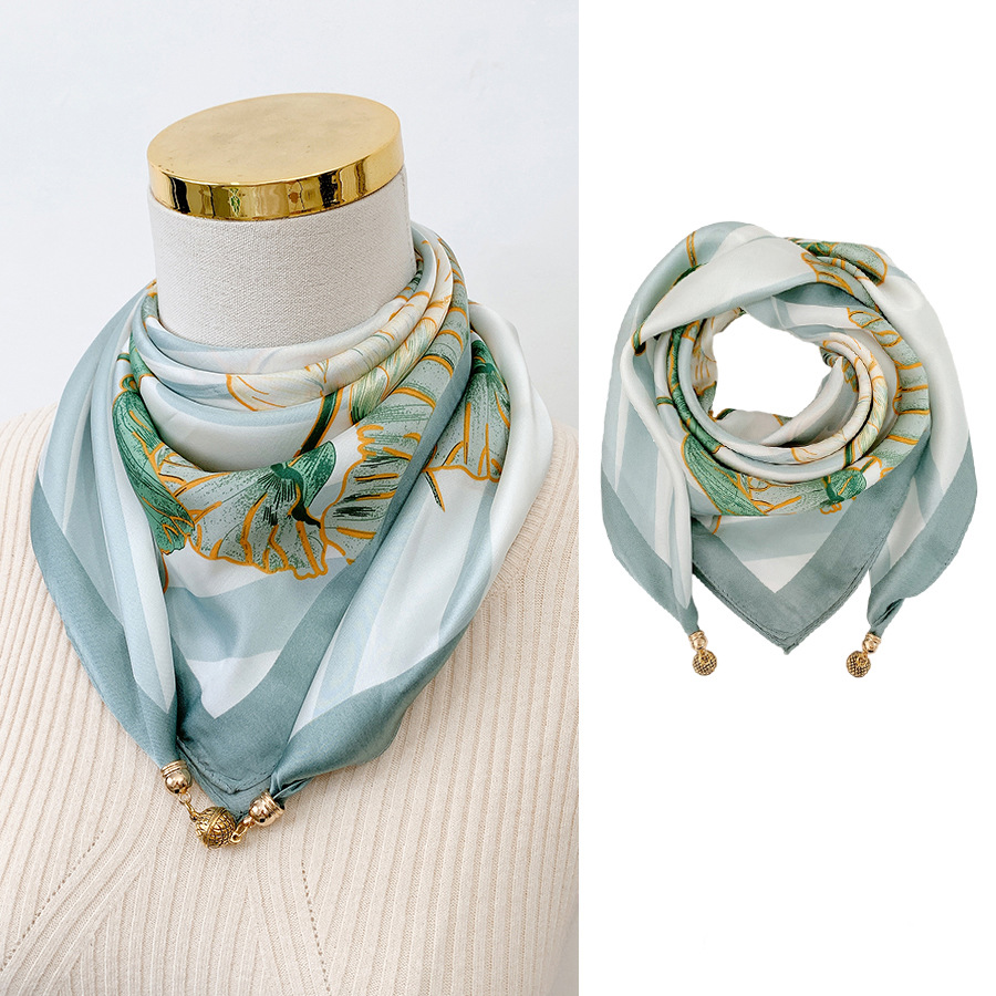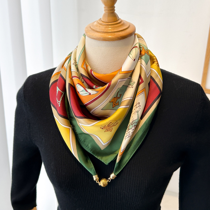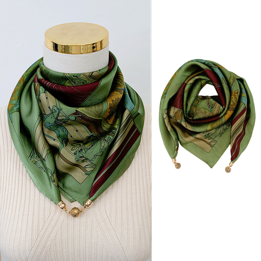 • 짙은 녹색 - 복고풍 말(65 모조 실크 자석 버클 사각 스카프)
