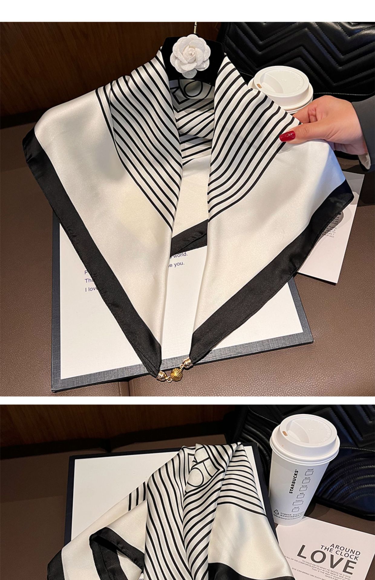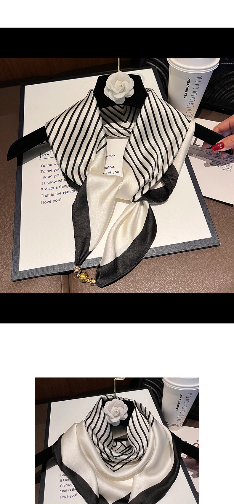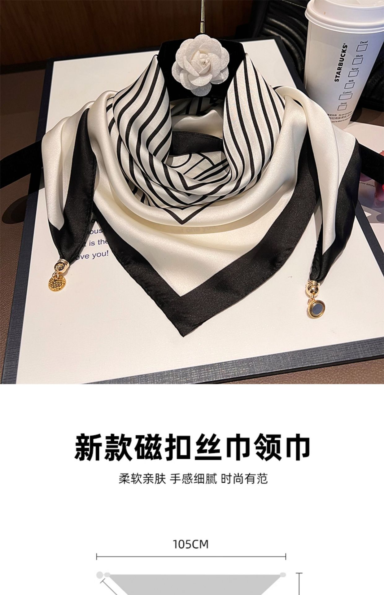 한국 스타일 스트라이프 스몰 스퀘어 스카프, 분위기 있는 실크 스카프, 여성용 스퀘어 스카프, 마그네틱 버클 삼각 스카프, 셔츠 넥 워머, 얇은 스카프, 넥 스카프스토어 가기