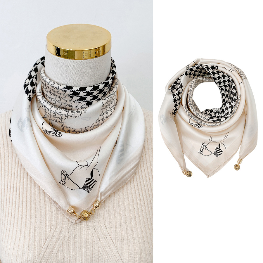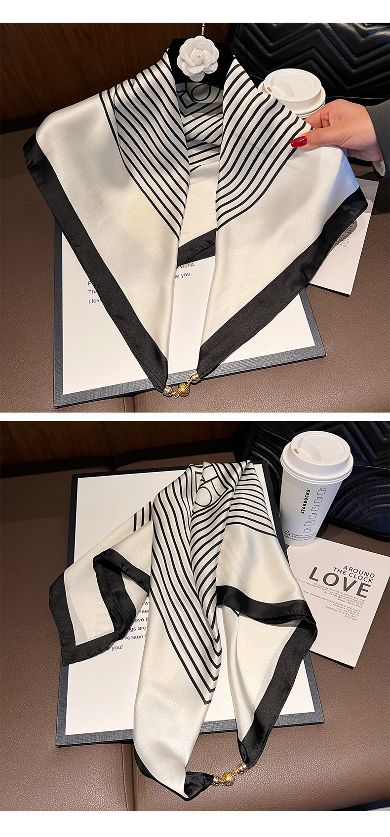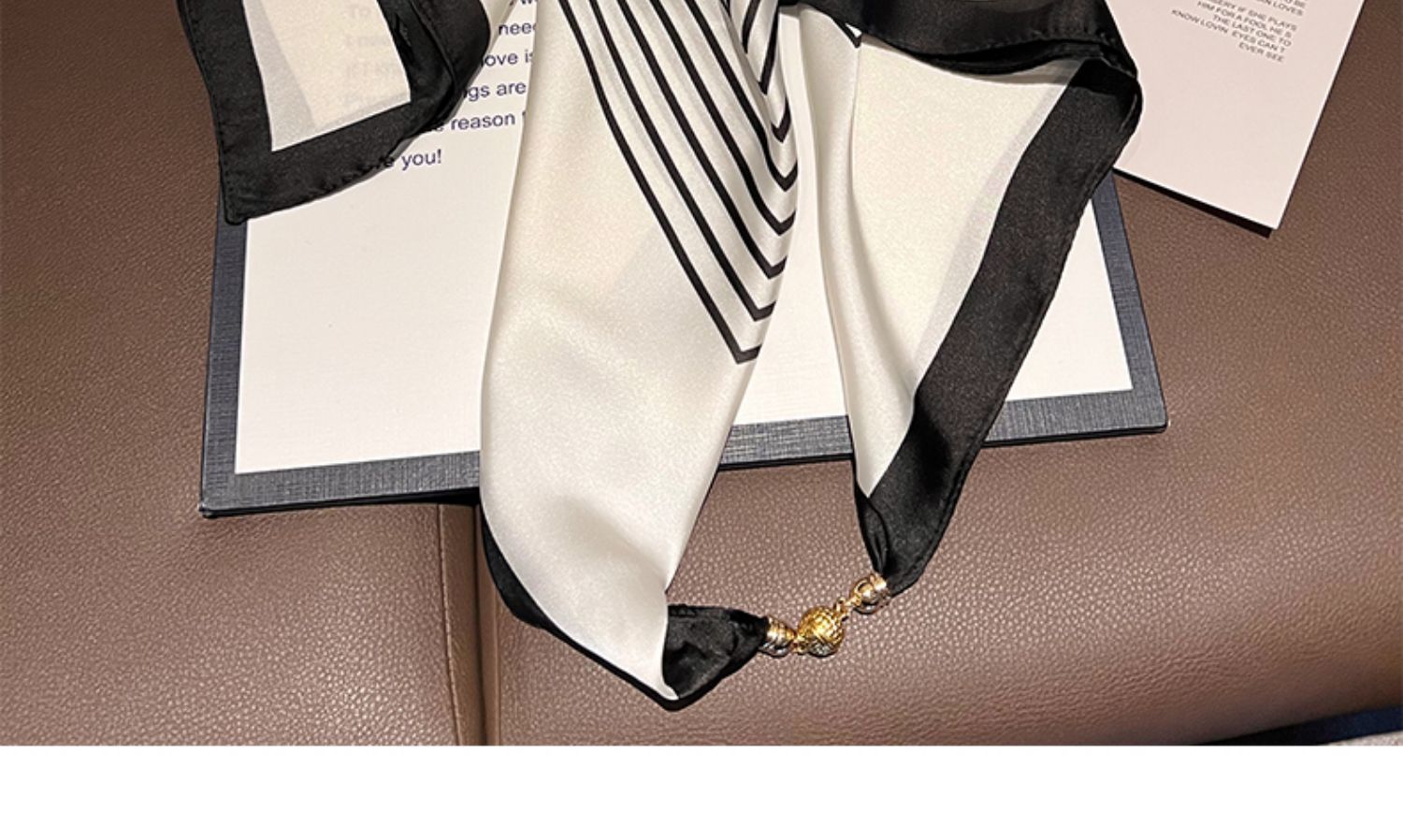 한국 스타일 스트라이프 스몰 스퀘어 스카프, 분위기 있는 실크 스카프, 여성용 스퀘어 스카프, 마그네틱 버클 삼각 스카프, 셔츠 넥 워머, 얇은 스카프, 넥 스카프스토어 가기