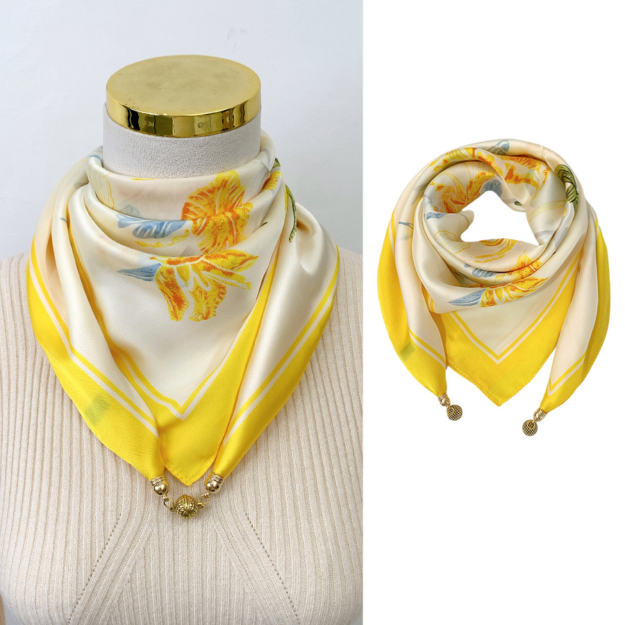 • 노란색 가장자리 다섯잎 꽃--[자석 새틴 스퀘어 스카프]