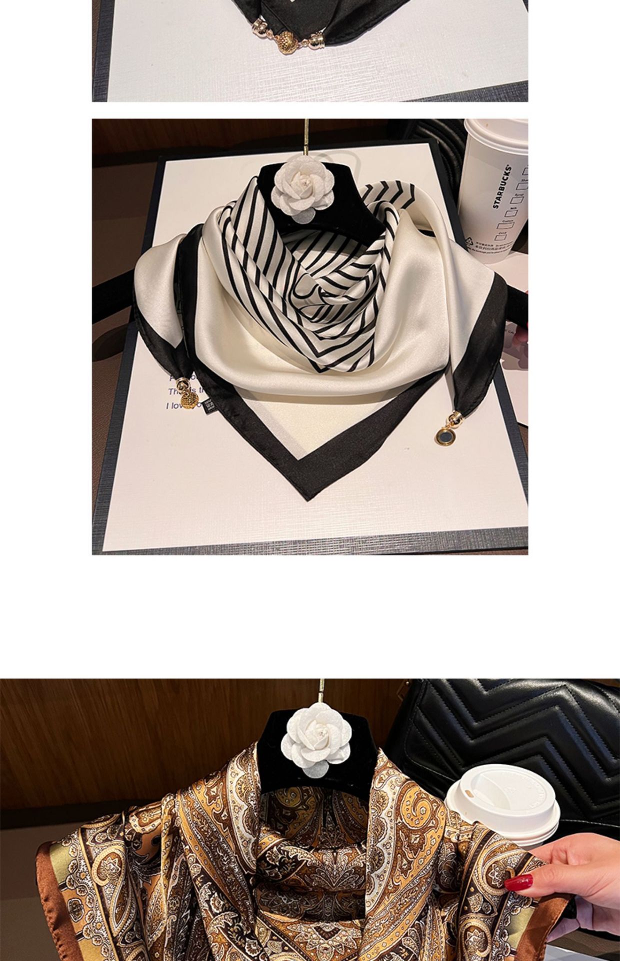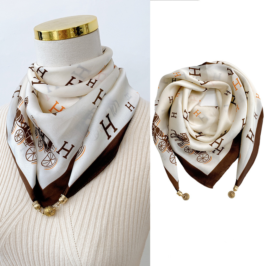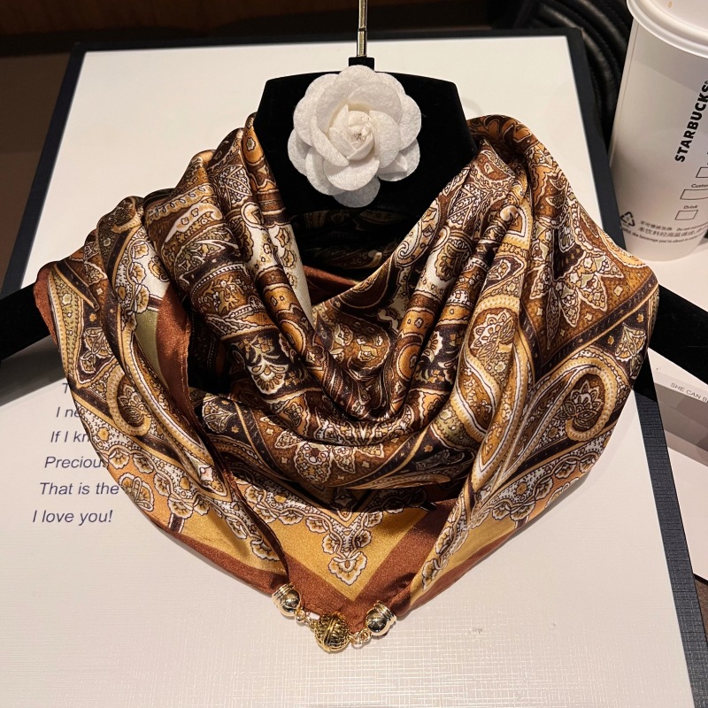 • 브라운-그린 커피-캐슈넛-(65 모조 실크 자석 버클 스퀘어 스카프)