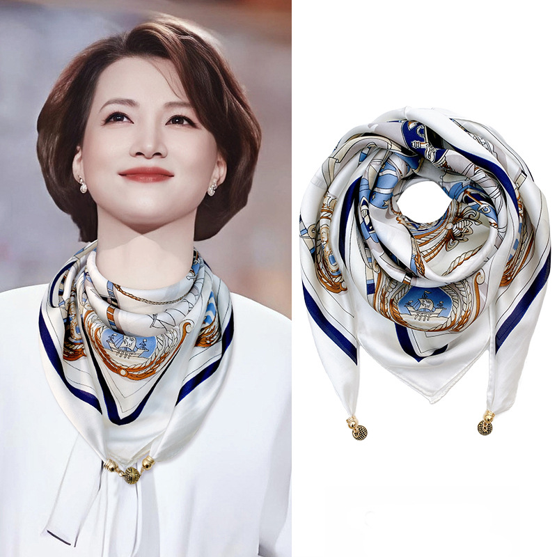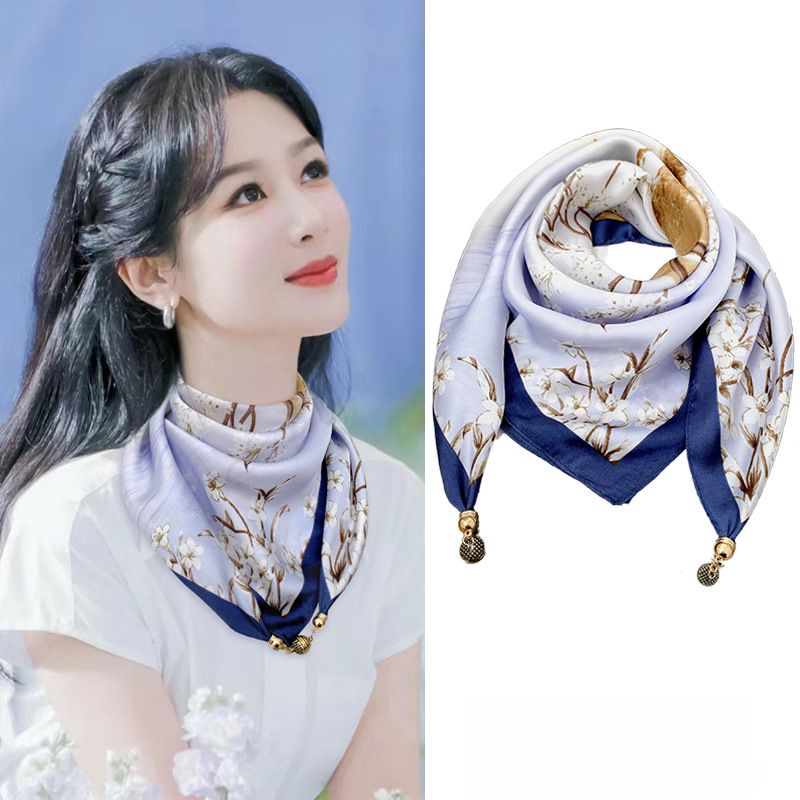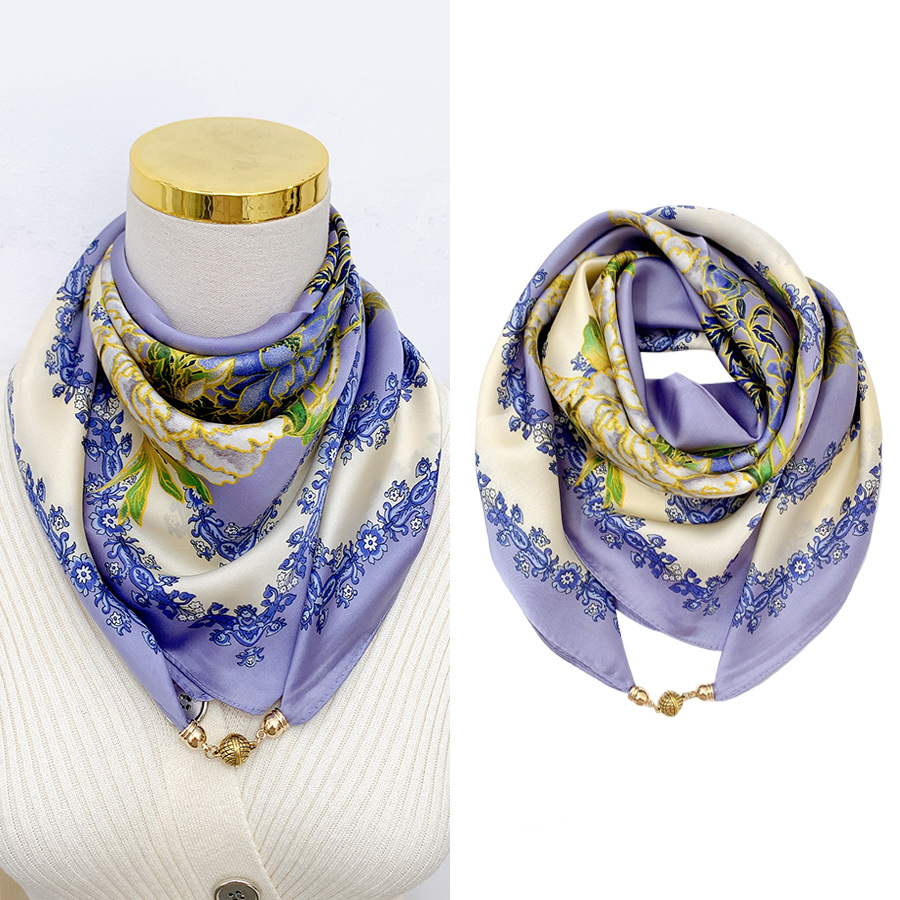 • 블루-장안 말(65 모조 실크 자석 버클 사각 스카프)
