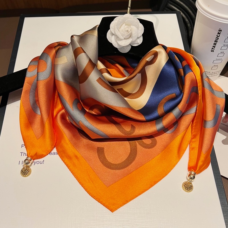 • 오렌지 H--[자석 새틴 스퀘어 스카프]