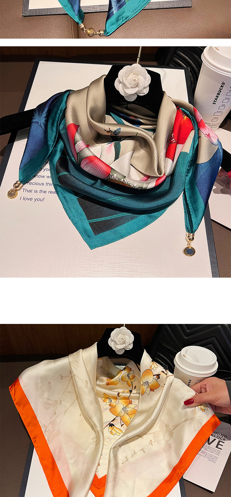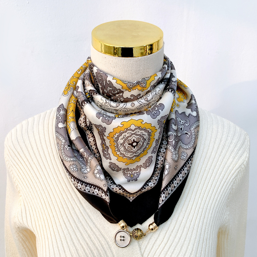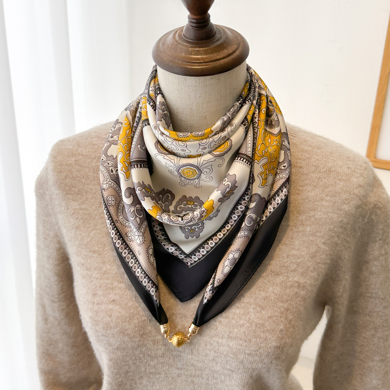 • 강황 복고풍 궁전 패턴(65 모조 실크 자석 버클 사각 스카프)