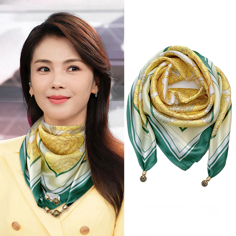• 그린 엣지-옐로우 피오니-(65 모조 실크 자석 버클 스퀘어 스카프)