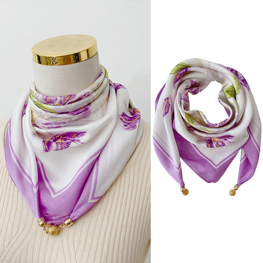 • 연한 보라색-두메이 아이리스(65 모조 실크 자석 버클 사각 스카프)