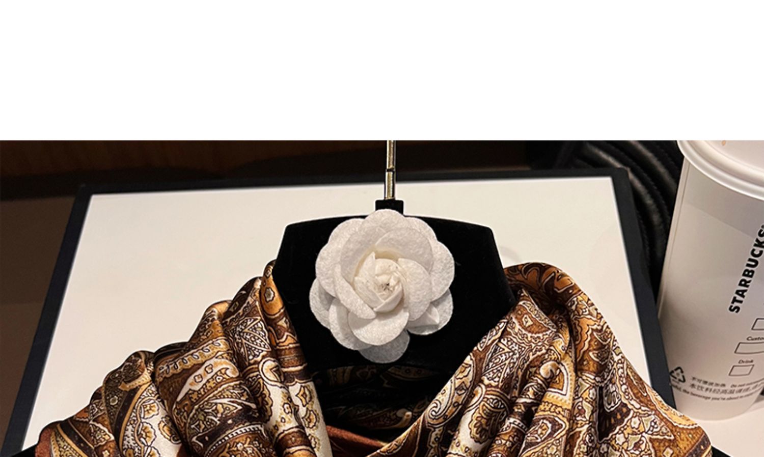 • 카멜 라이트 럭셔리 플라워--[마그네틱 새틴 스퀘어 스카프]