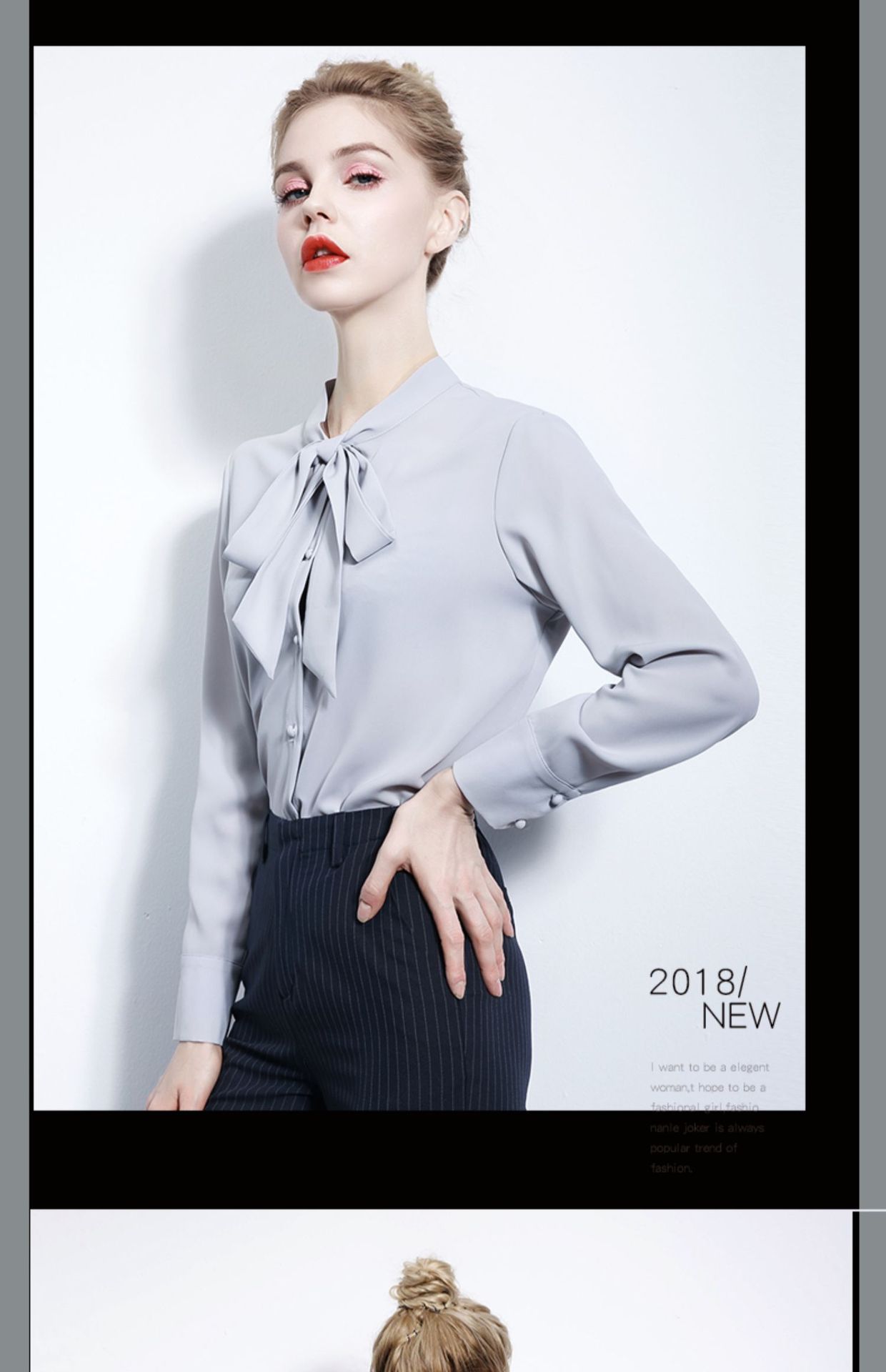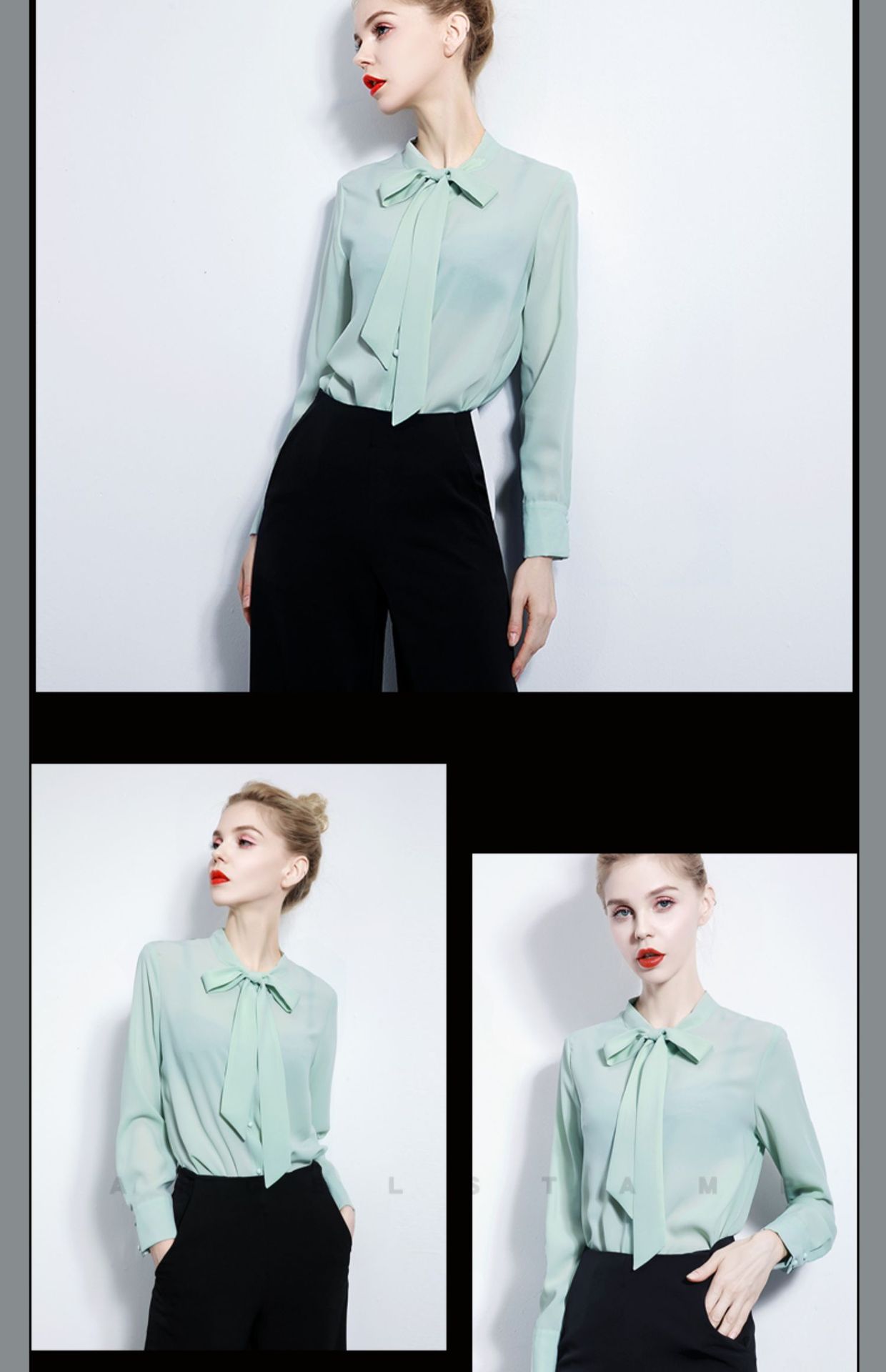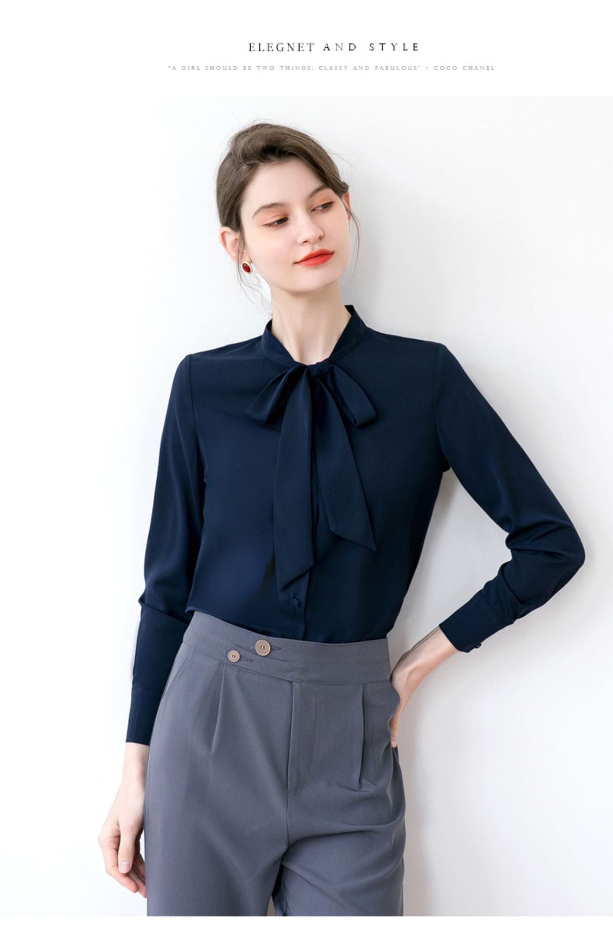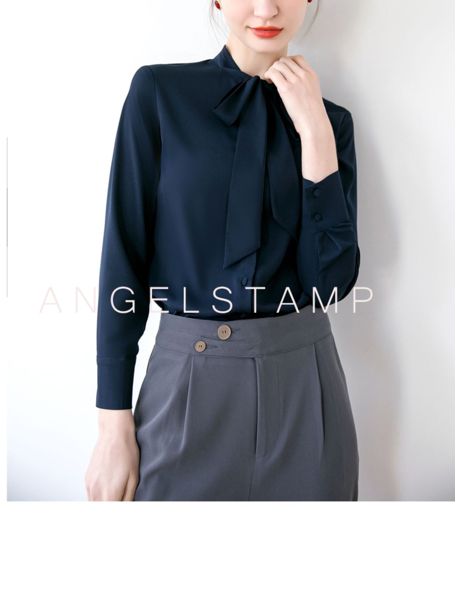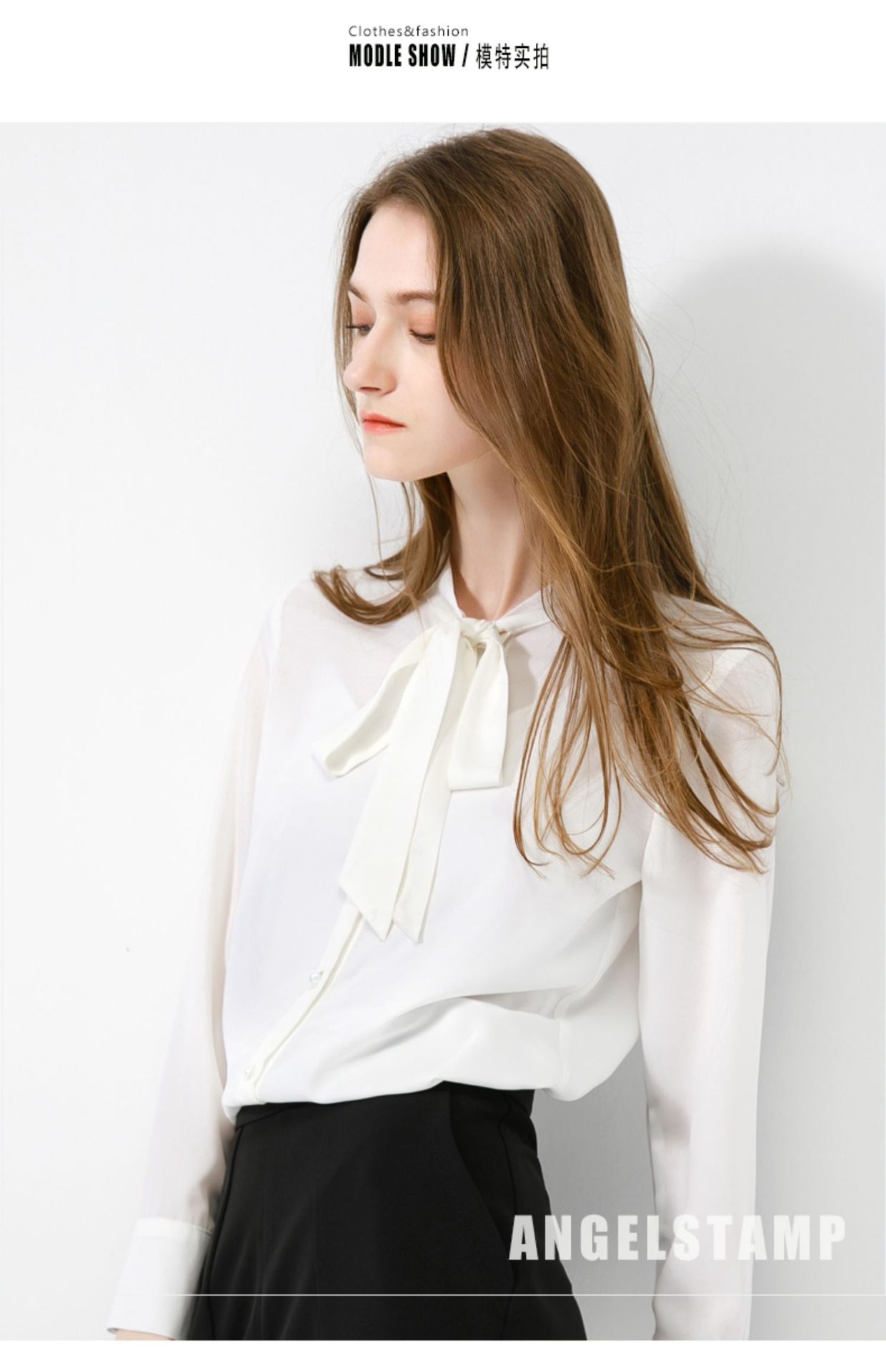 Bowknot 셔츠 여성 2025 가을 새로운 여성 향기 OL 긴 소매 쉬폰 셔츠 루즈 셔츠 탑스토어 가기