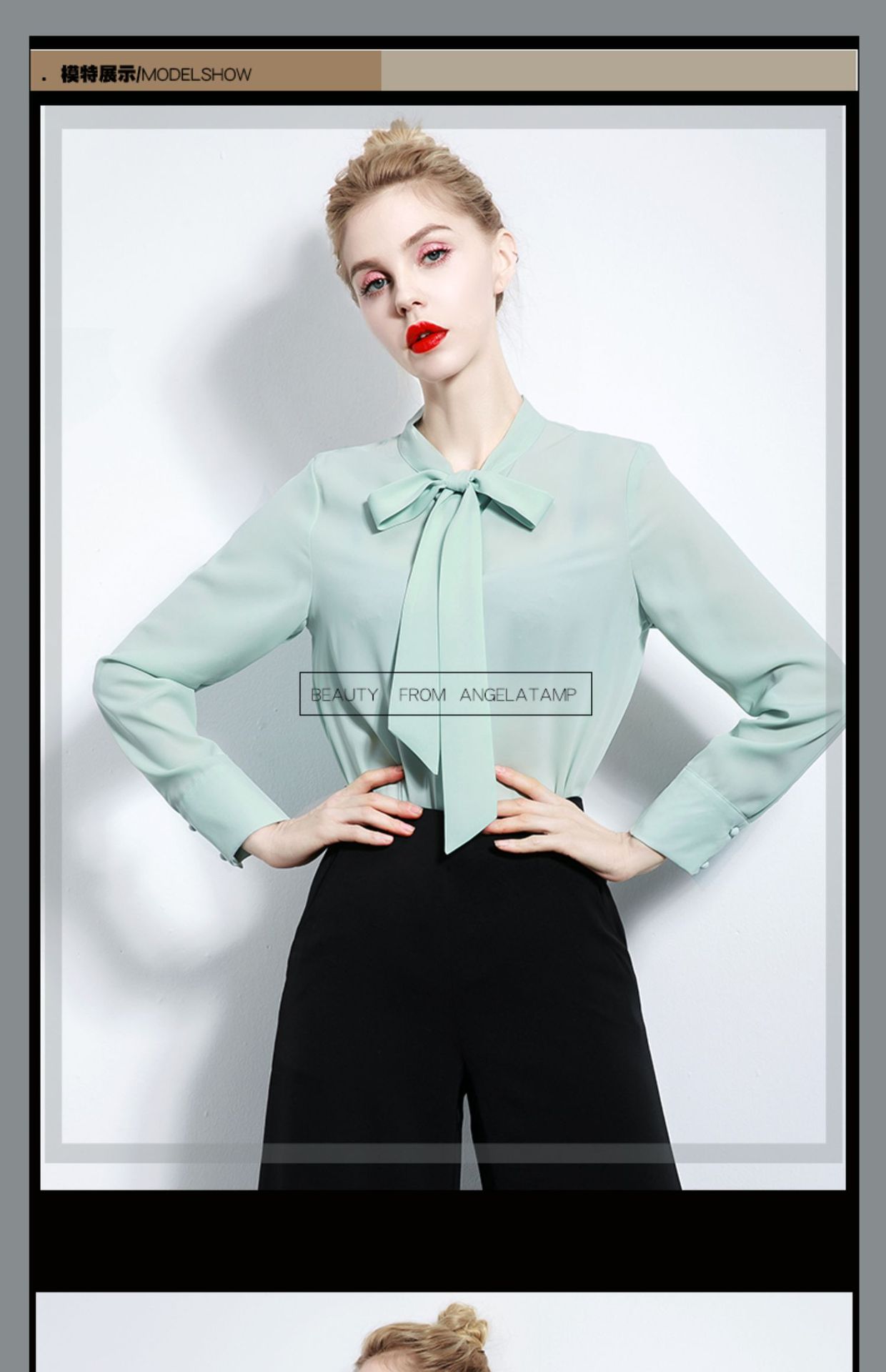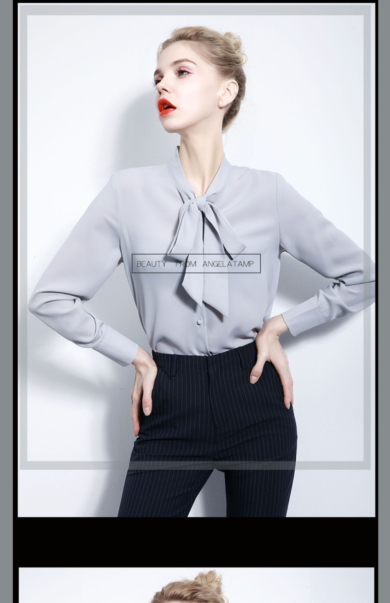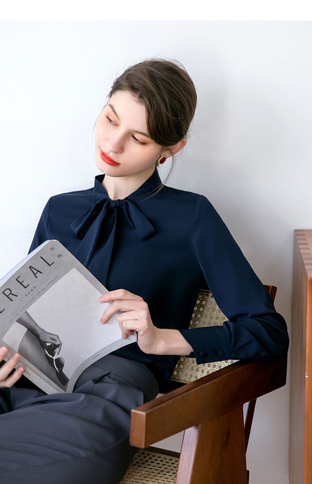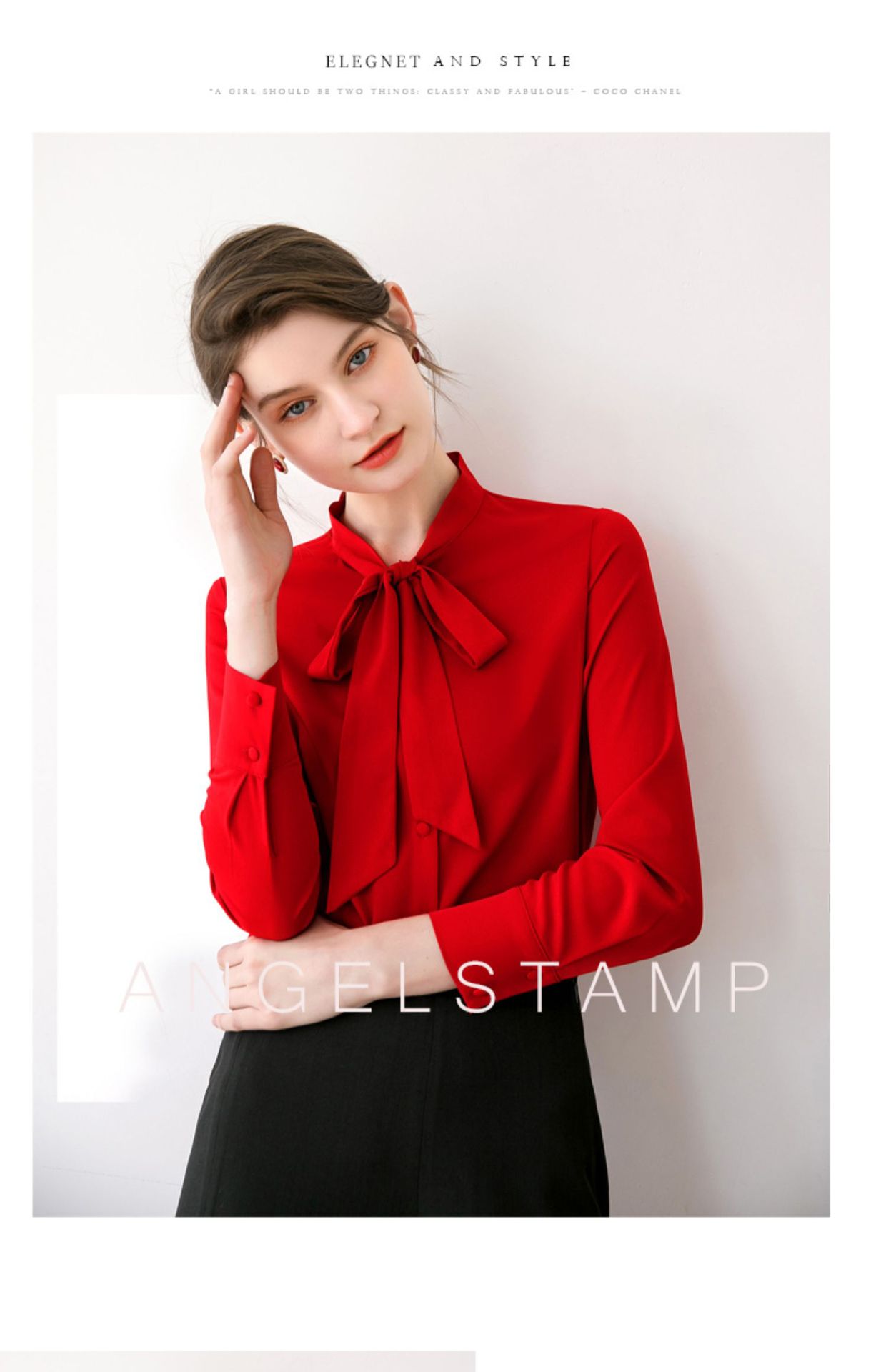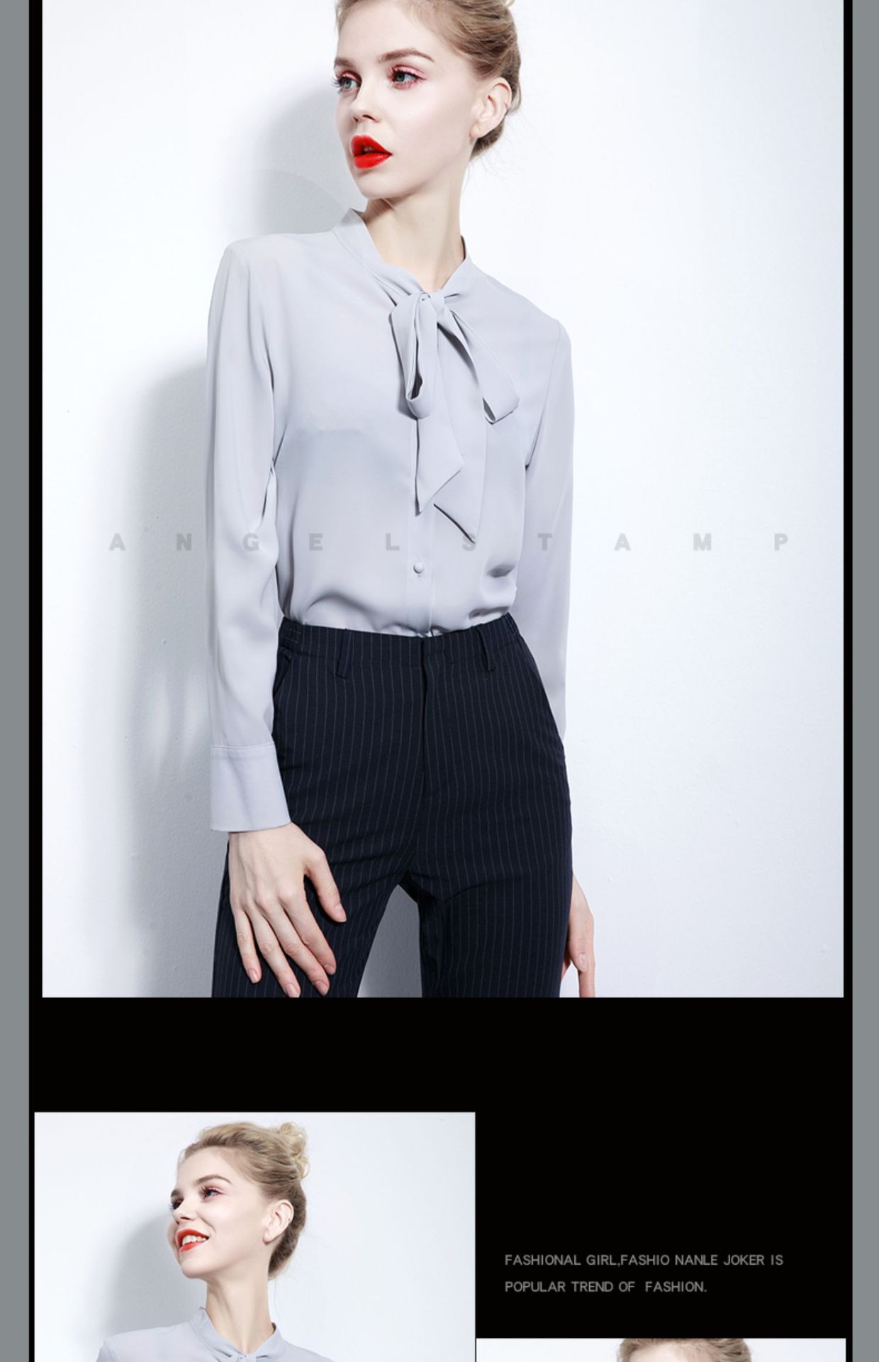 Bowknot 셔츠 여성 2025 가을 새로운 여성 향기 OL 긴 소매 쉬폰 셔츠 루즈 셔츠 탑스토어 가기