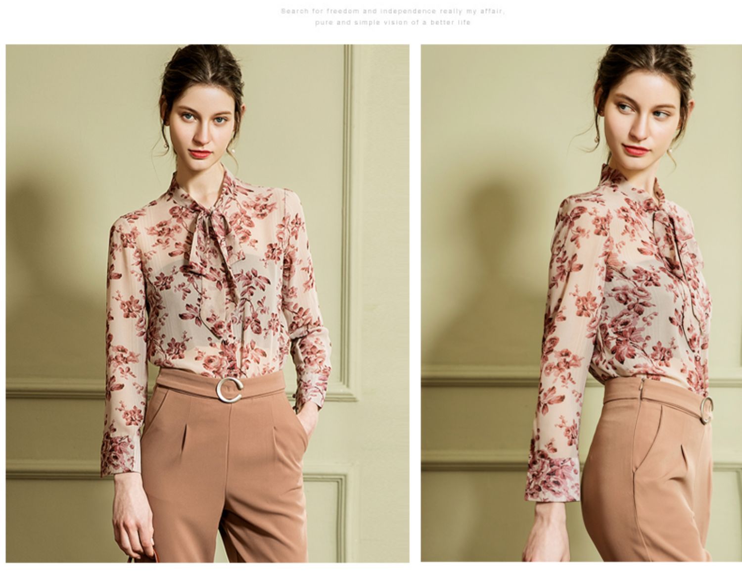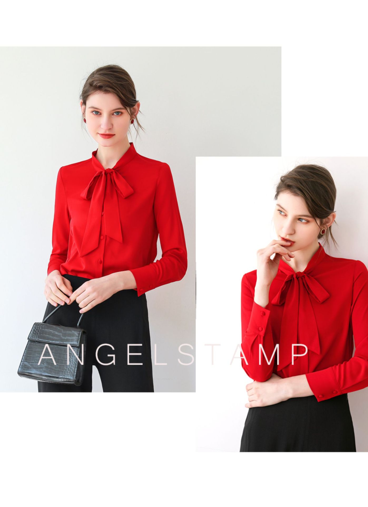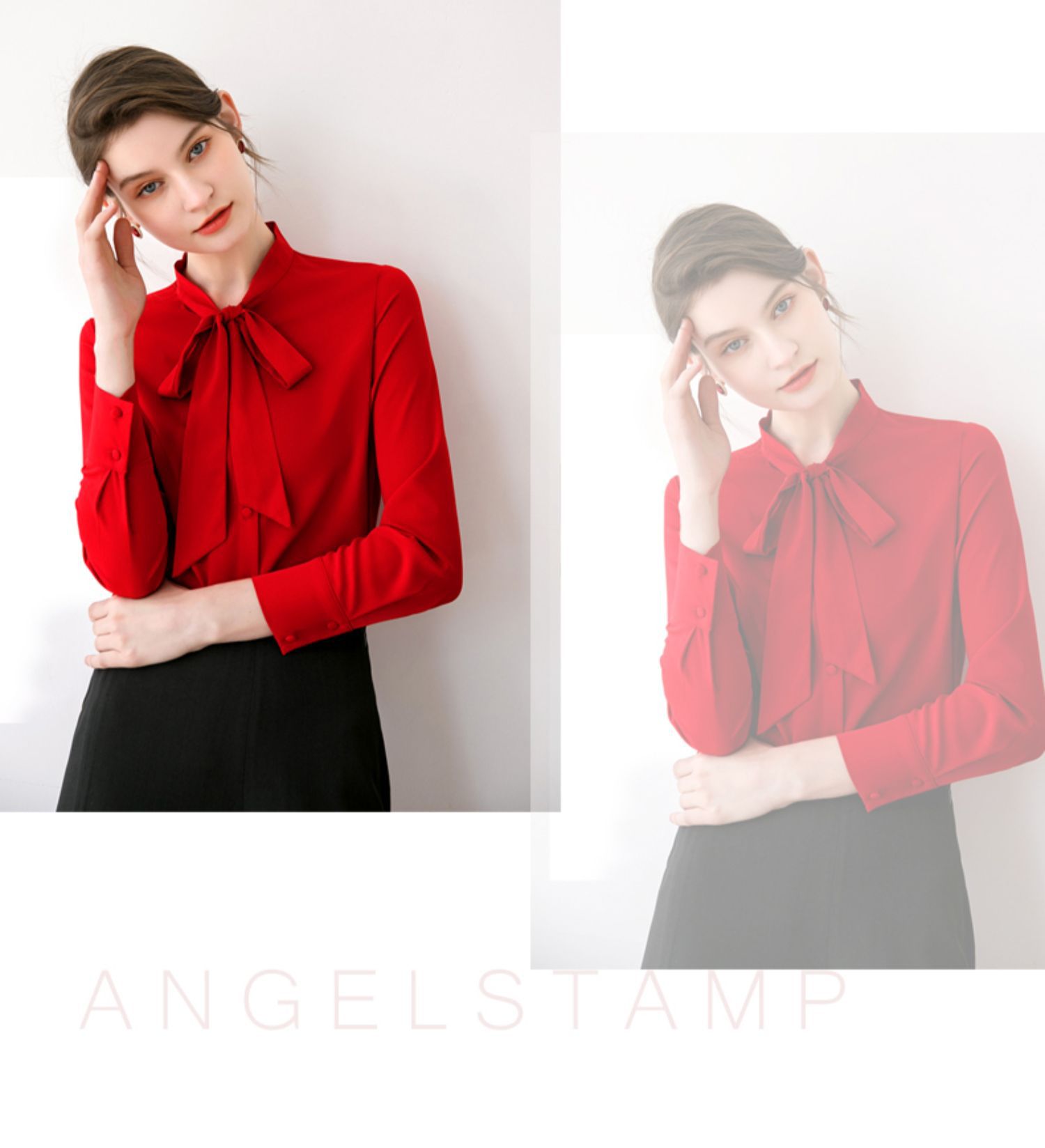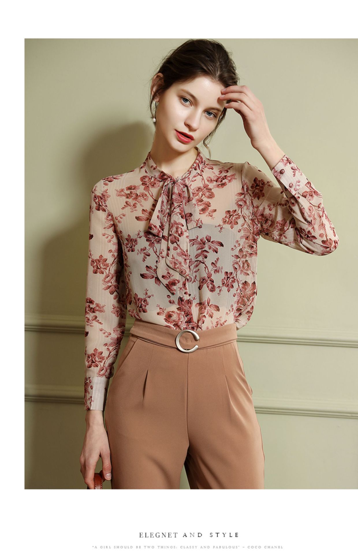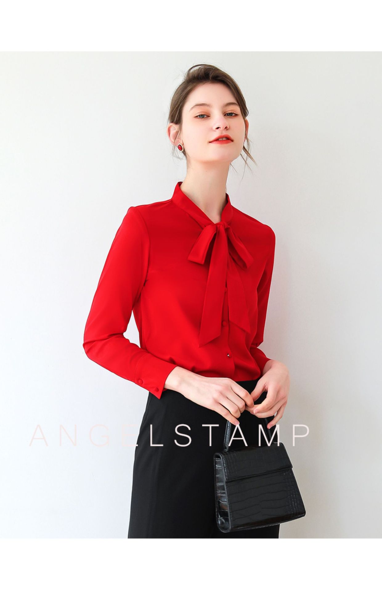 Bowknot 셔츠 여성 2025 가을 새로운 여성 향기 OL 긴 소매 쉬폰 셔츠 루즈 셔츠 탑스토어 가기