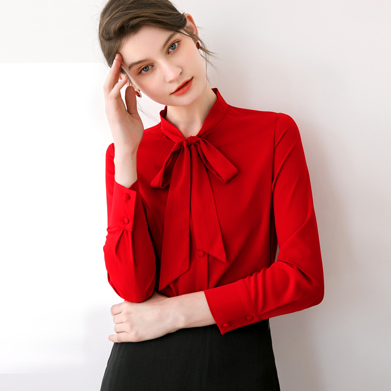 Bowknot 셔츠 여성 2025 가을 새로운 여성 향기 OL 긴 소매 쉬폰 셔츠 루즈 셔츠 탑