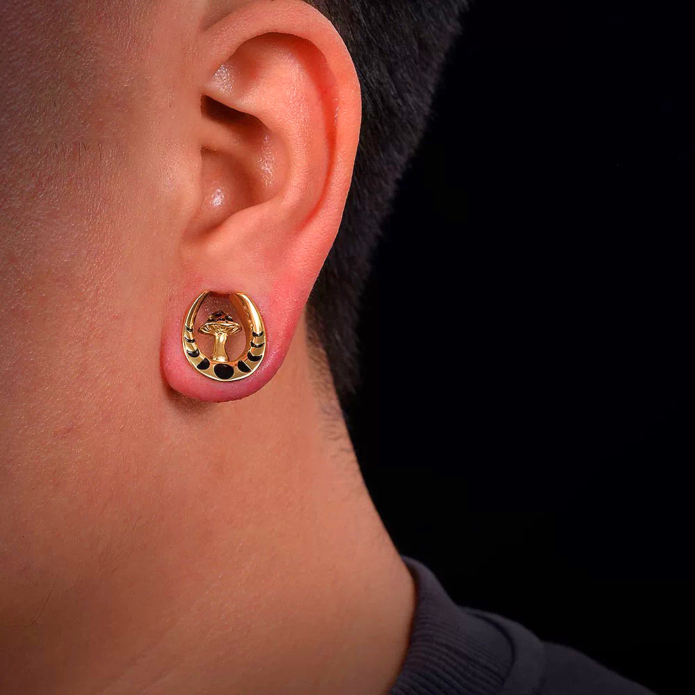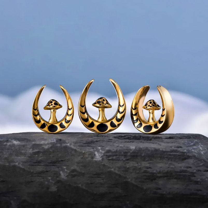 세련된 U자형 귓불 우산 버섯 안장 모양의 귀 확장기 터널 피어싱 귀걸이 쥬얼리 더블 혼 디자인스토어 가기