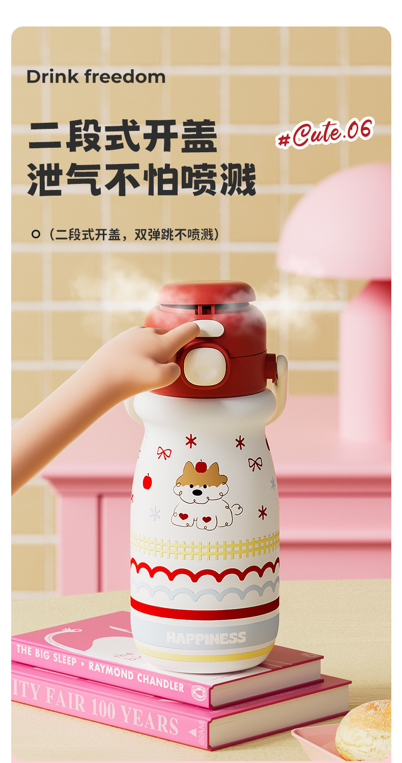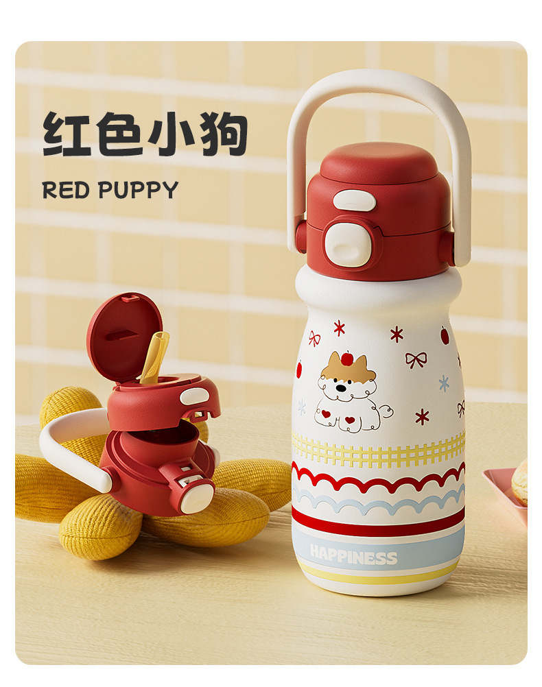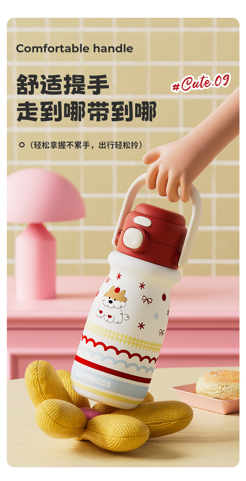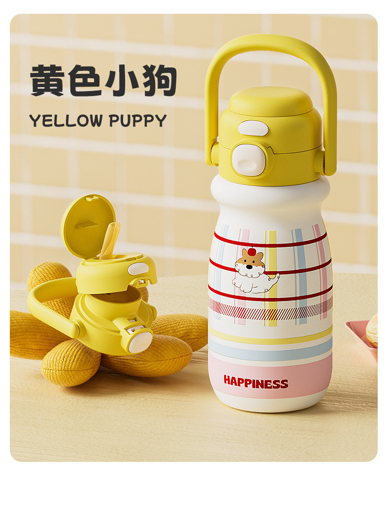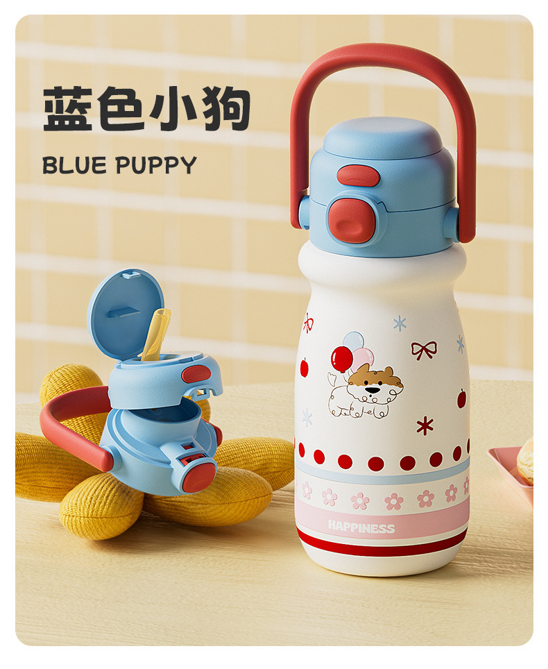 새로운 스타일의 손잡이가 있는 이중 빨대 컵, 보온병 컵, 멋진 만화 학생 물컵, 보온 및 냉각, 세련된 휴대용 주전자스토어 가기