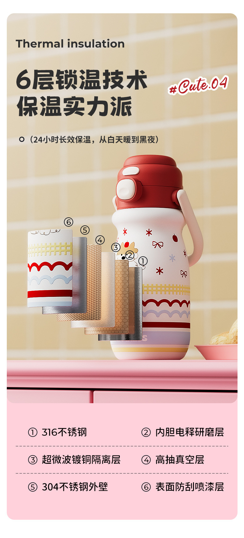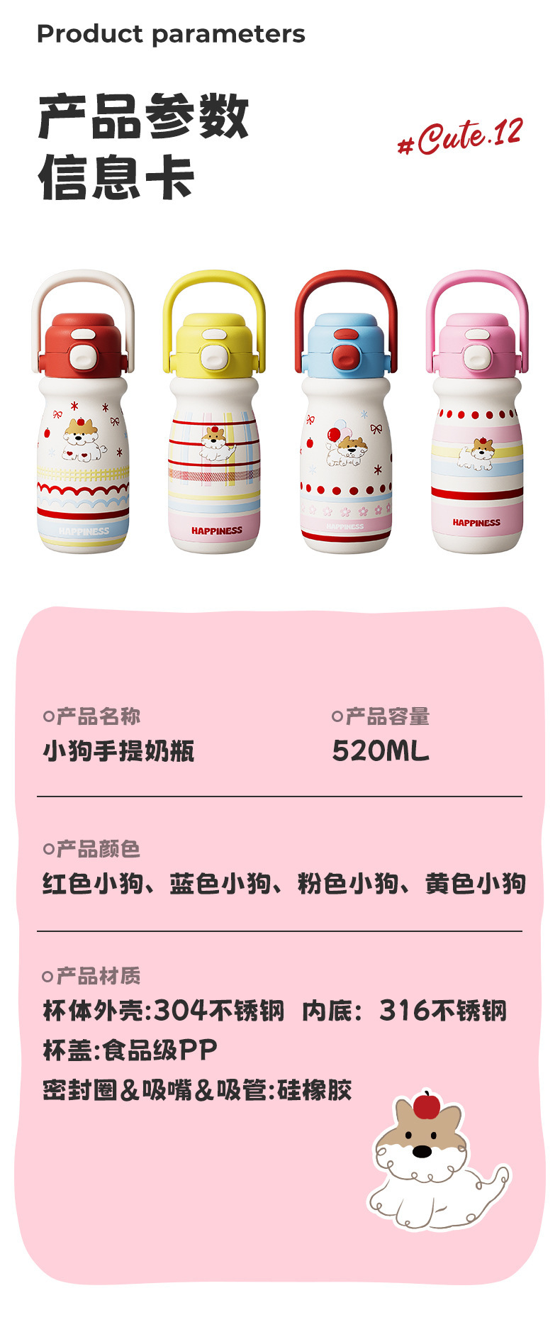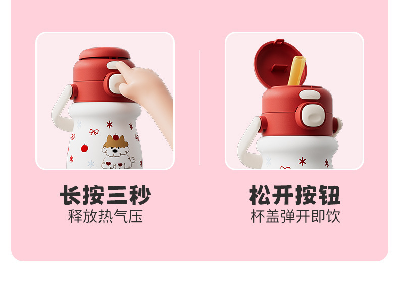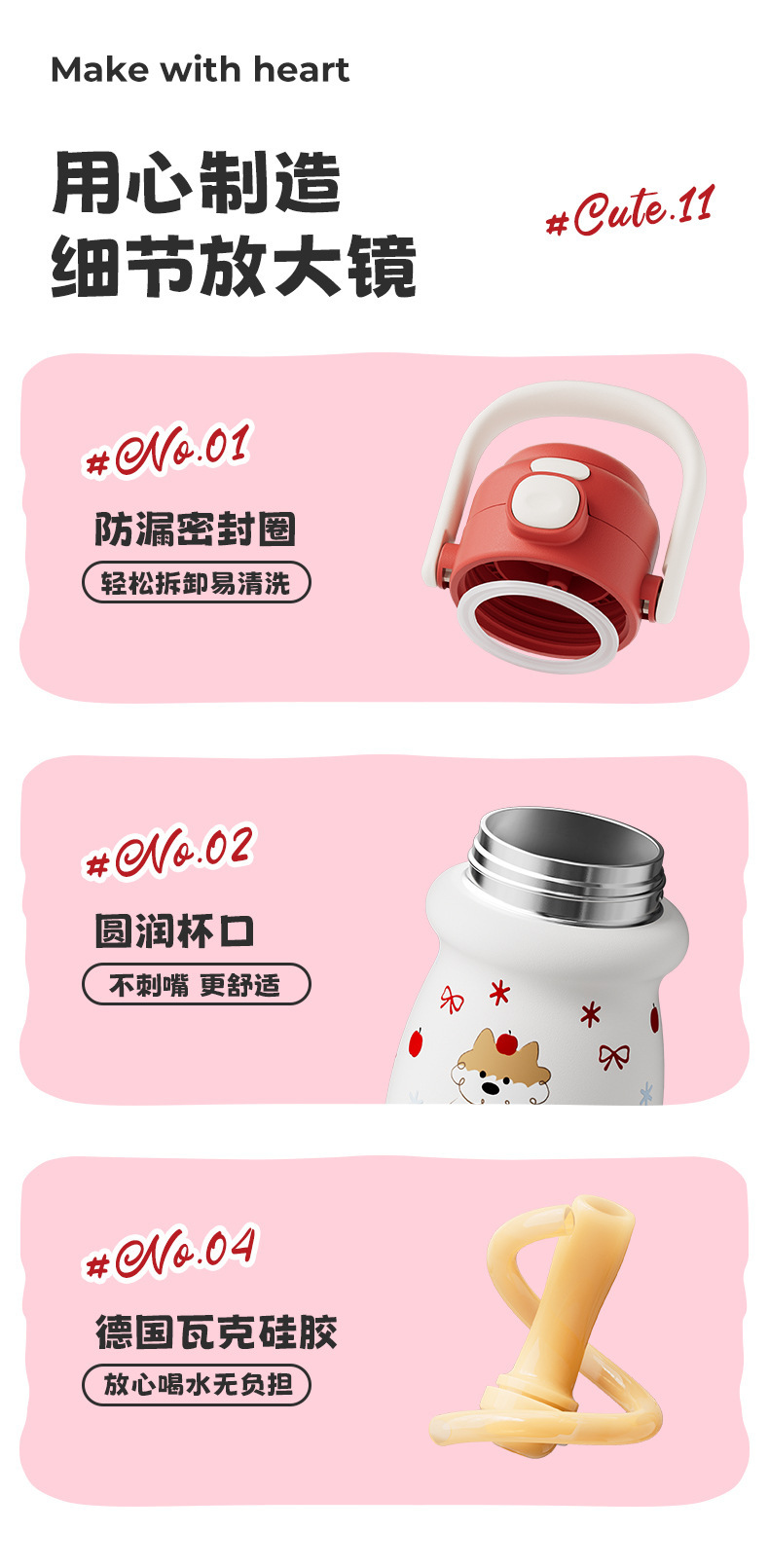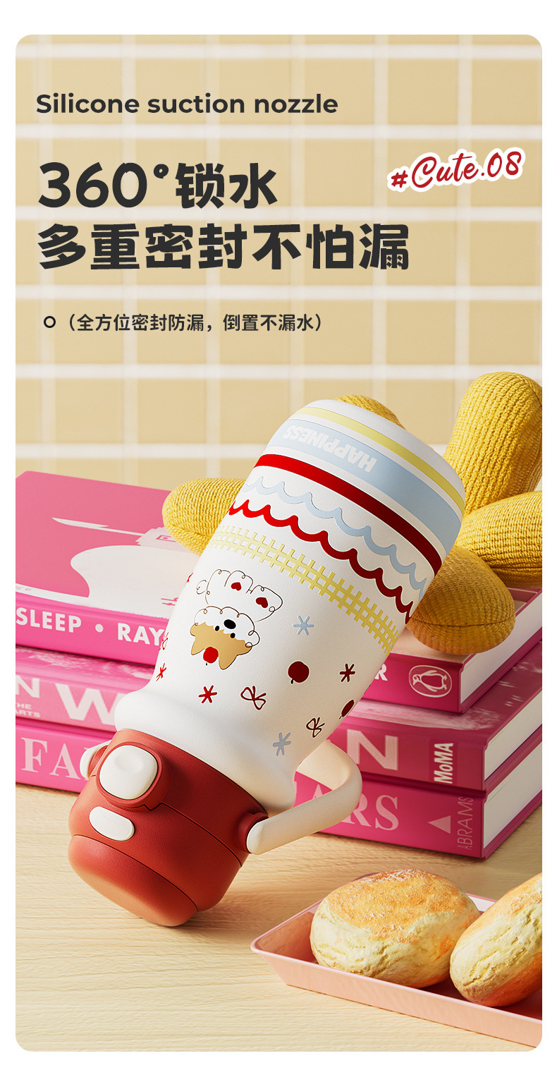 새로운 스타일의 손잡이가 있는 이중 빨대 컵, 보온병 컵, 멋진 만화 학생 물컵, 보온 및 냉각, 세련된 휴대용 주전자스토어 가기