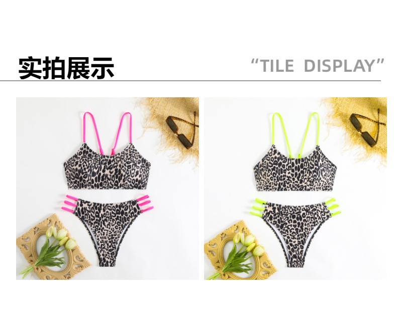 2025 유럽 및 미국 레오파드 프린트 스플릿 수영복 여성용 백리스 비키니 온천 수영복 아마존 스포츠 스타일 스플릿 타입