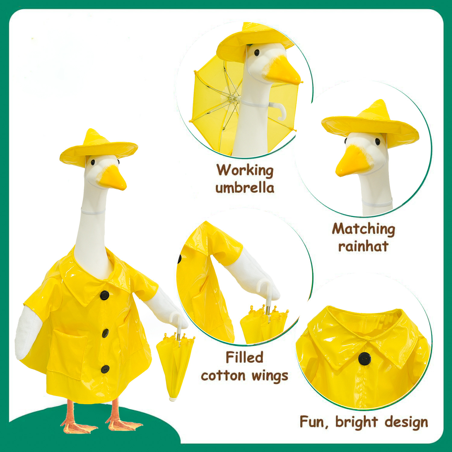 Fox Valley Traders 레인코트 거위 의상 거위 복장 23" 현관 거위 동상에 적합