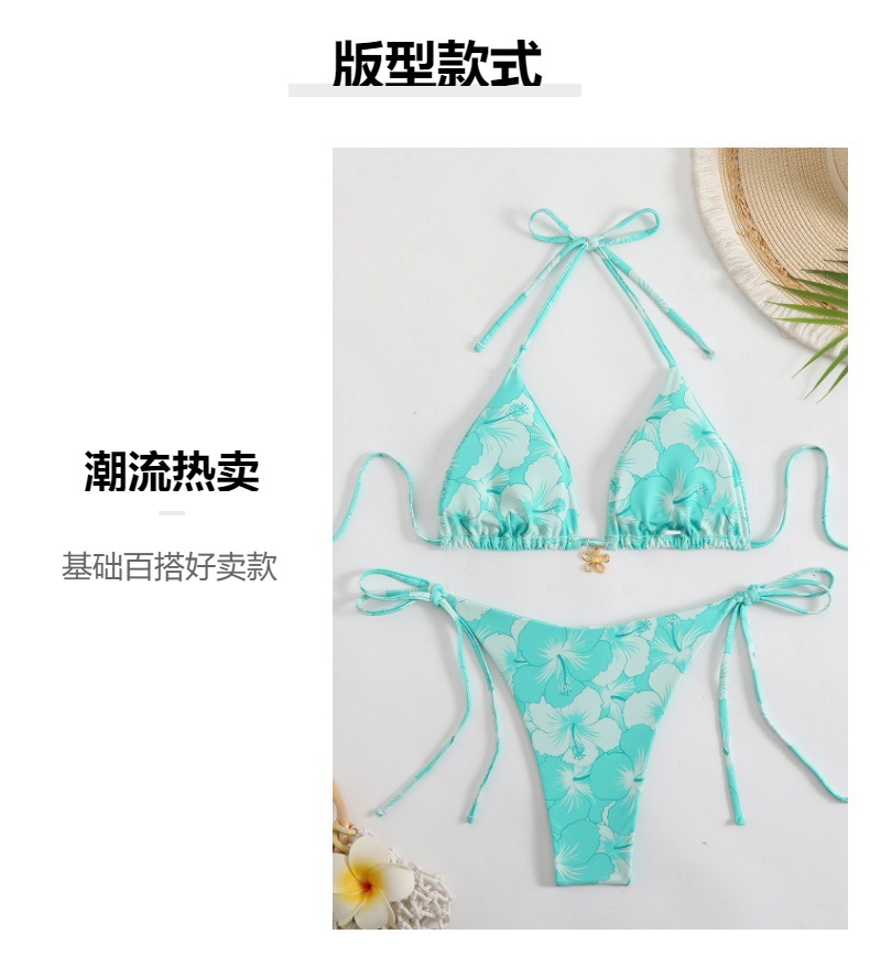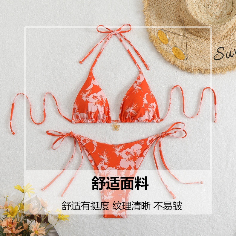 유럽과 미국의 새로운 2025 프린트 스플릿 수영복 여성 아마존 국경 간 섹시한 대외 무역 레이스 업 비키니 수영복