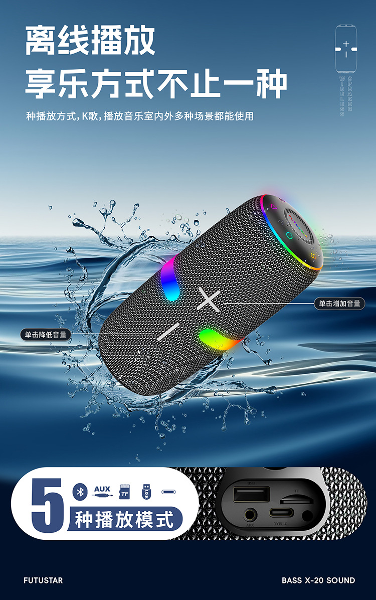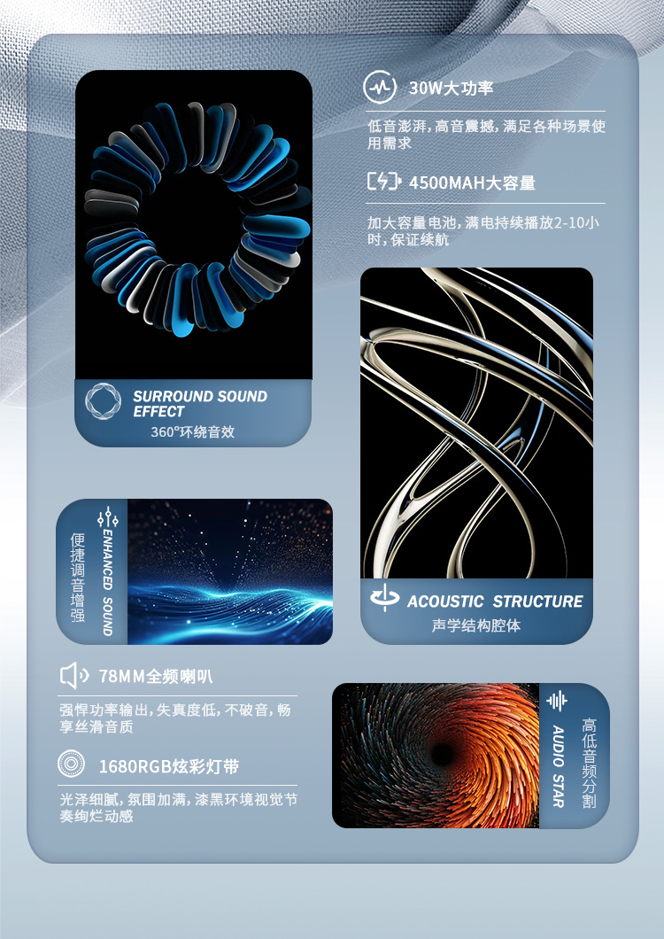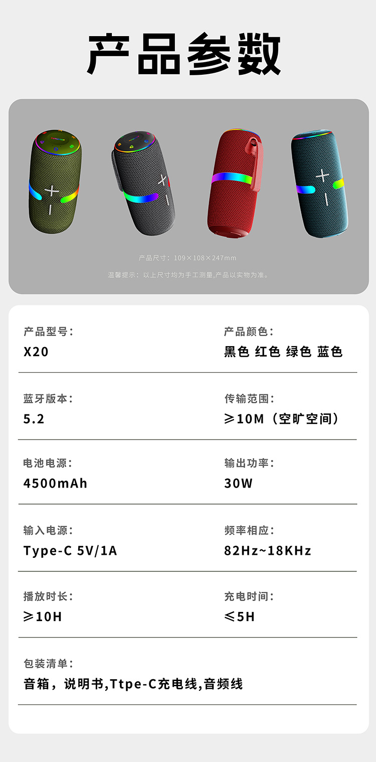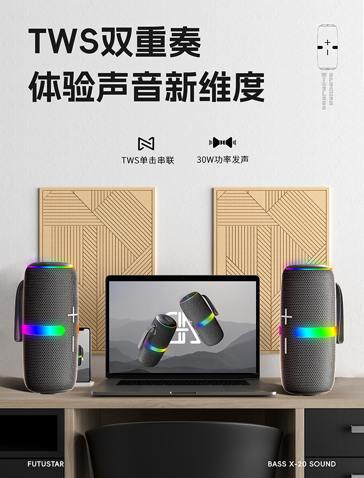 국경 간 새로운 30W 블루투스 스피커 RGB 빛 블루투스 오디오 도매와 야외 방수 휴대용 중저음 스피커