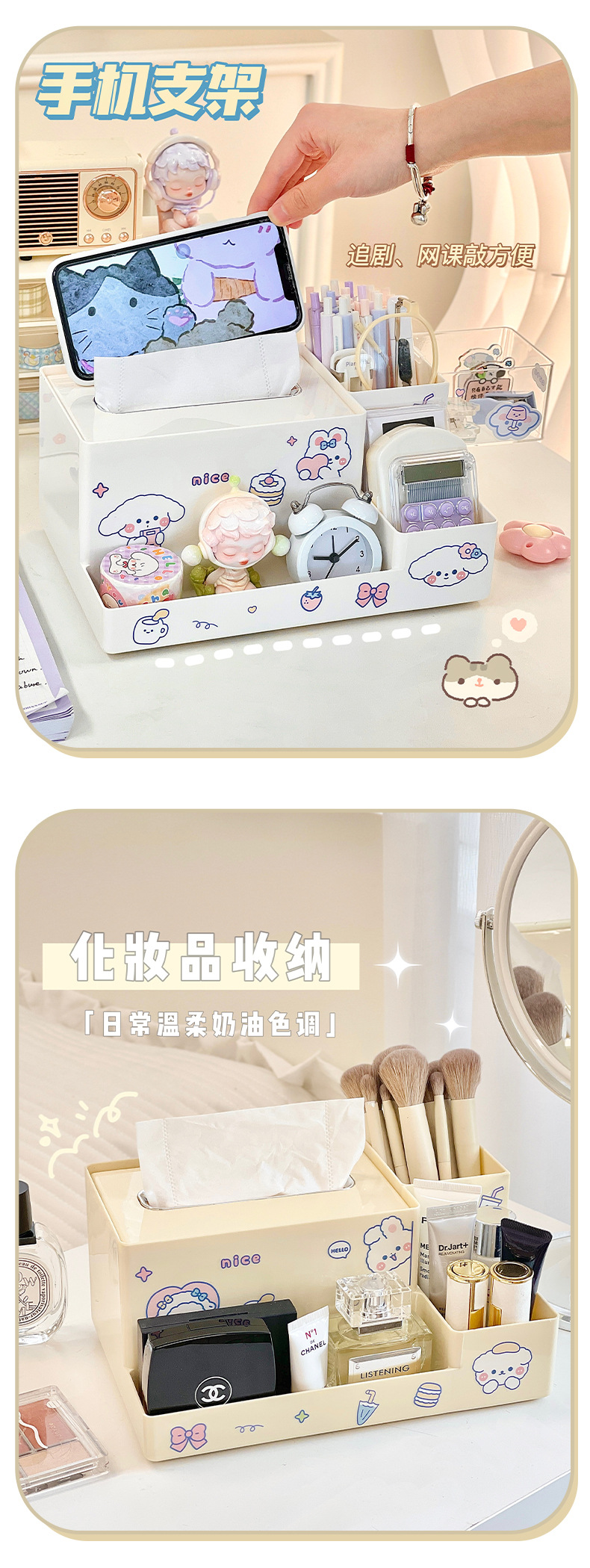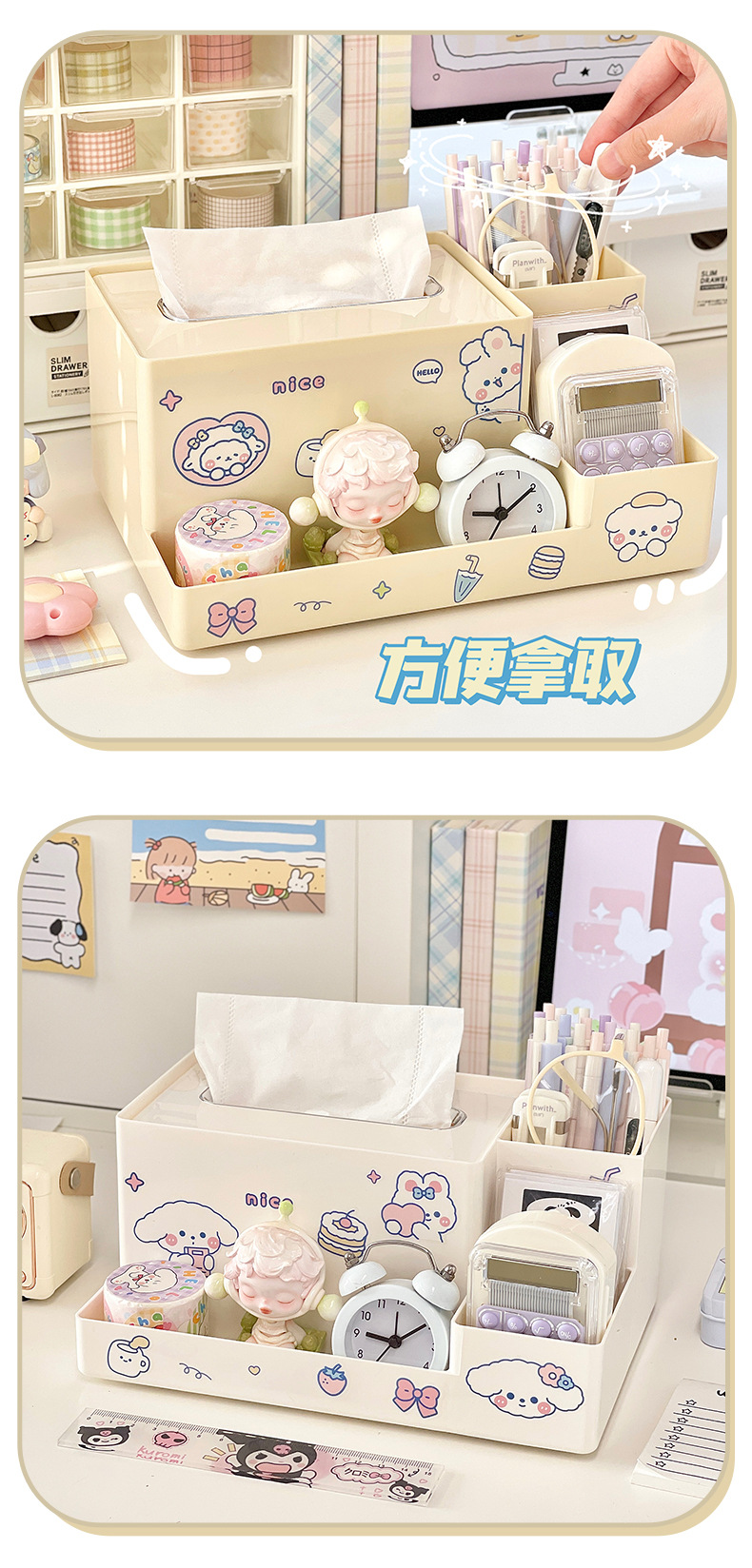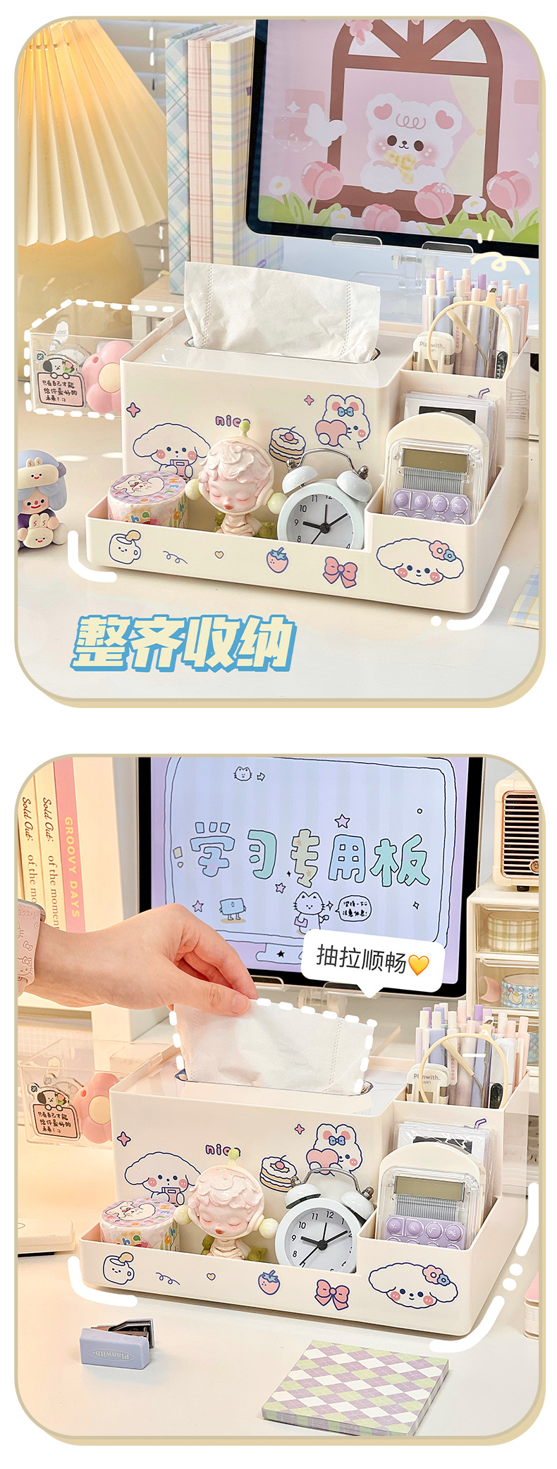 다기능 데스크탑 보관함 티슈 박스 학생 책상 문구 정리 보관함 사무실 티슈 박스 펜 홀더